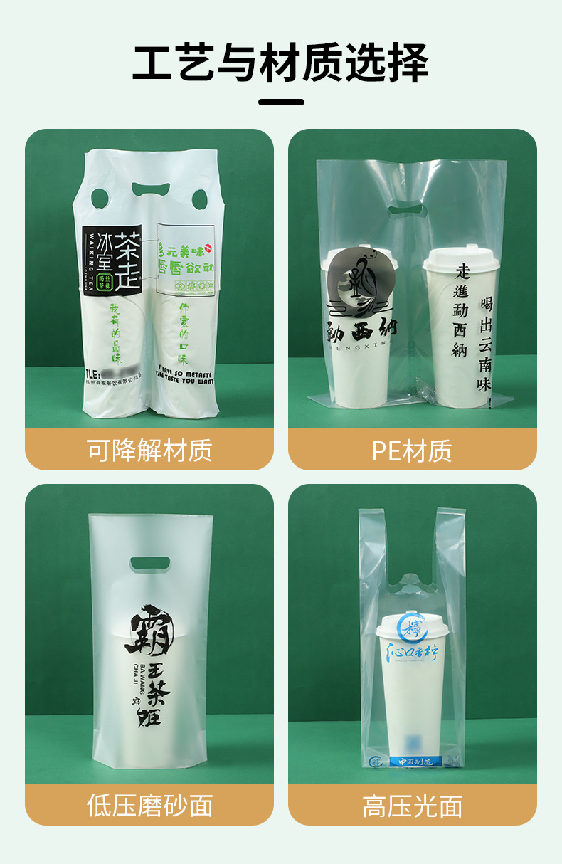 고압 투명 밀크 티백 맞춤형 싱글 및 더블 컵 플라스틱 핸드백 커피 음료 테이크아웃 포장 백 1500개부터스토어 가기
