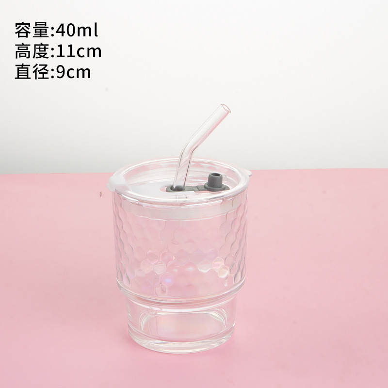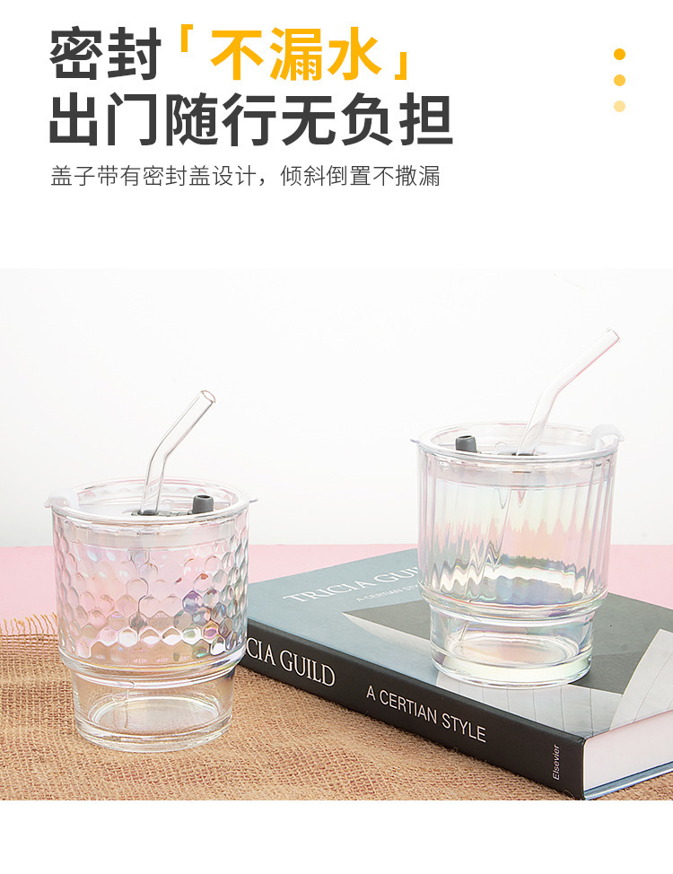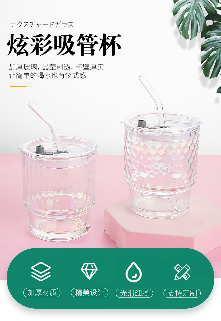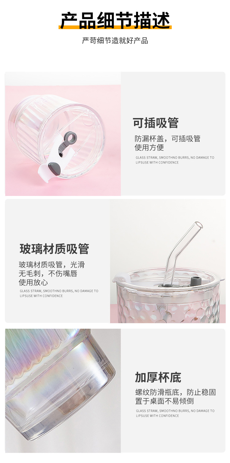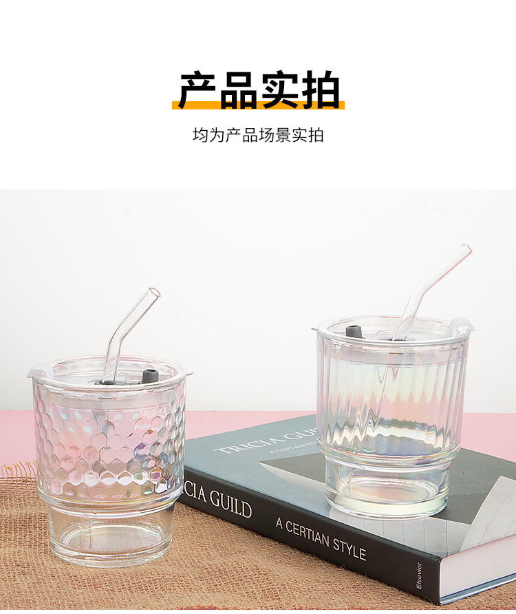 고급스러운 다채로운 대나무 모양 유리컵 뚜껑과 빨대가 있는 휴대용 레이저 이중 음료컵 오로라컵 도매스토어 가기