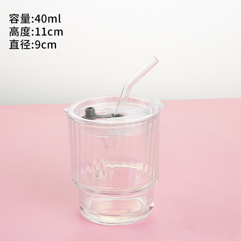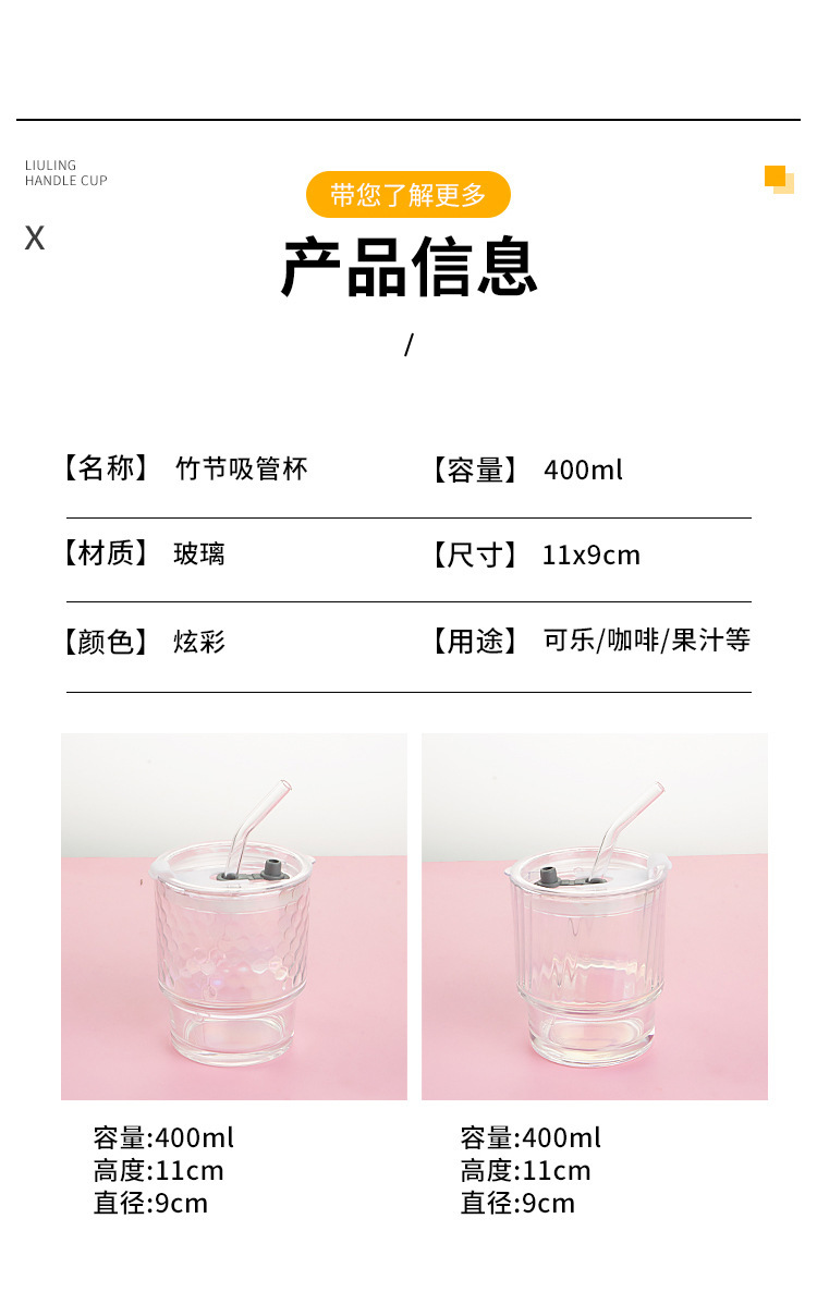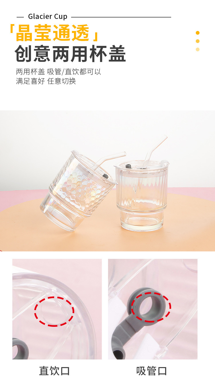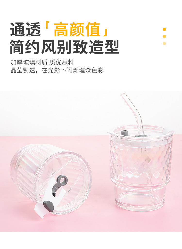 고급스러운 다채로운 대나무 모양 유리컵 뚜껑과 빨대가 있는 휴대용 레이저 이중 음료컵 오로라컵 도매스토어 가기