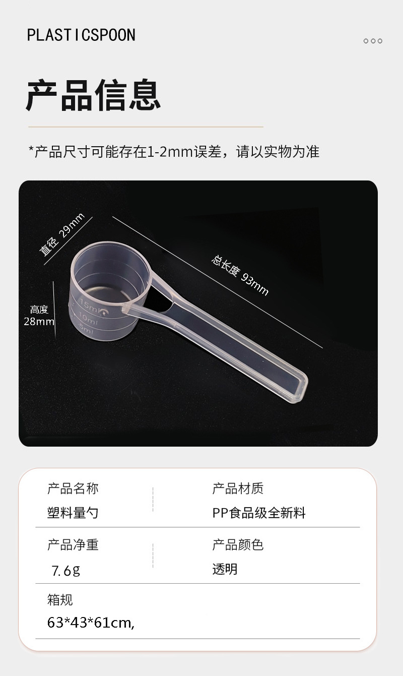 식품 등급 pp7.5g 15ml 플라스틱 스푼 분유 스푼 투명 스케일 라인 연근 분말 측정 스푼 8g16ml