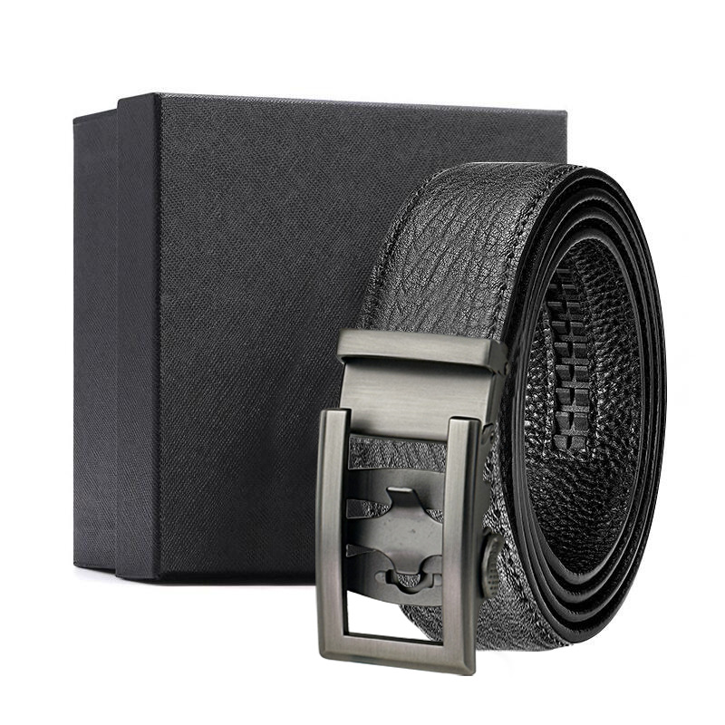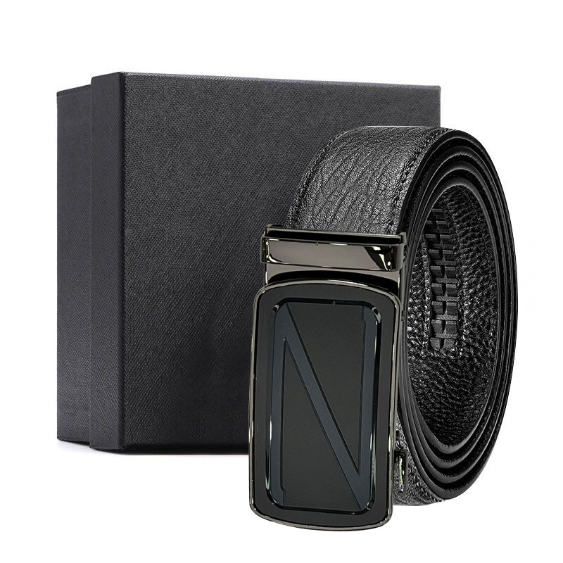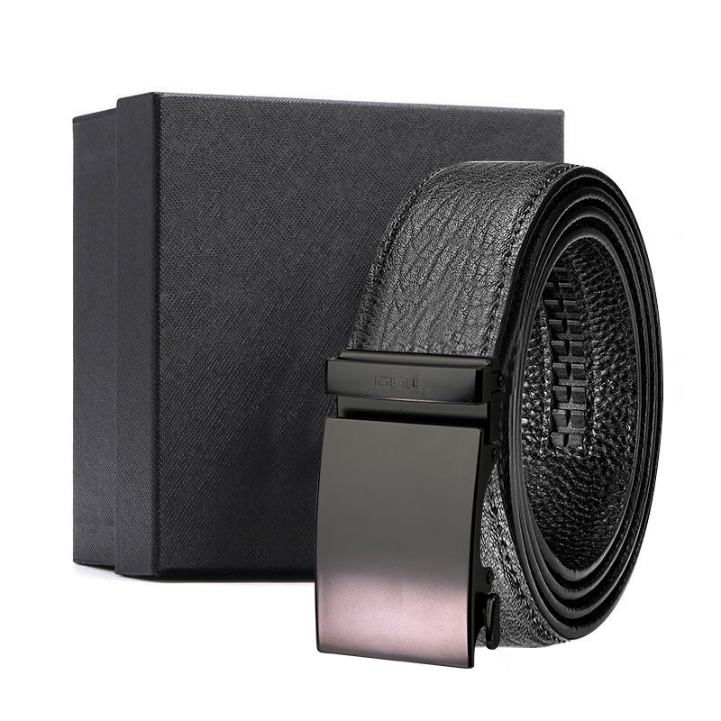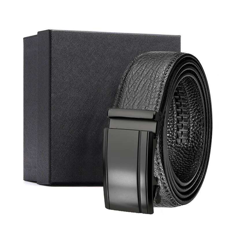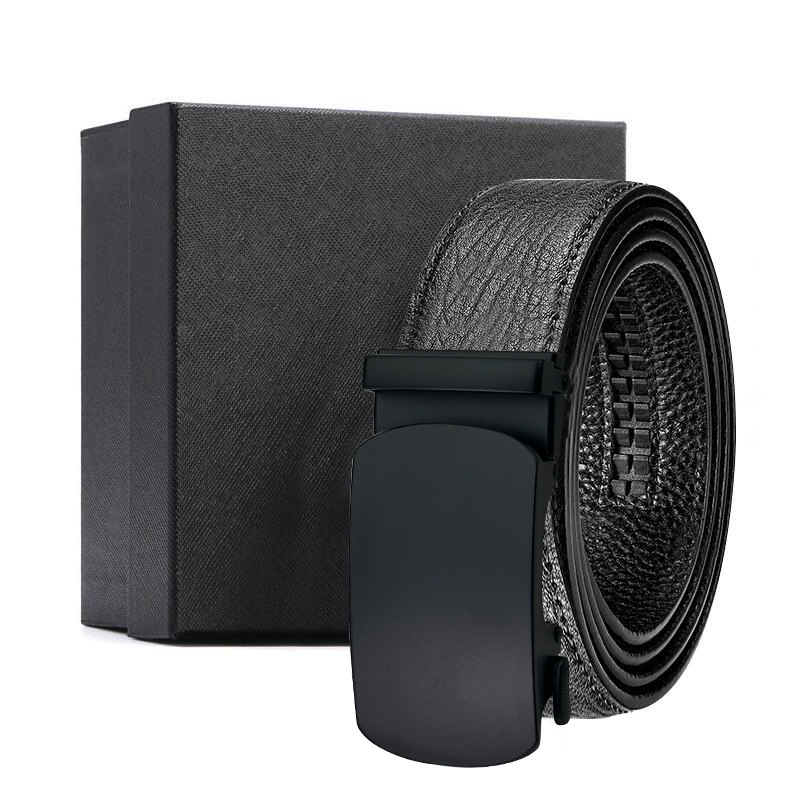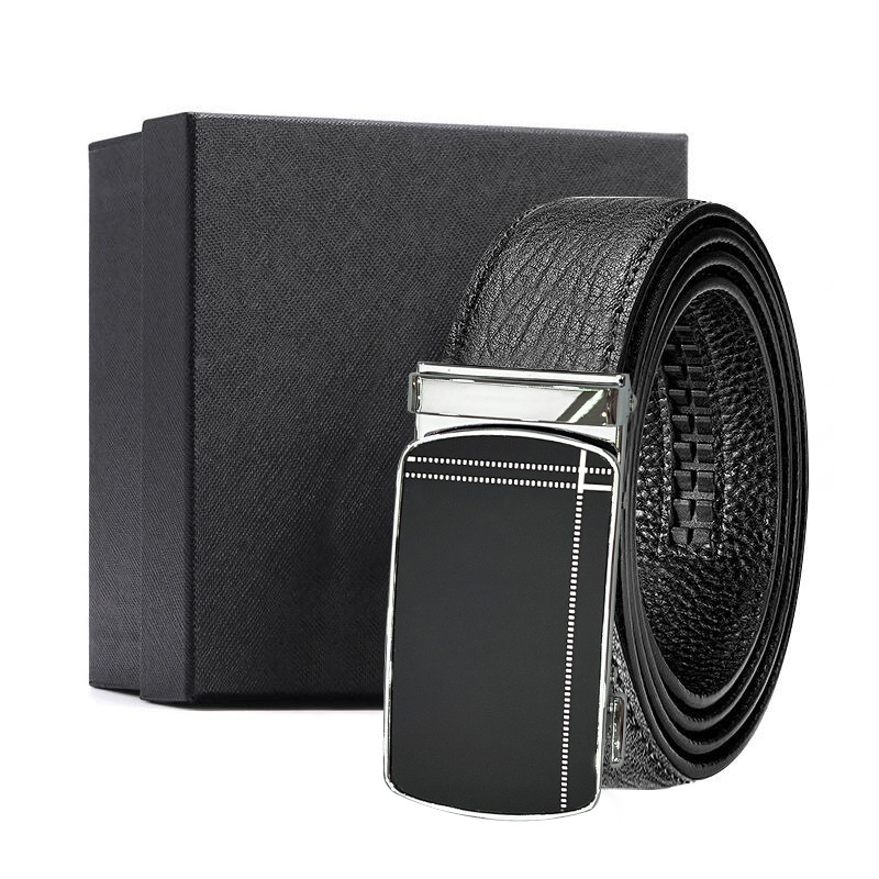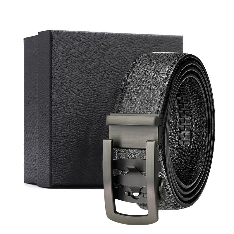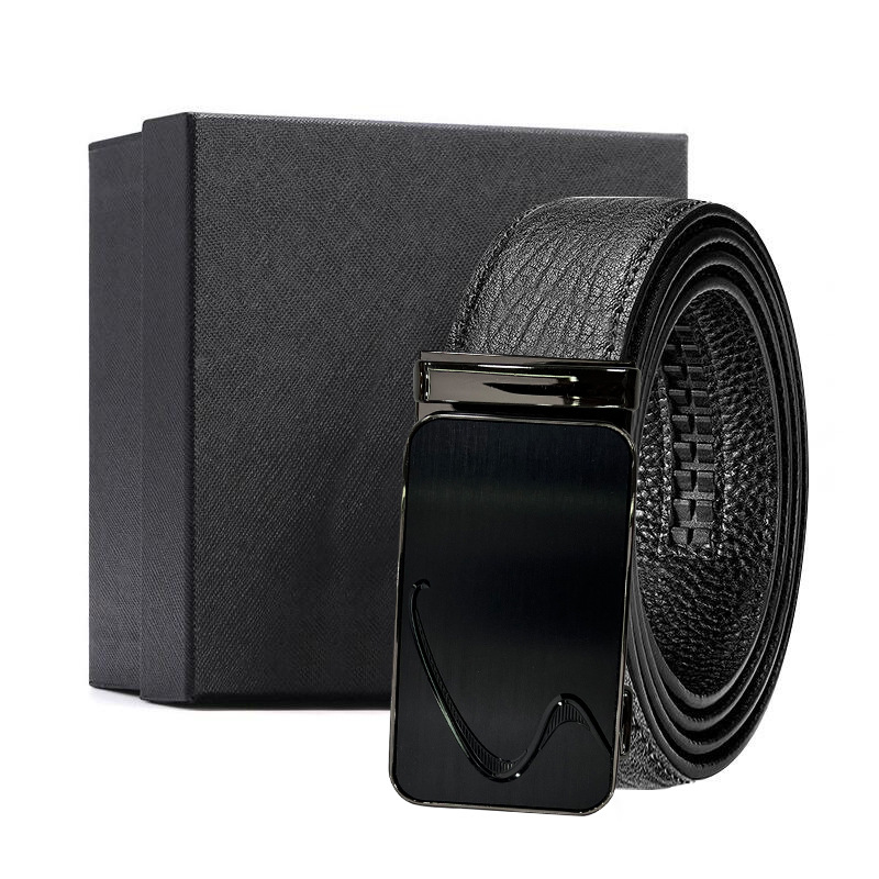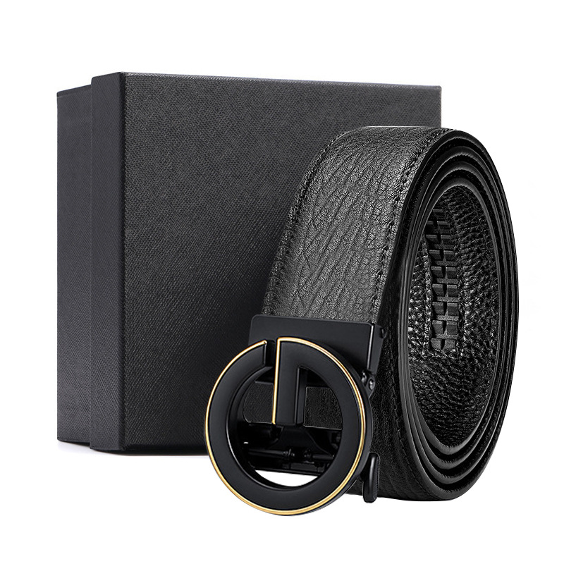 가죽 벨트 물결무늬 천연 가죽 벨트 비즈니스 선물 맞춤형 로고 인쇄 바지 벨트 1등급 소가죽 자동 버클