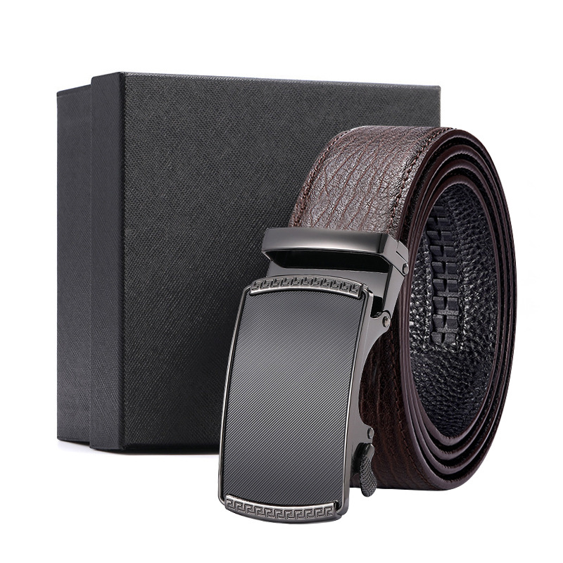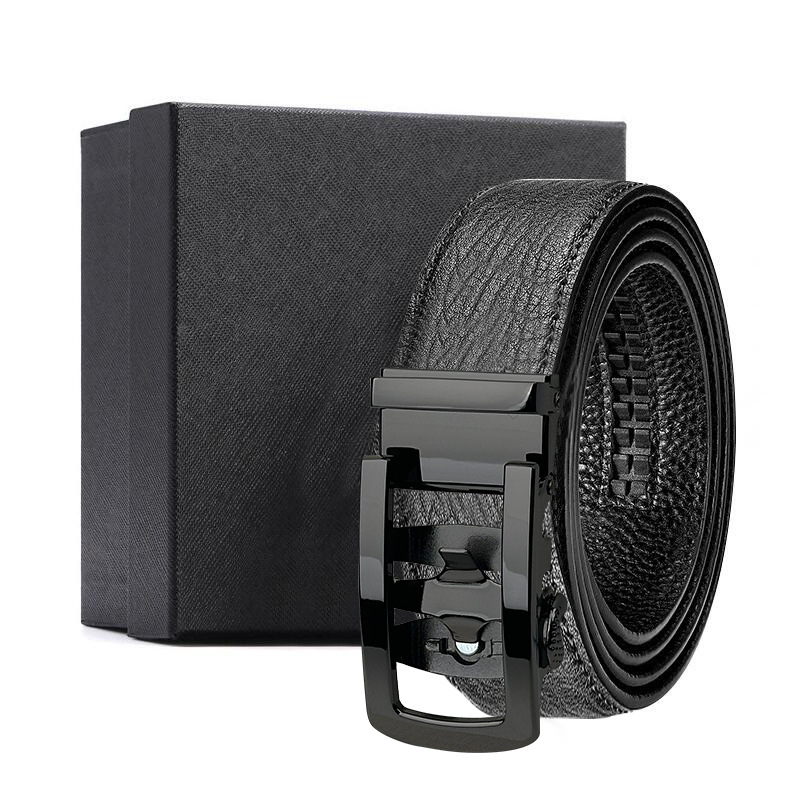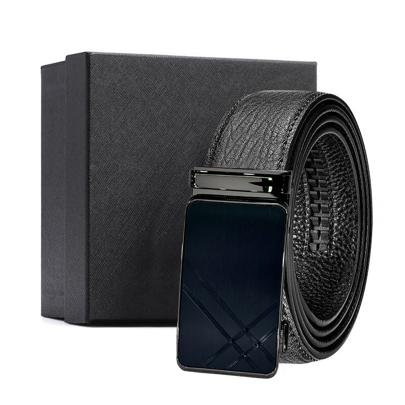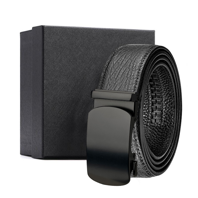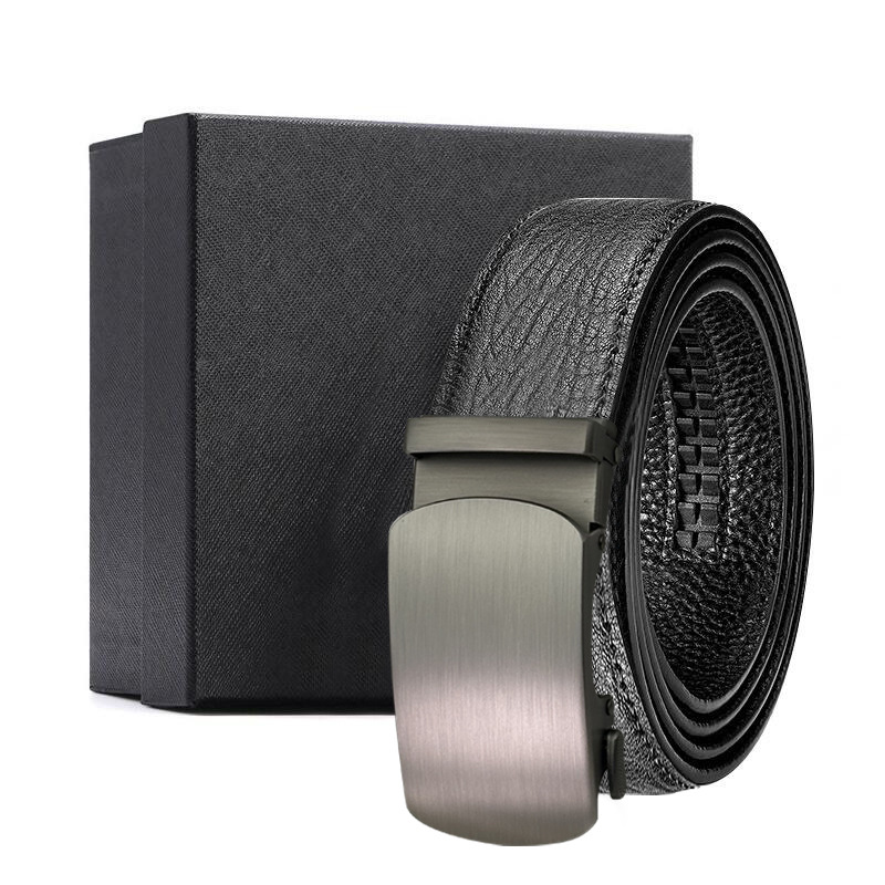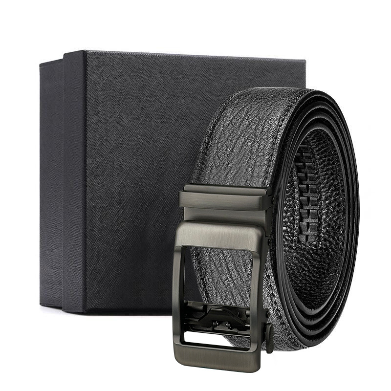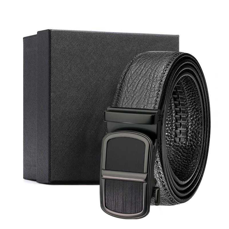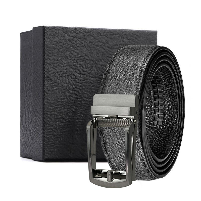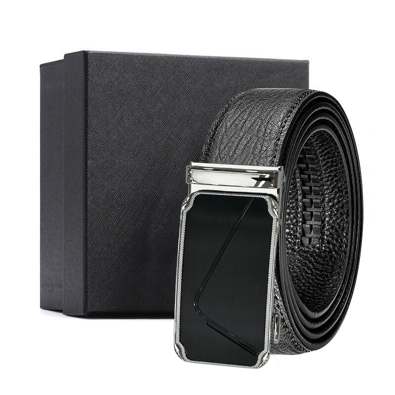 가죽 벨트 물결무늬 천연 가죽 벨트 비즈니스 선물 맞춤형 로고 인쇄 바지 벨트 1등급 소가죽 자동 버클