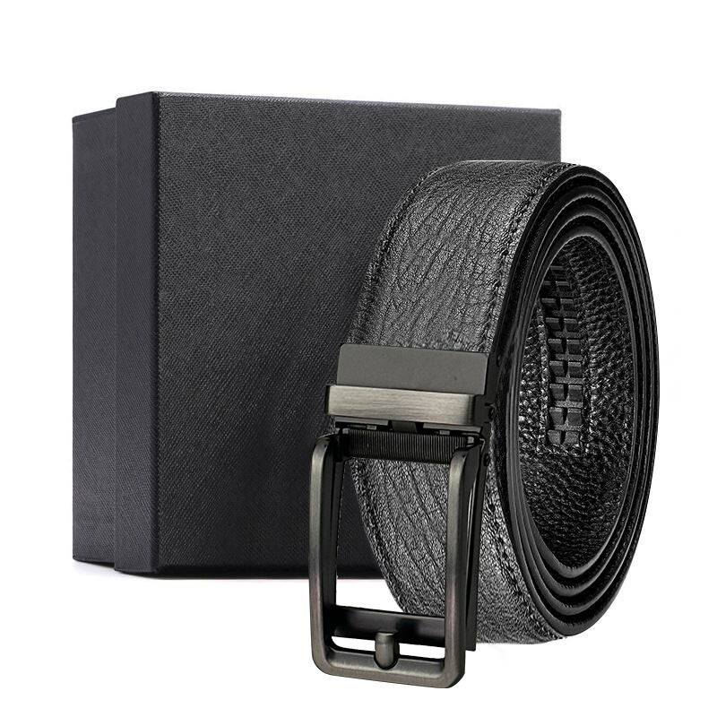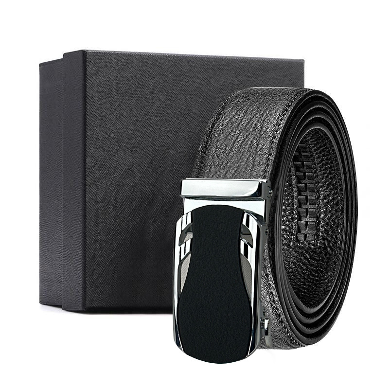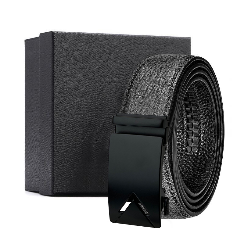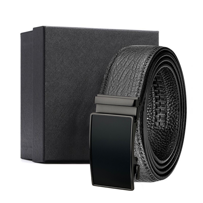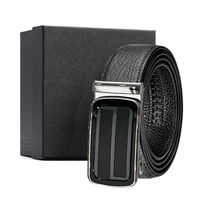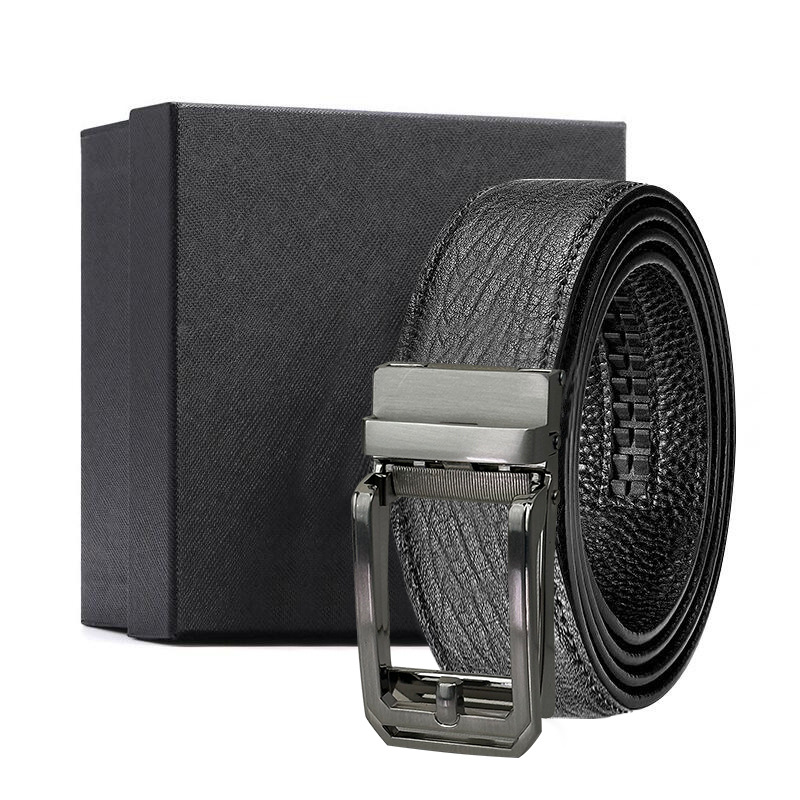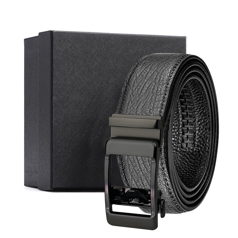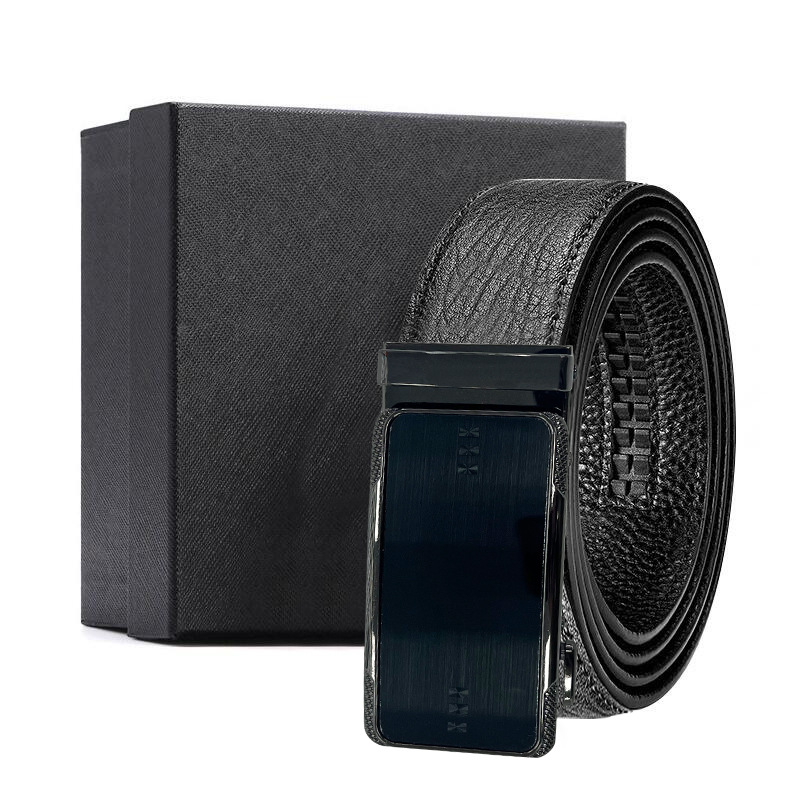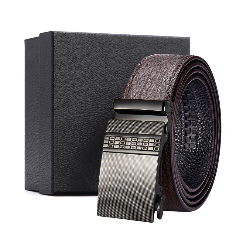 가죽 벨트 물결무늬 천연 가죽 벨트 비즈니스 선물 맞춤형 로고 인쇄 바지 벨트 1등급 소가죽 자동 버클