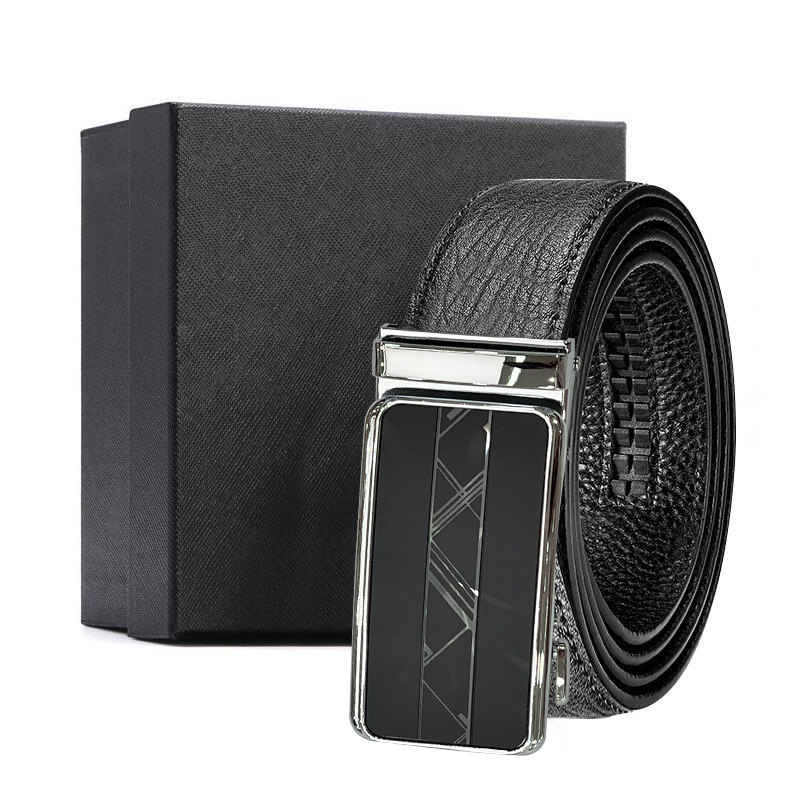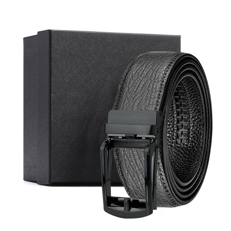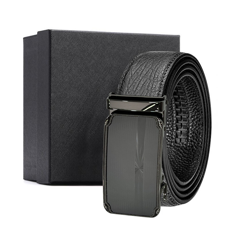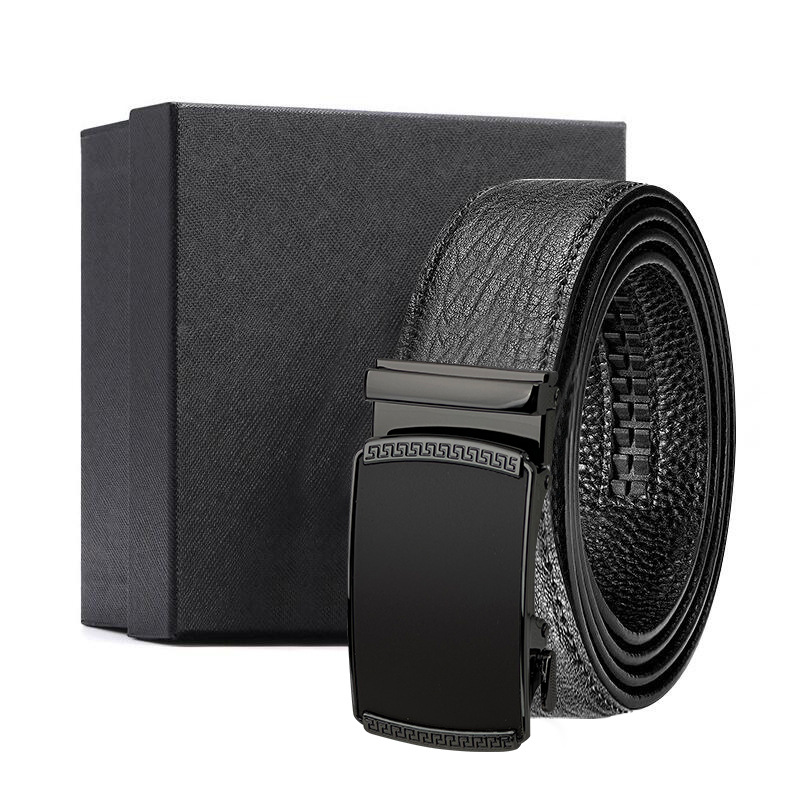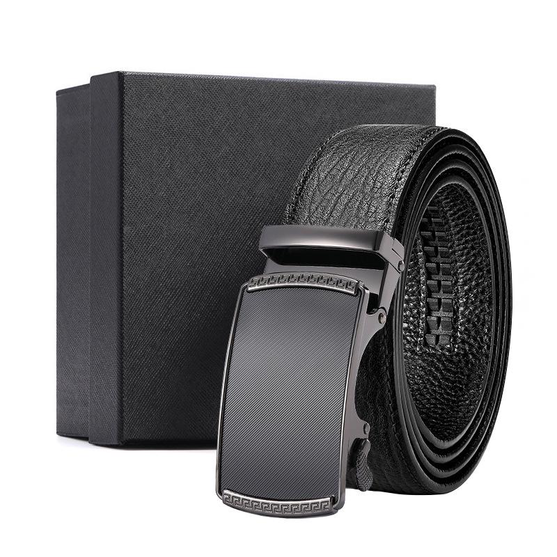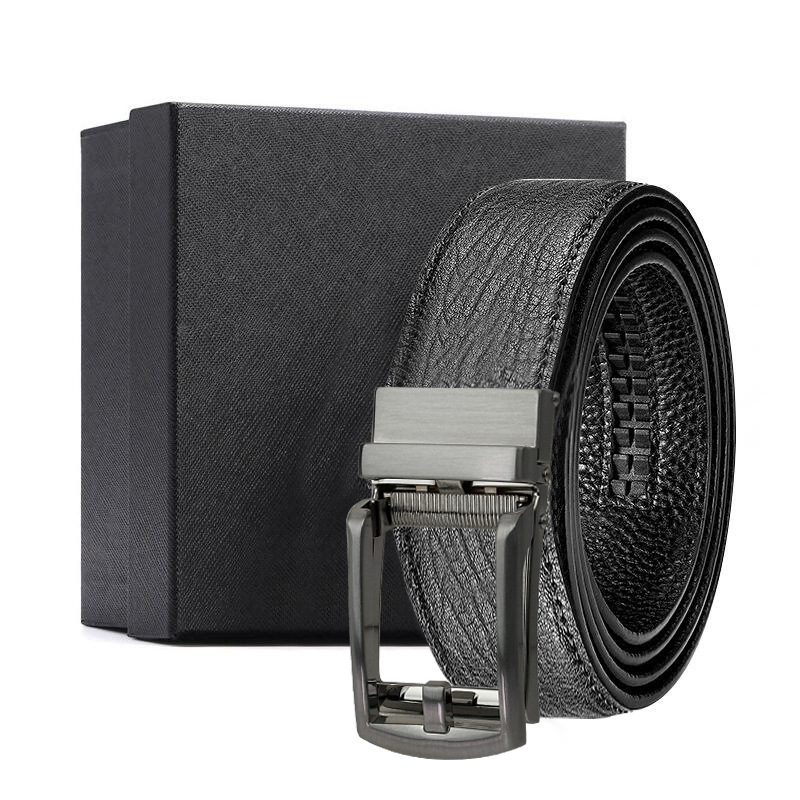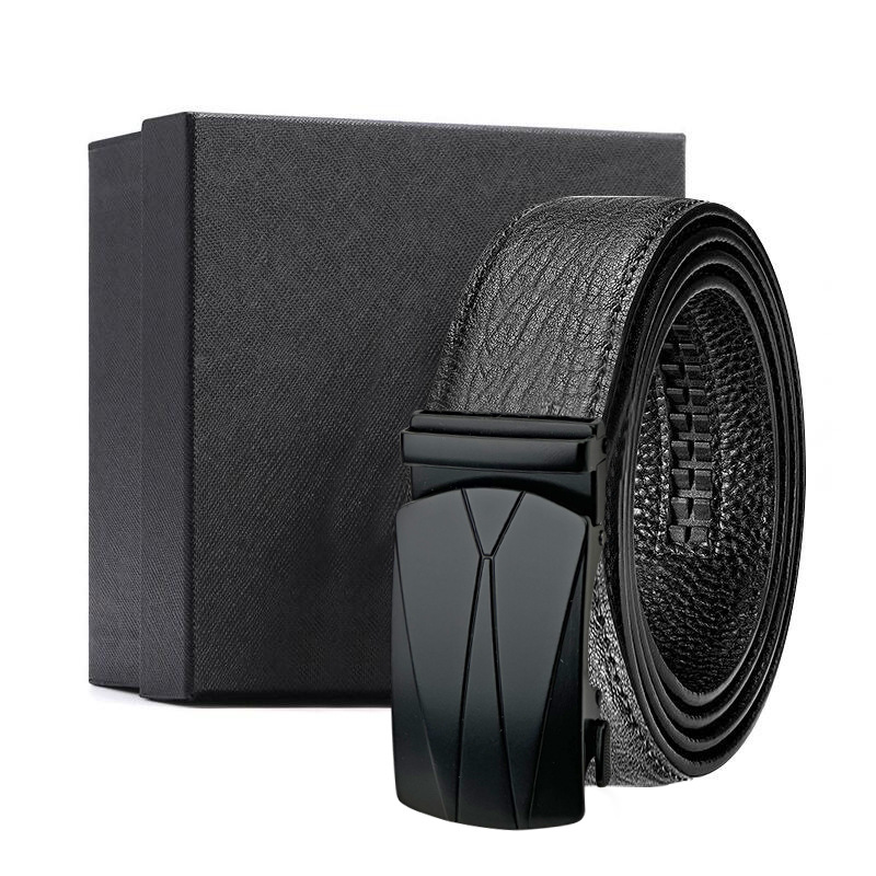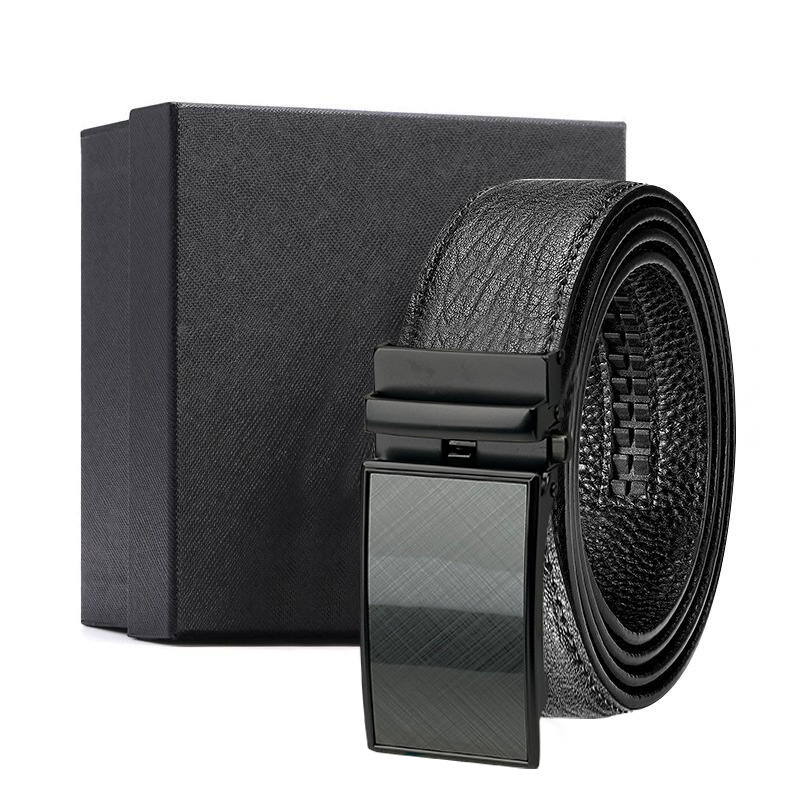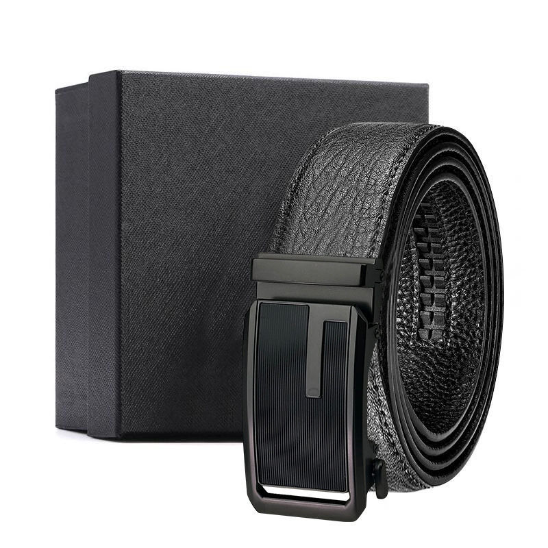 가죽 벨트 물결무늬 천연 가죽 벨트 비즈니스 선물 맞춤형 로고 인쇄 바지 벨트 1등급 소가죽 자동 버클