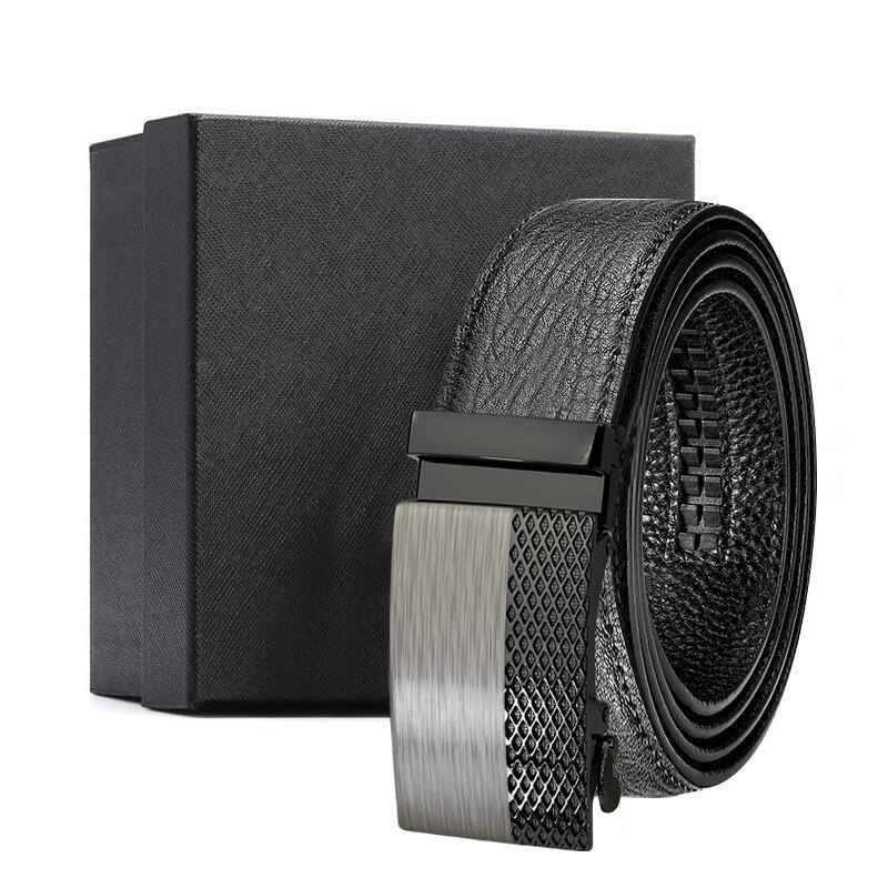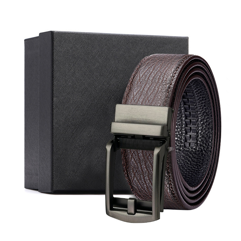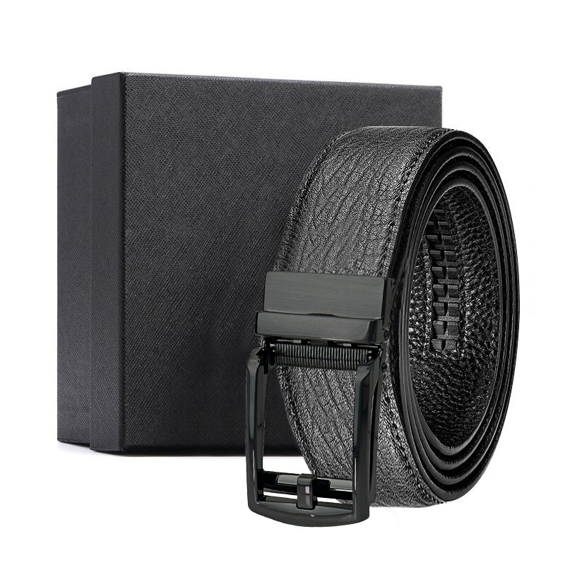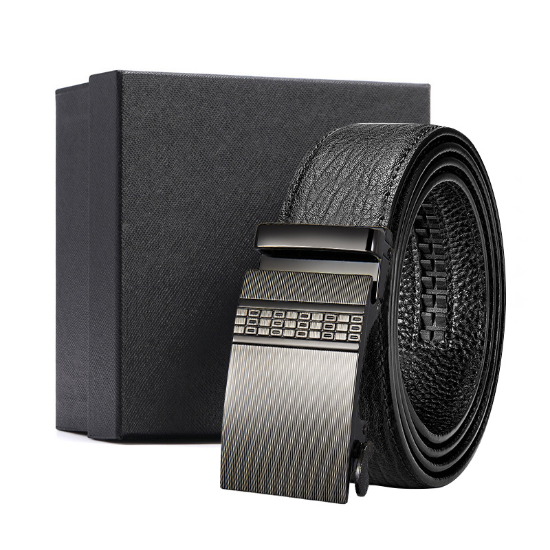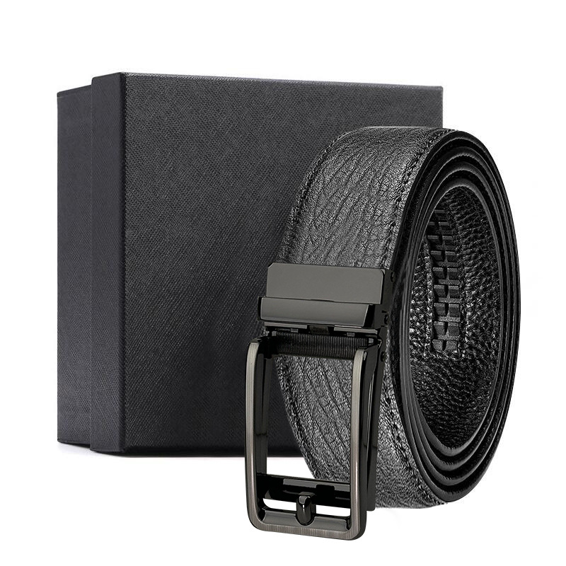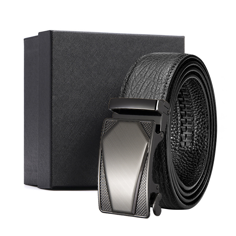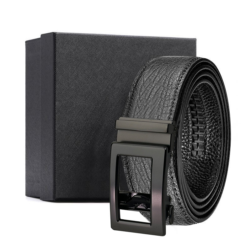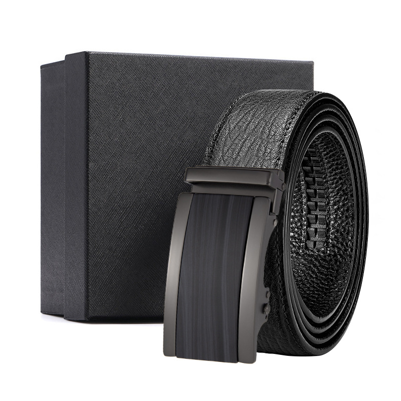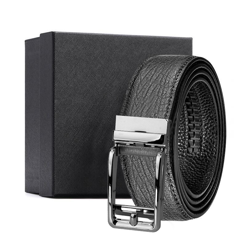 가죽 벨트 물결무늬 천연 가죽 벨트 비즈니스 선물 맞춤형 로고 인쇄 바지 벨트 1등급 소가죽 자동 버클