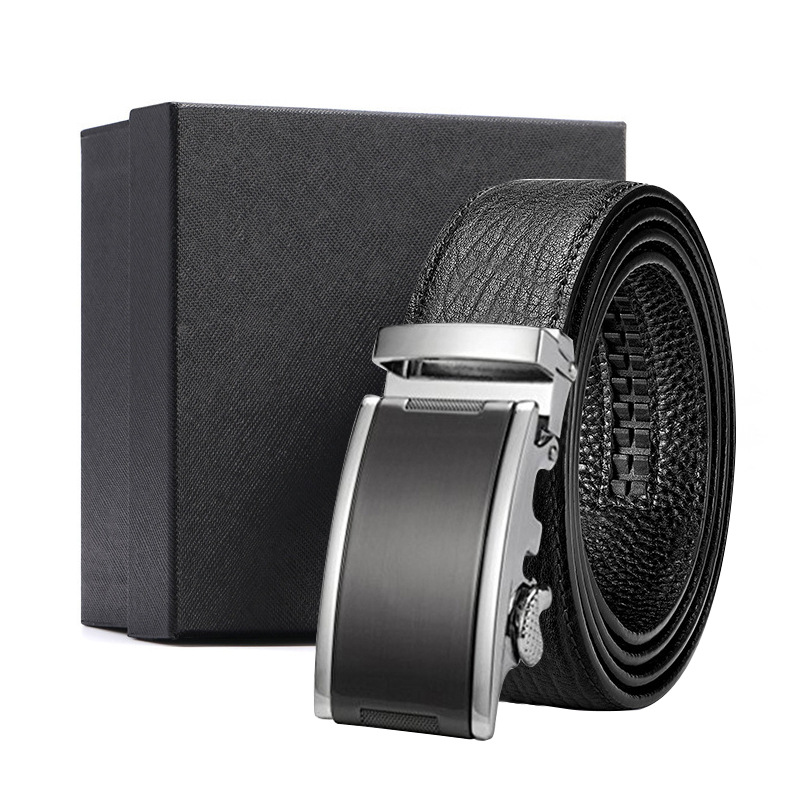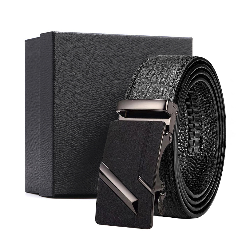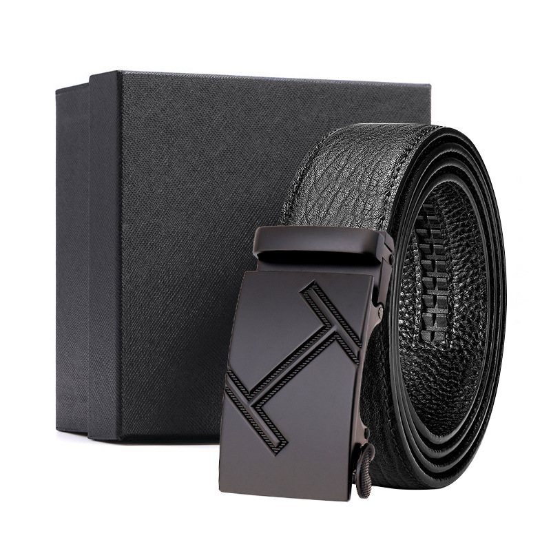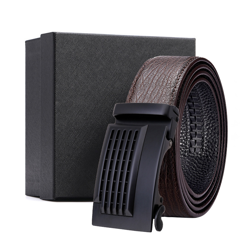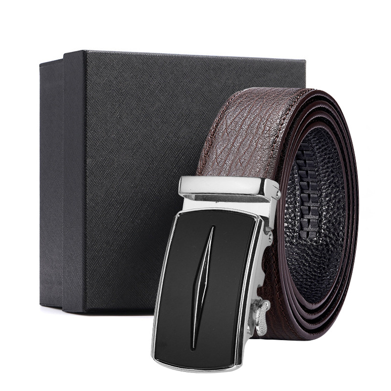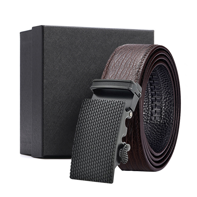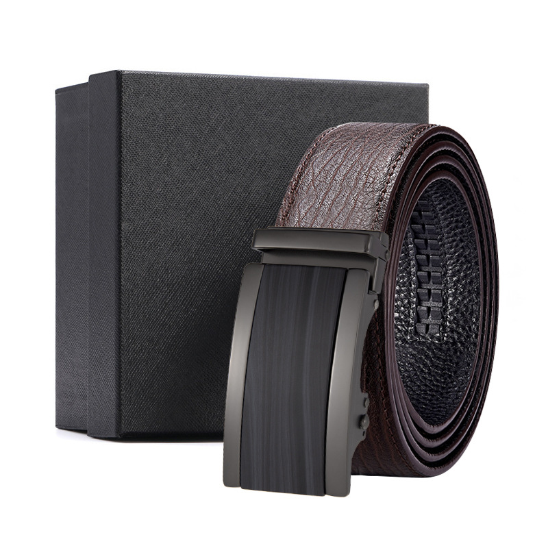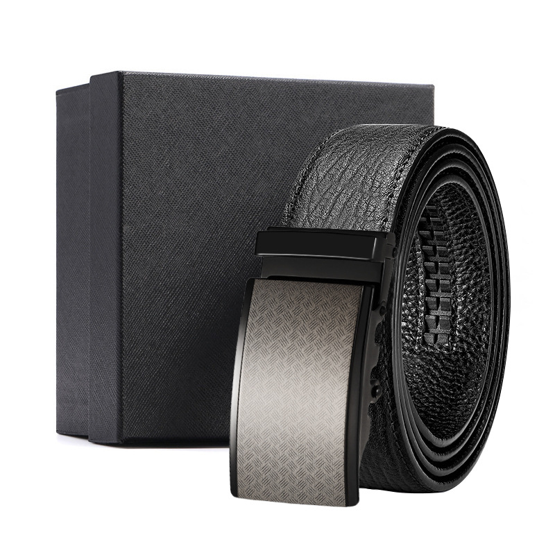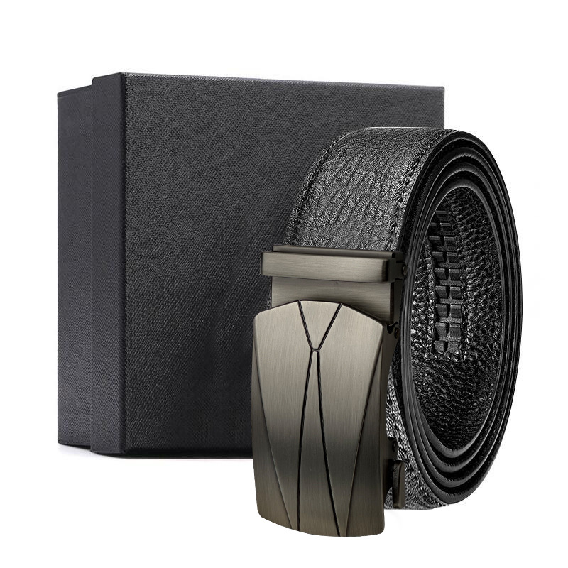 가죽 벨트 물결무늬 천연 가죽 벨트 비즈니스 선물 맞춤형 로고 인쇄 바지 벨트 1등급 소가죽 자동 버클