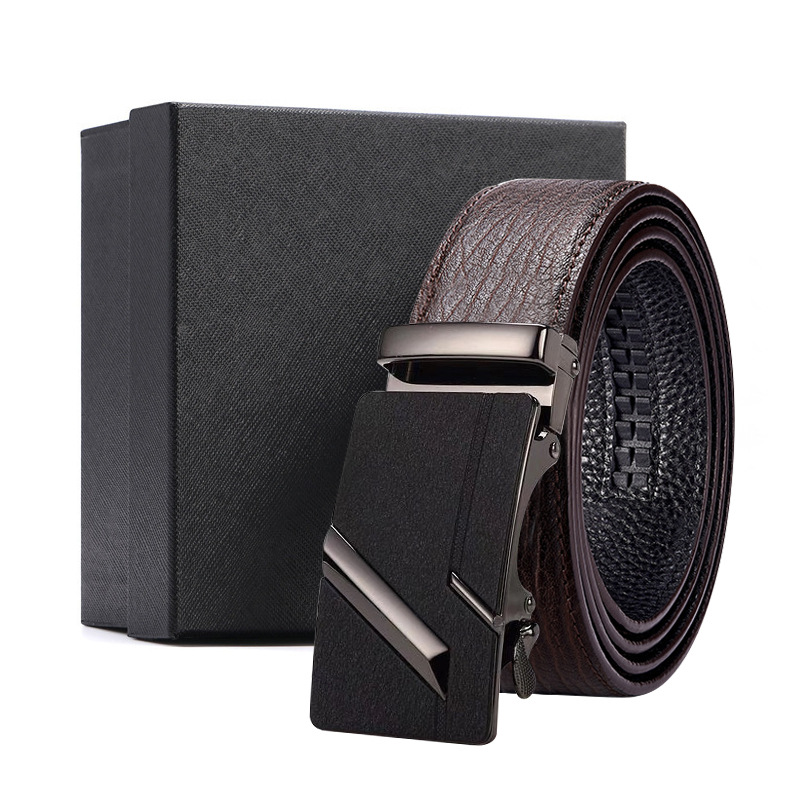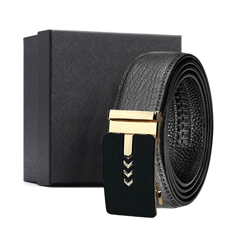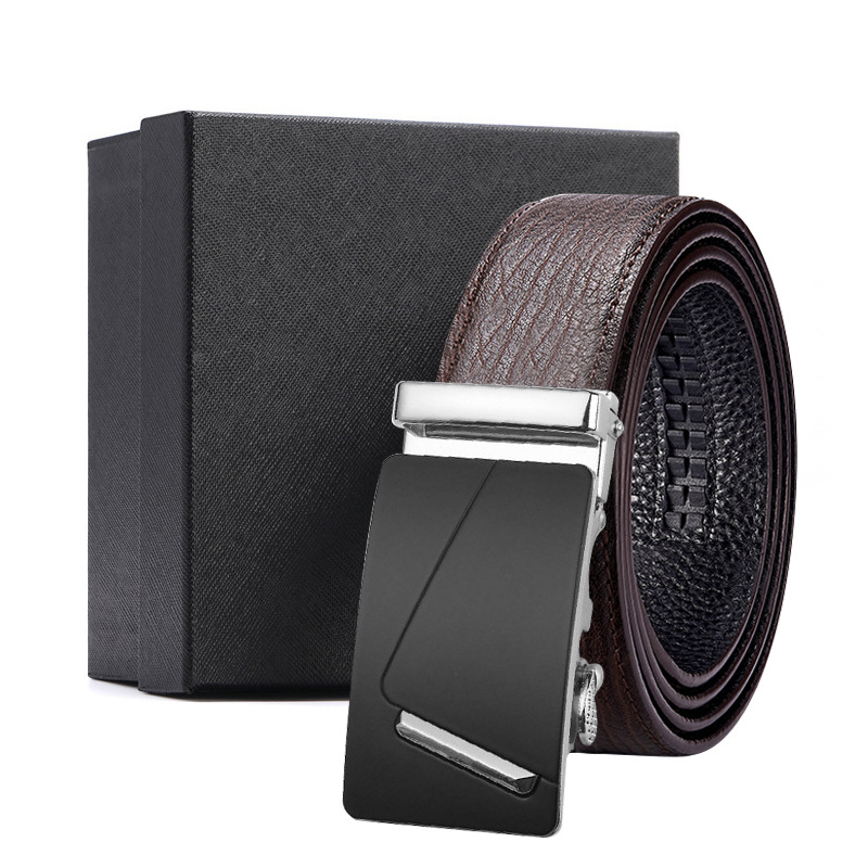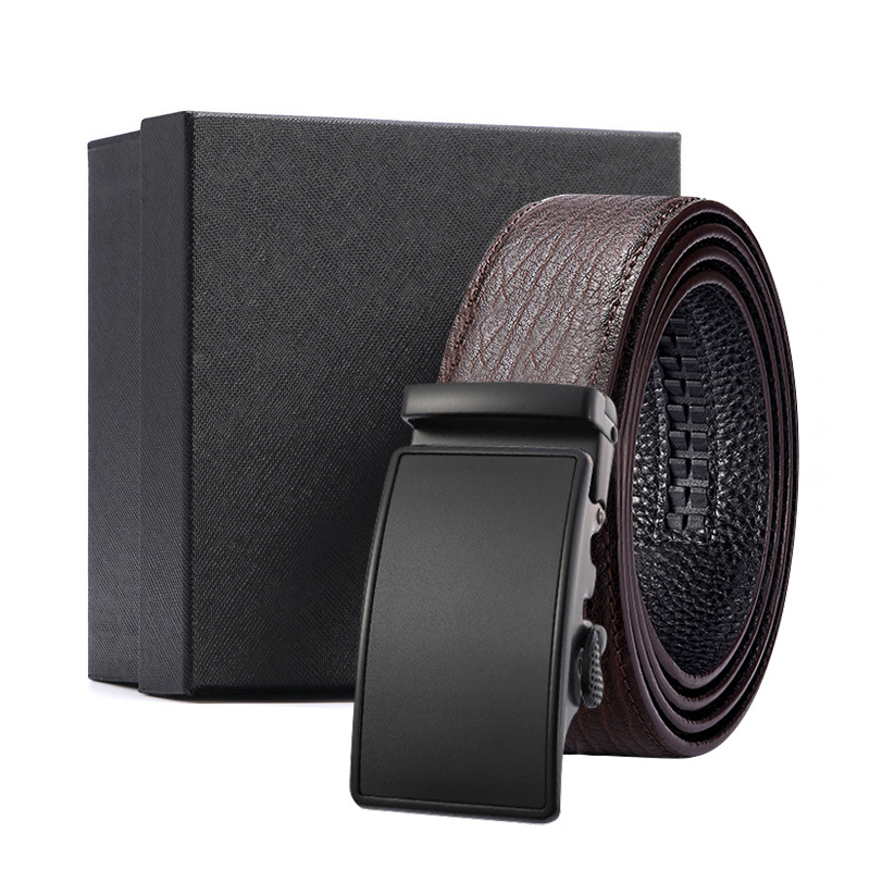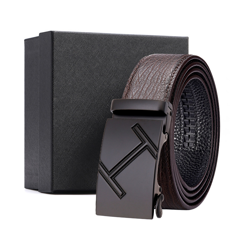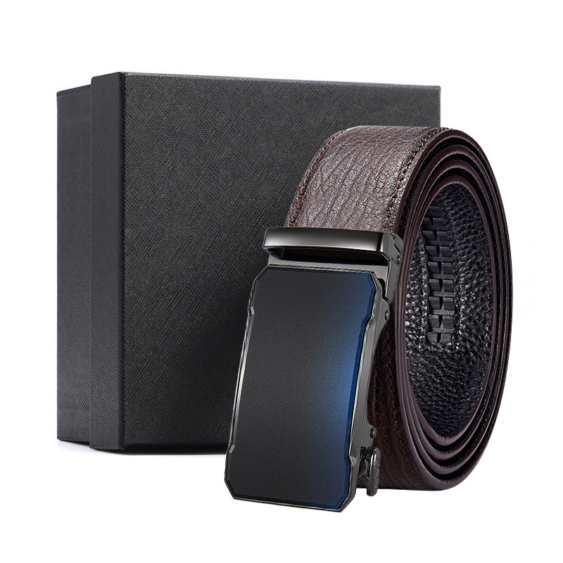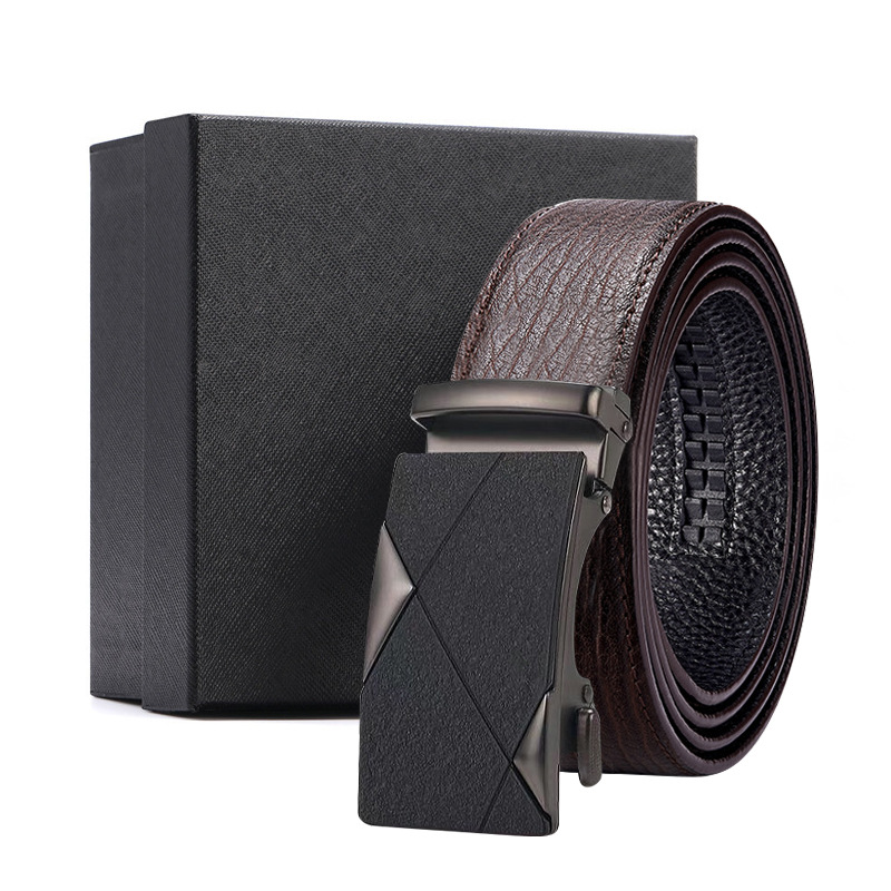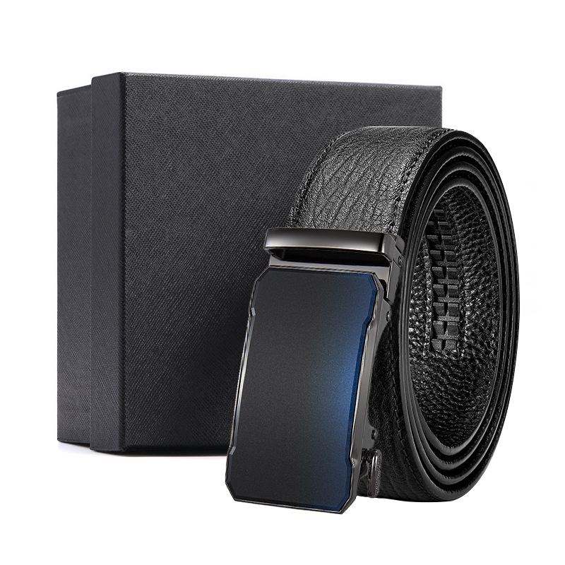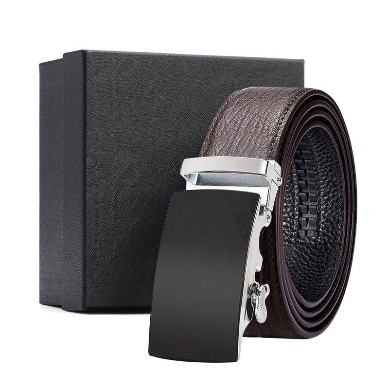 가죽 벨트 물결무늬 천연 가죽 벨트 비즈니스 선물 맞춤형 로고 인쇄 바지 벨트 1등급 소가죽 자동 버클