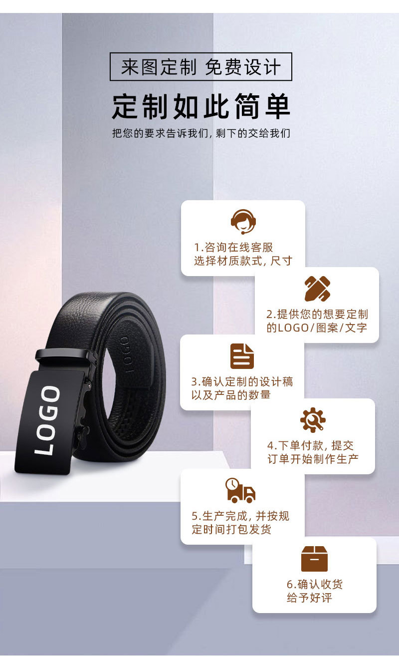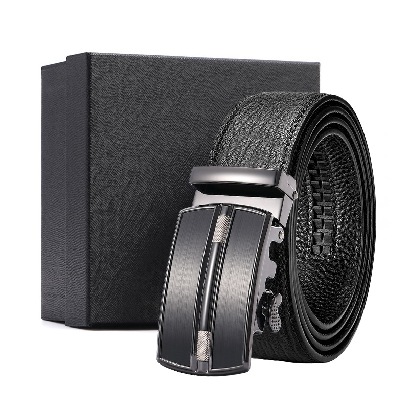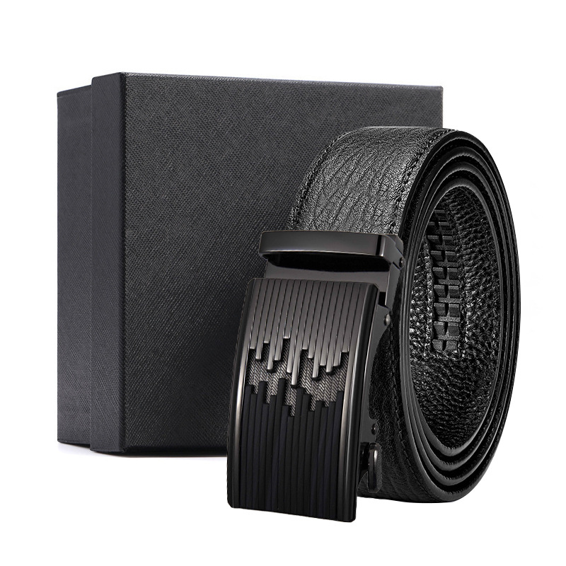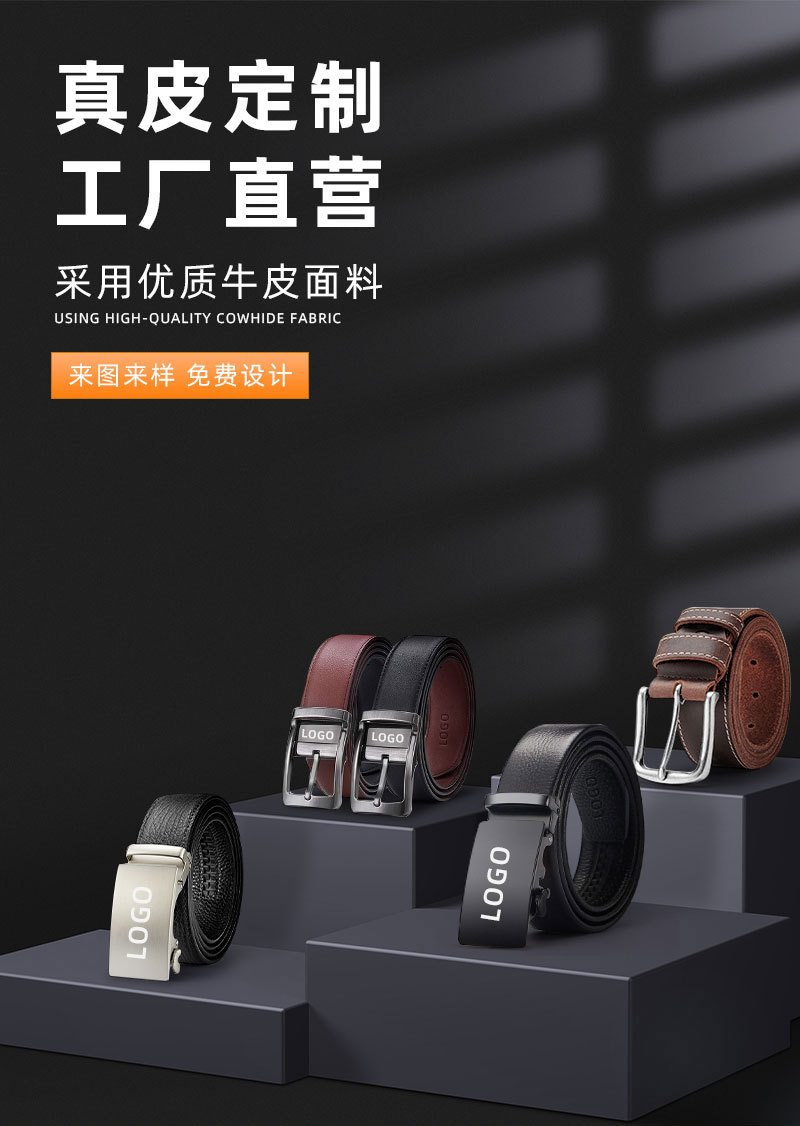 가죽 벨트 물결무늬 천연 가죽 벨트 비즈니스 선물 맞춤형 로고 인쇄 바지 벨트 1등급 소가죽 자동 버클스토어 가기