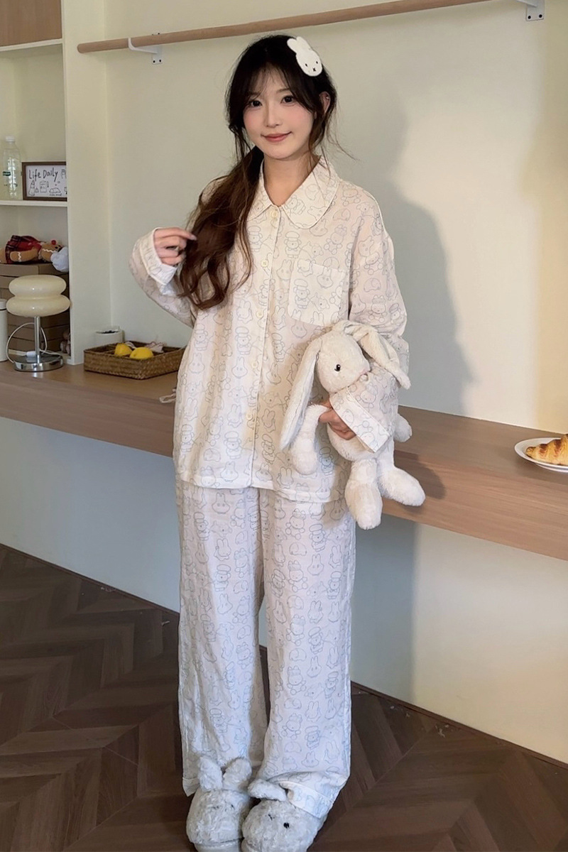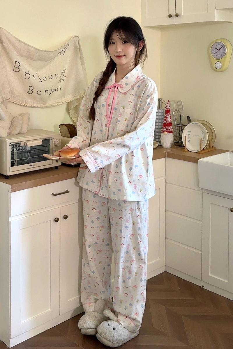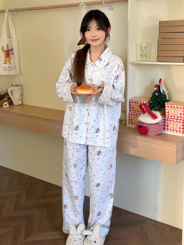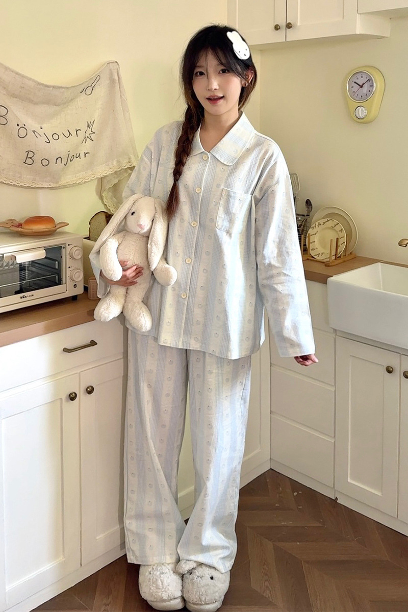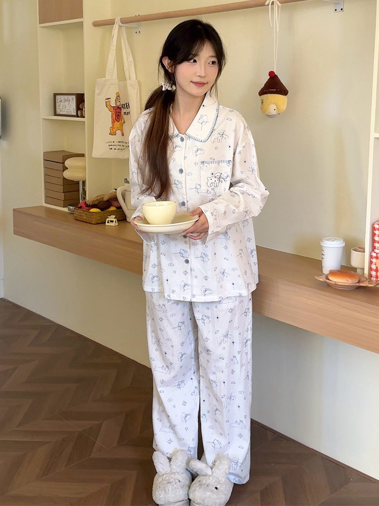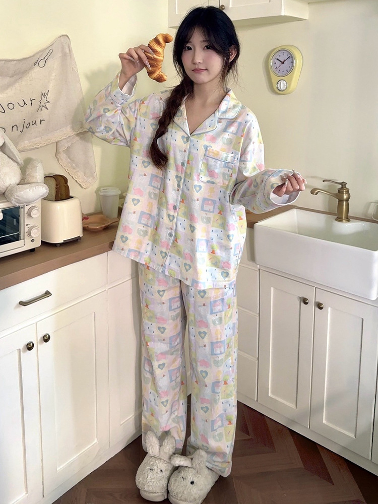 2024 봄과 여름 새 커플 면 잠옷 한국면 홈 웨어는 단순한 세트 남성과 여성 밖에서 착용 할 수 있습니다.스토어 가기