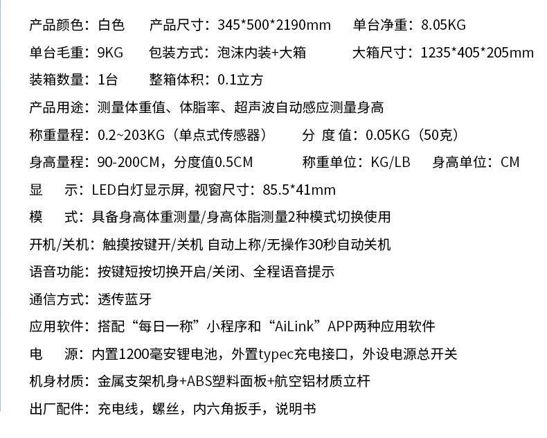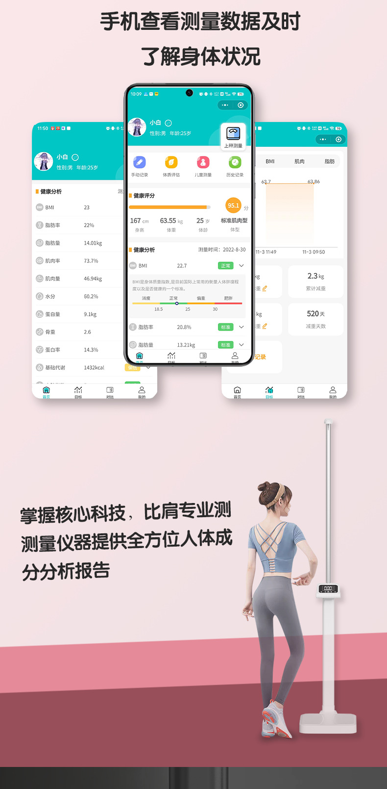 • J02 중국어 및 영어 캘리퍼 높이 체중 체지방 규모