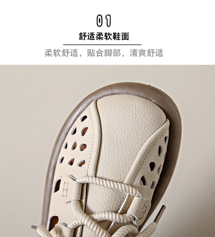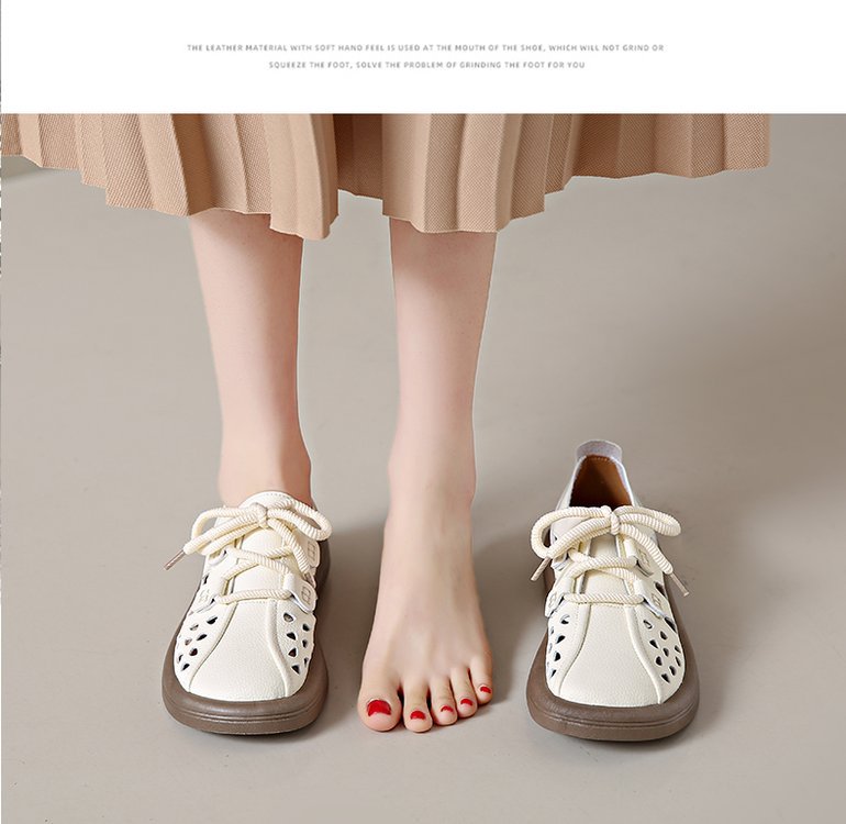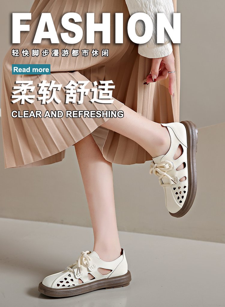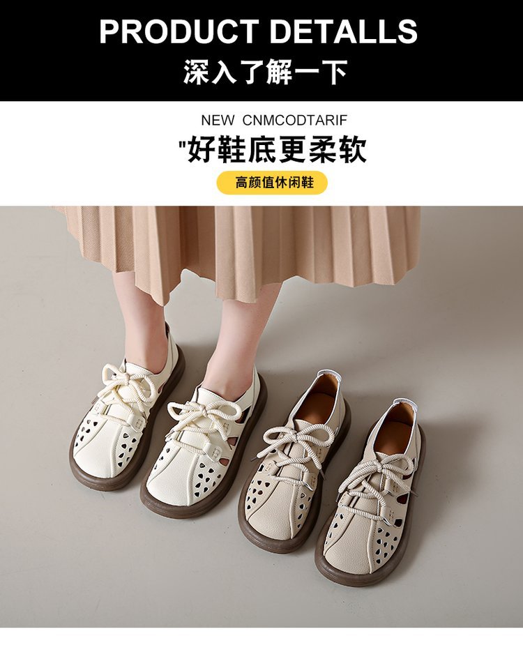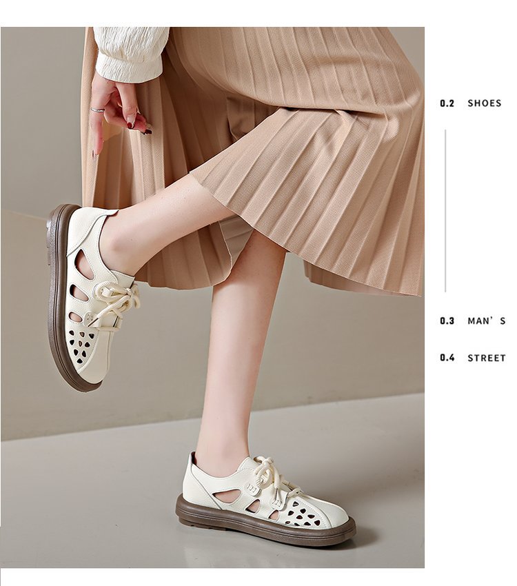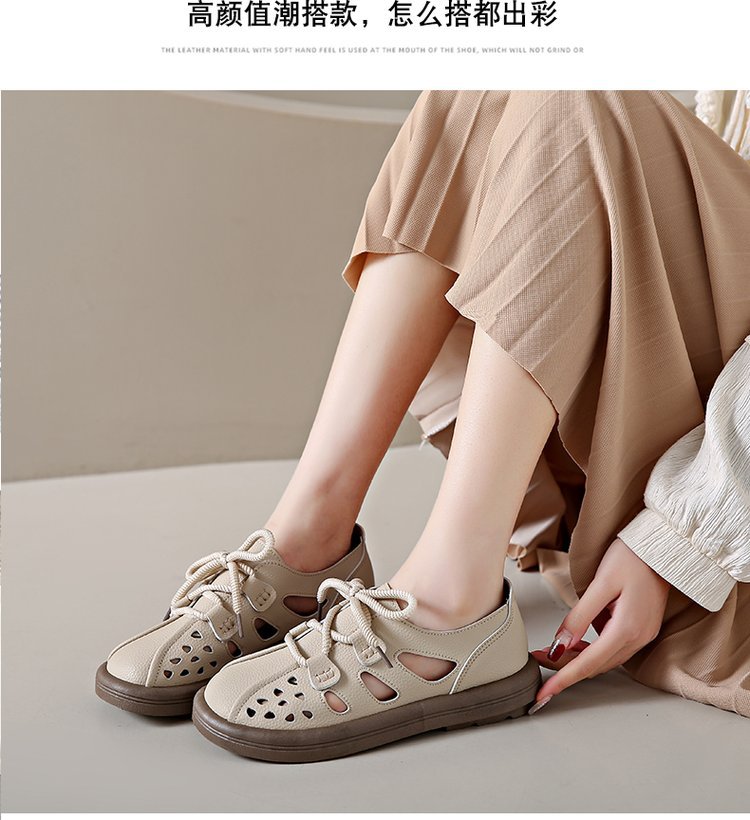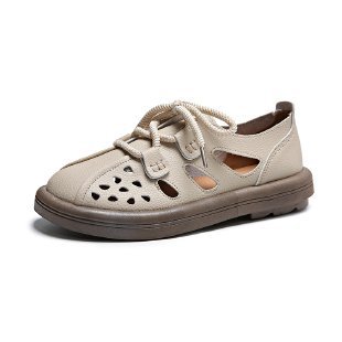 여성을위한 플러스 사이즈 중공 싱글 레이어 신발 2024 여름 새로운 편안한 부드러운 바닥 캐주얼 통기성 싱글 레이어 신발 여성을위한 올 매치 플랫 샌들