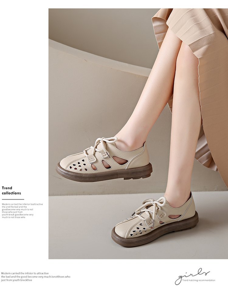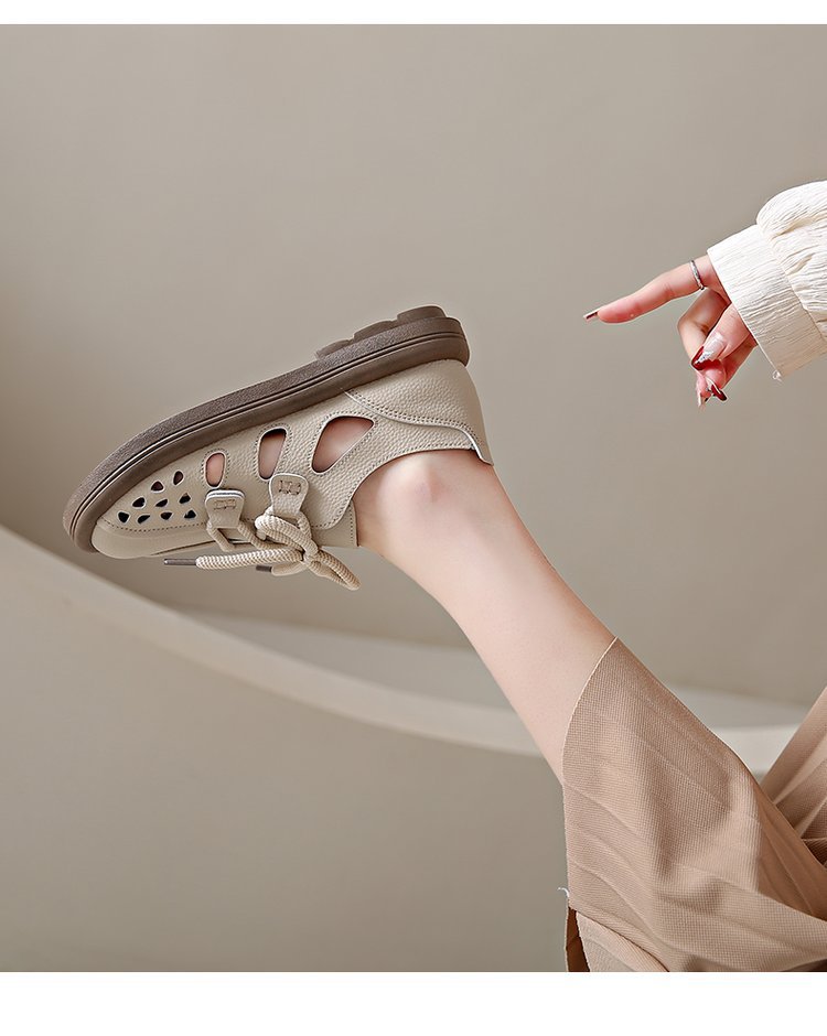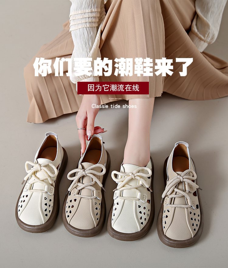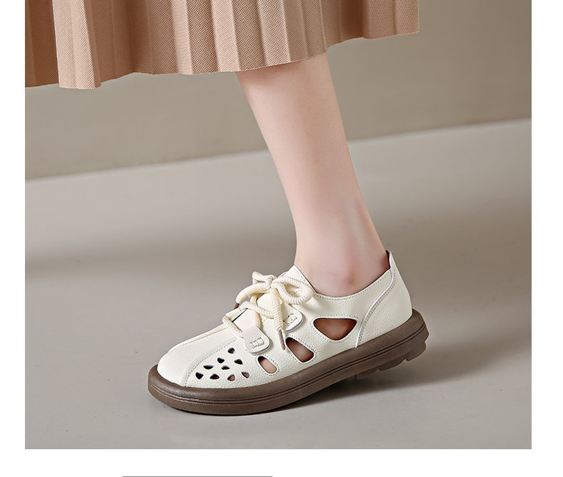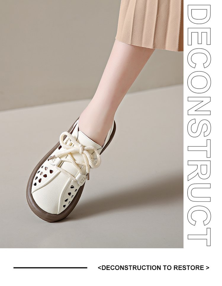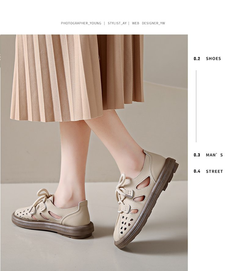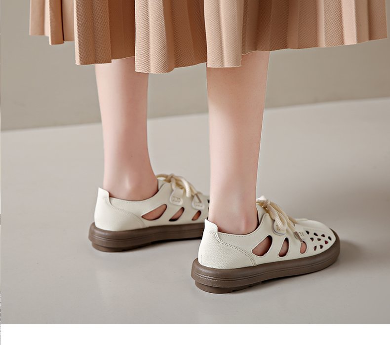 여성을위한 플러스 사이즈 중공 싱글 레이어 신발 2024 여름 새로운 편안한 부드러운 바닥 캐주얼 통기성 싱글 레이어 신발 여성을위한 올 매치 플랫 샌들