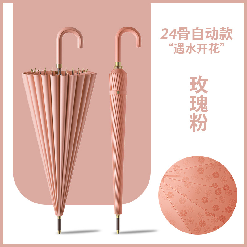 물 긴 손잡이로 피는 24 개의 뼈 곡선 핸들 우산 자동 여성 더블 큰 남성 폭풍 방지 인쇄 로고 재고 도매 우산스토어 가기