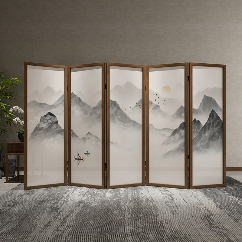 중국 스타일의 단단한 나무 스크린 접이식 모바일 거실 입구 파티션 차단 호텔 간단한 현대 풍경 접이식 화면