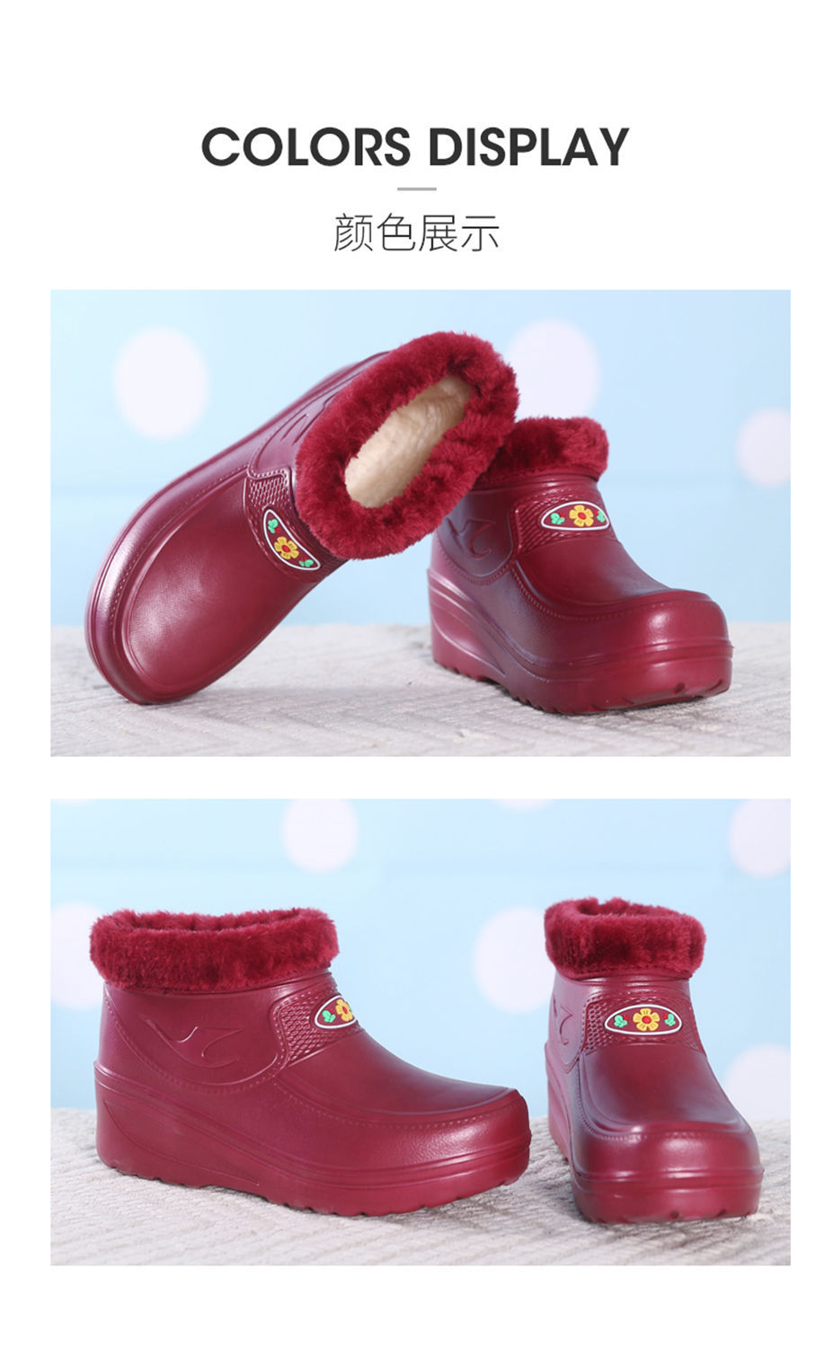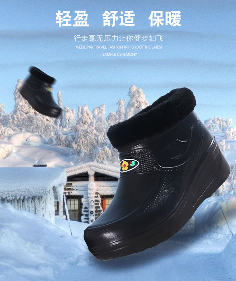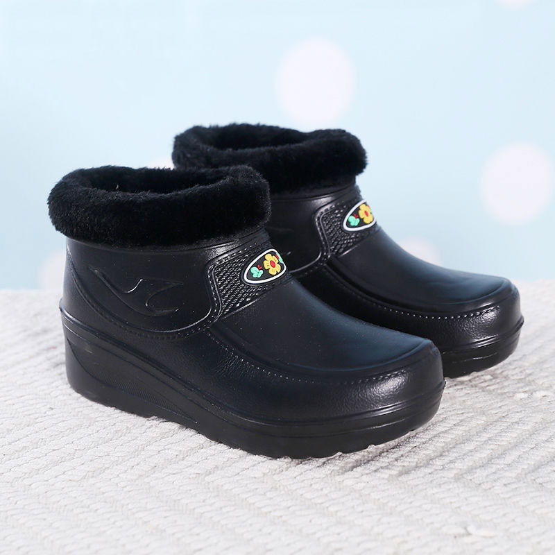 폼 코튼 신발 방수 통합 기모 겨울 EVA 워터 슈즈 남성용 짧은 장화 여성용 코튼 레인 슈즈 주방 세탁 신발스토어 가기