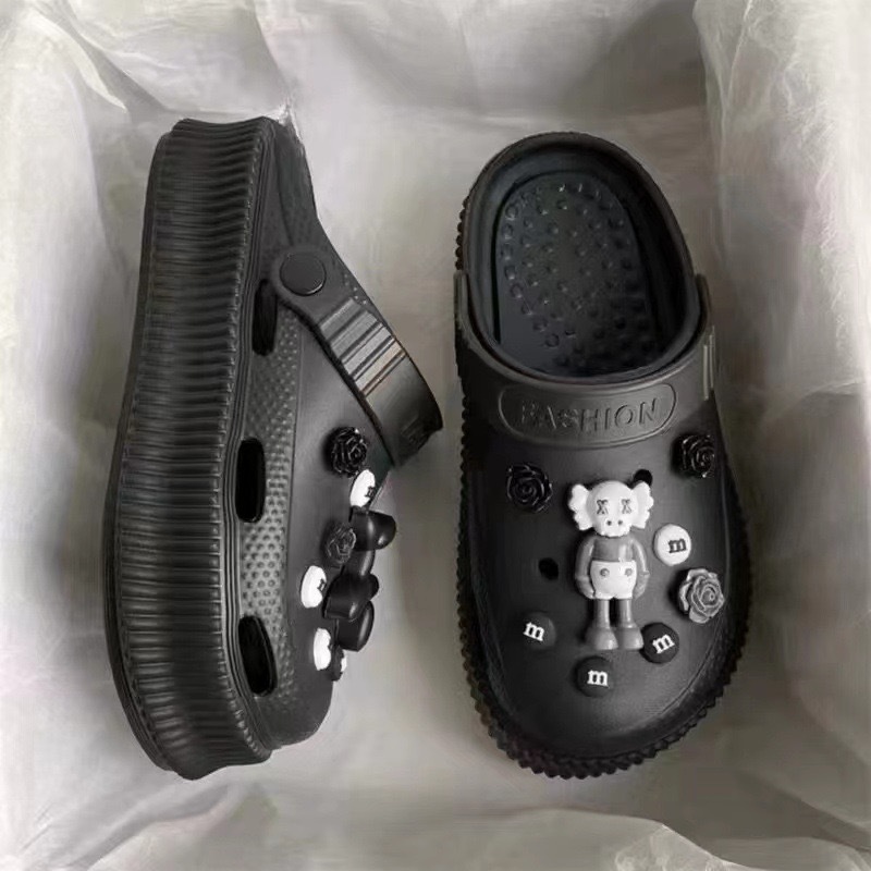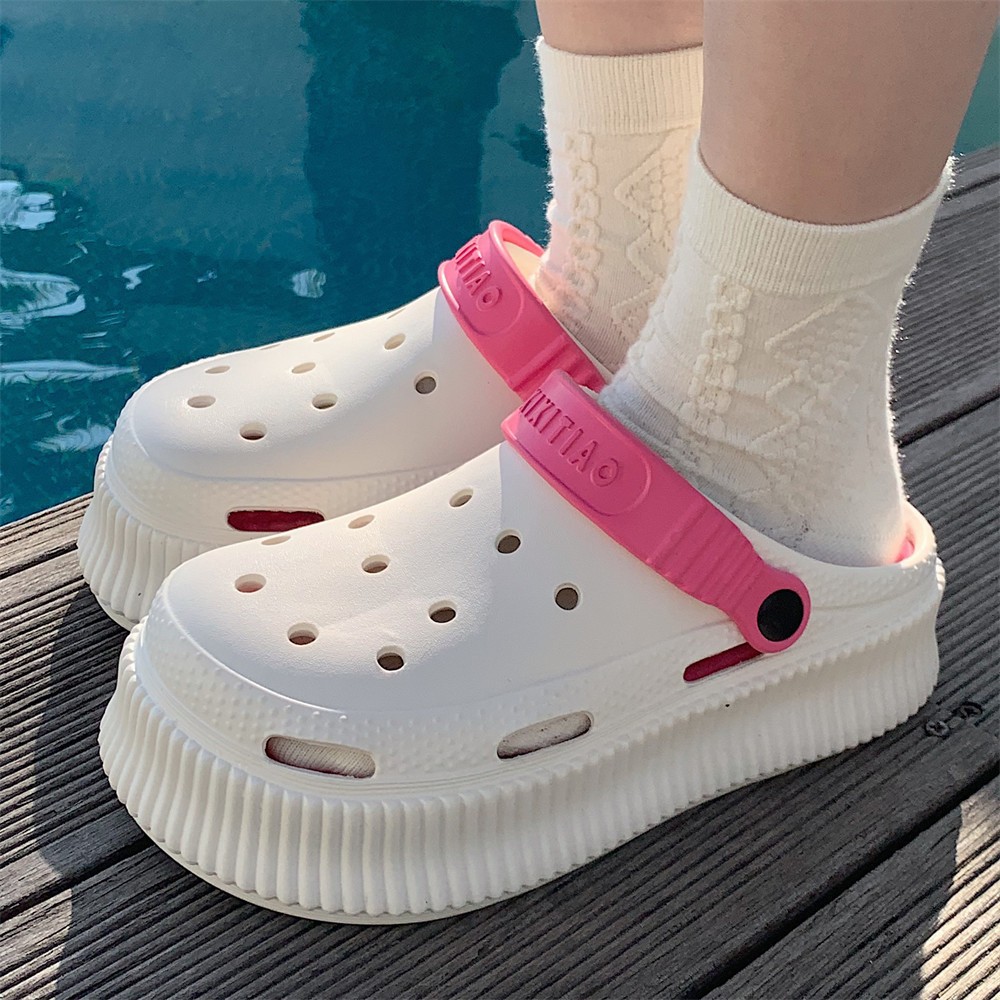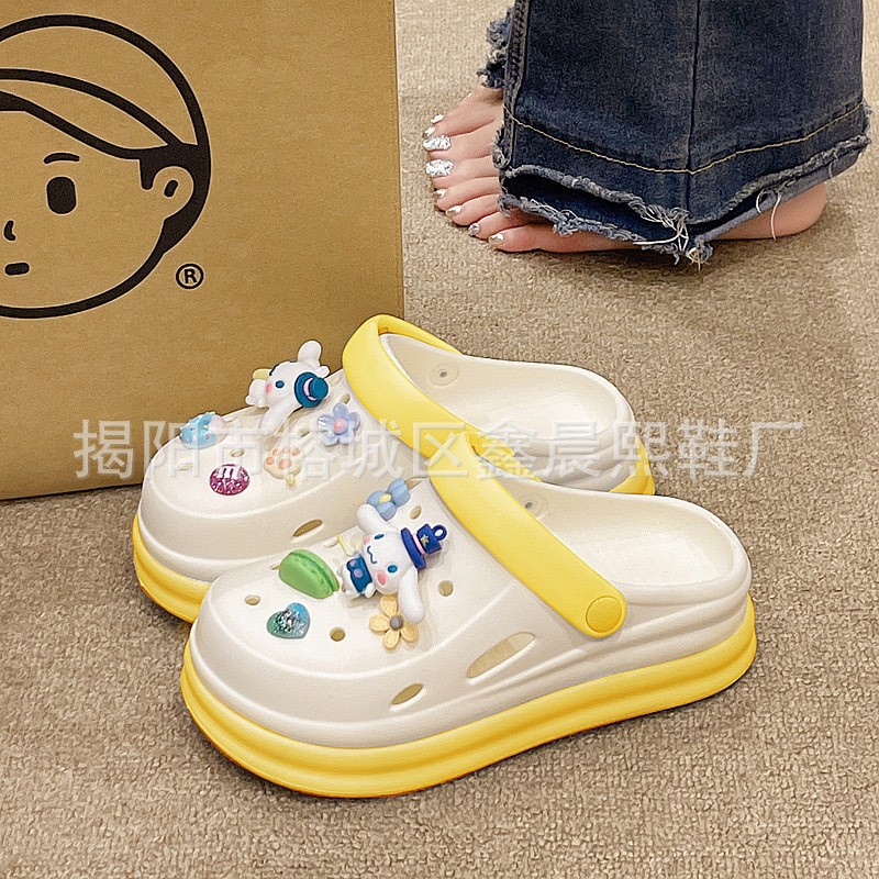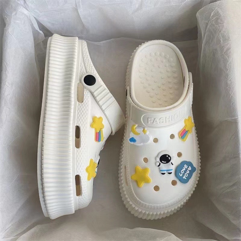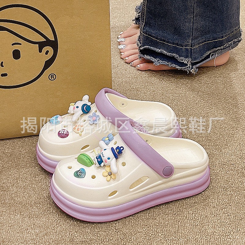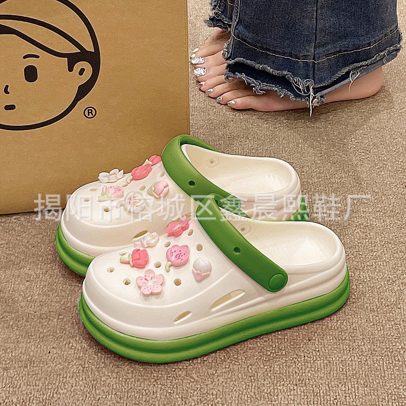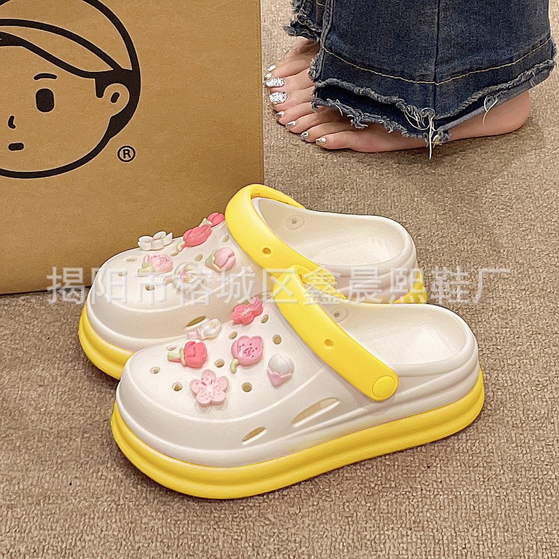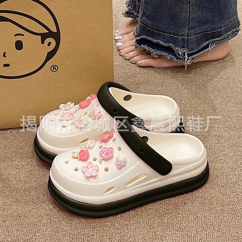 패션 3 차원 만화 부드러운 바닥 닫힌 발가락 구멍 신발 두꺼운 바닥 높이 증가 야외 여성 여름 해변 해변 샌들