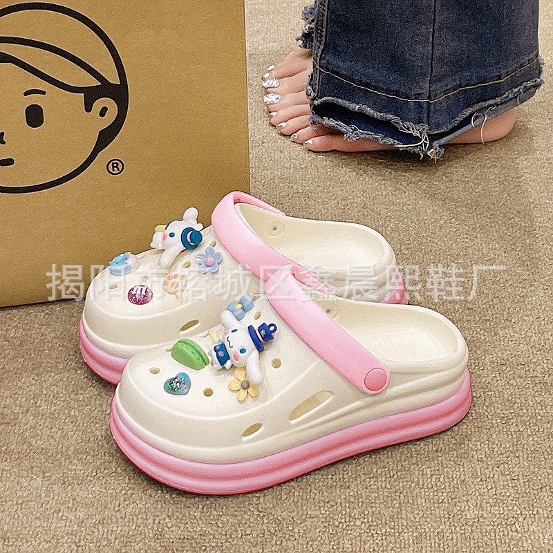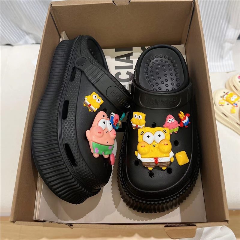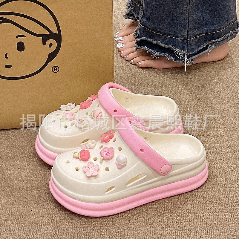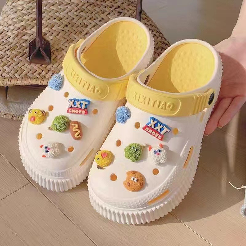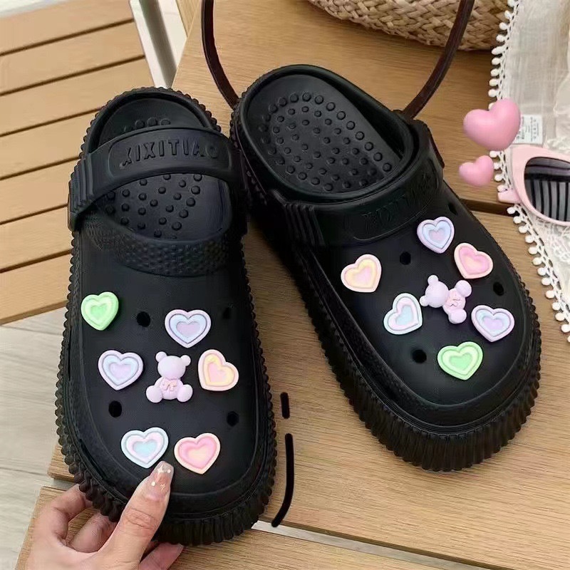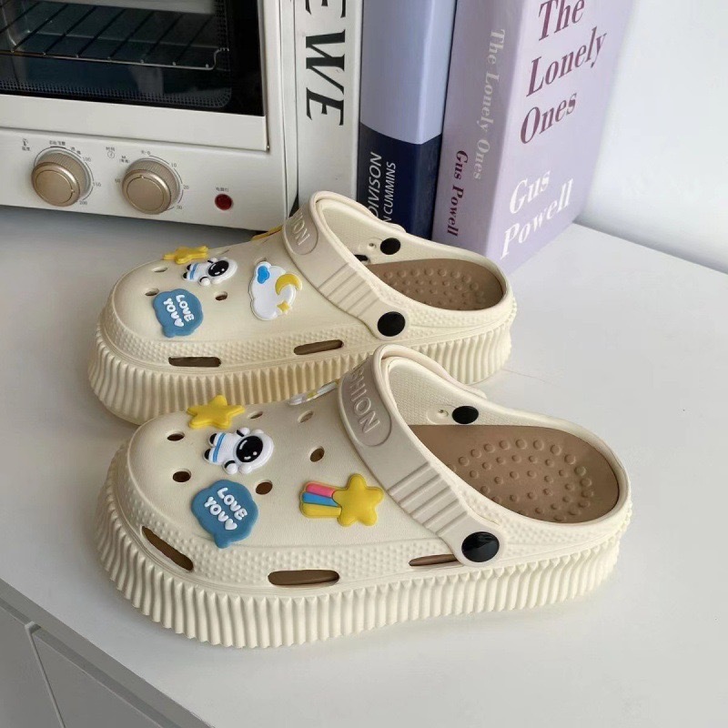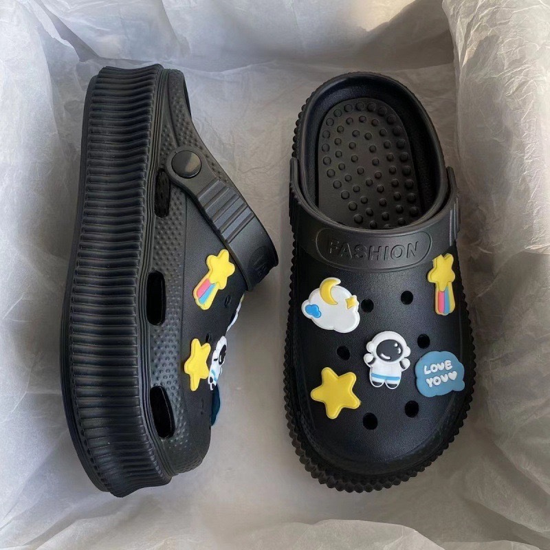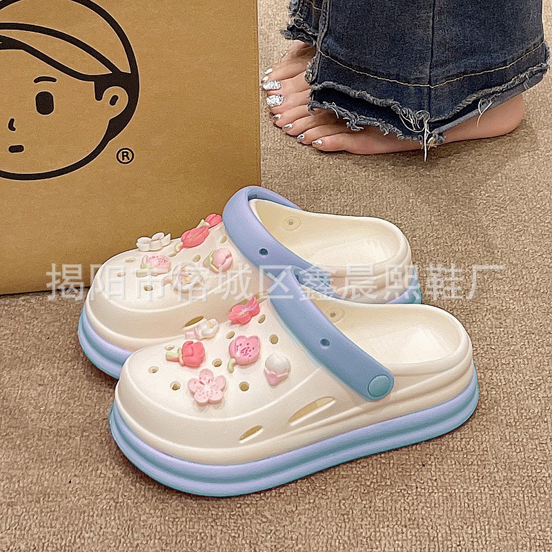 패션 3 차원 만화 부드러운 바닥 닫힌 발가락 구멍 신발 두꺼운 바닥 높이 증가 야외 여성 여름 해변 해변 샌들