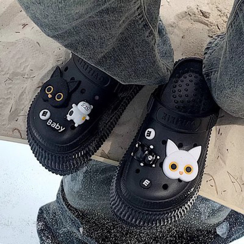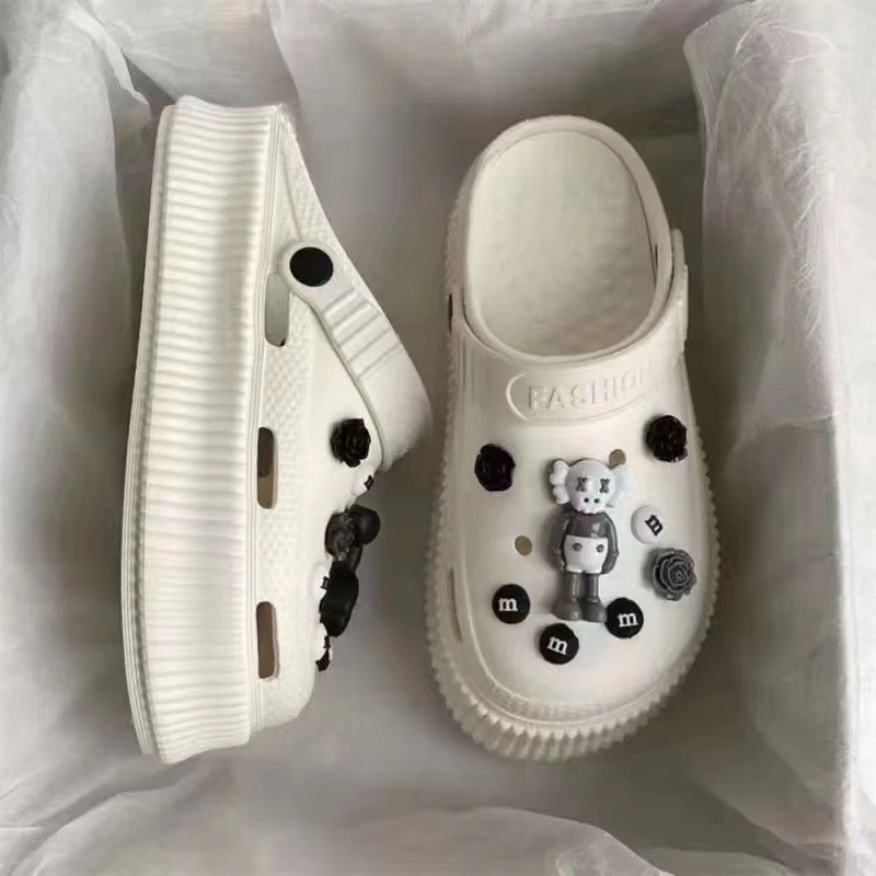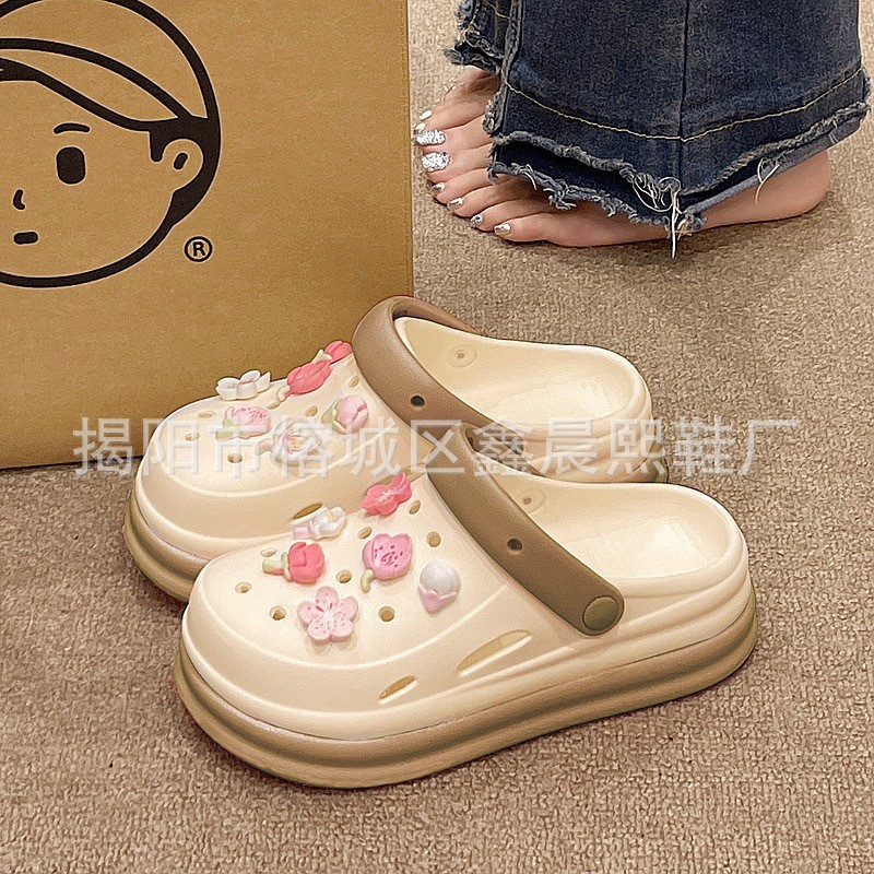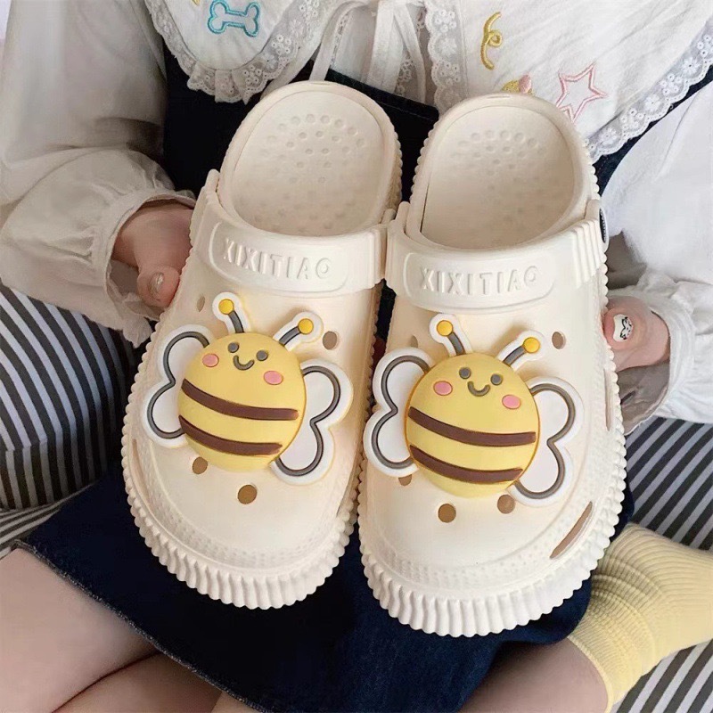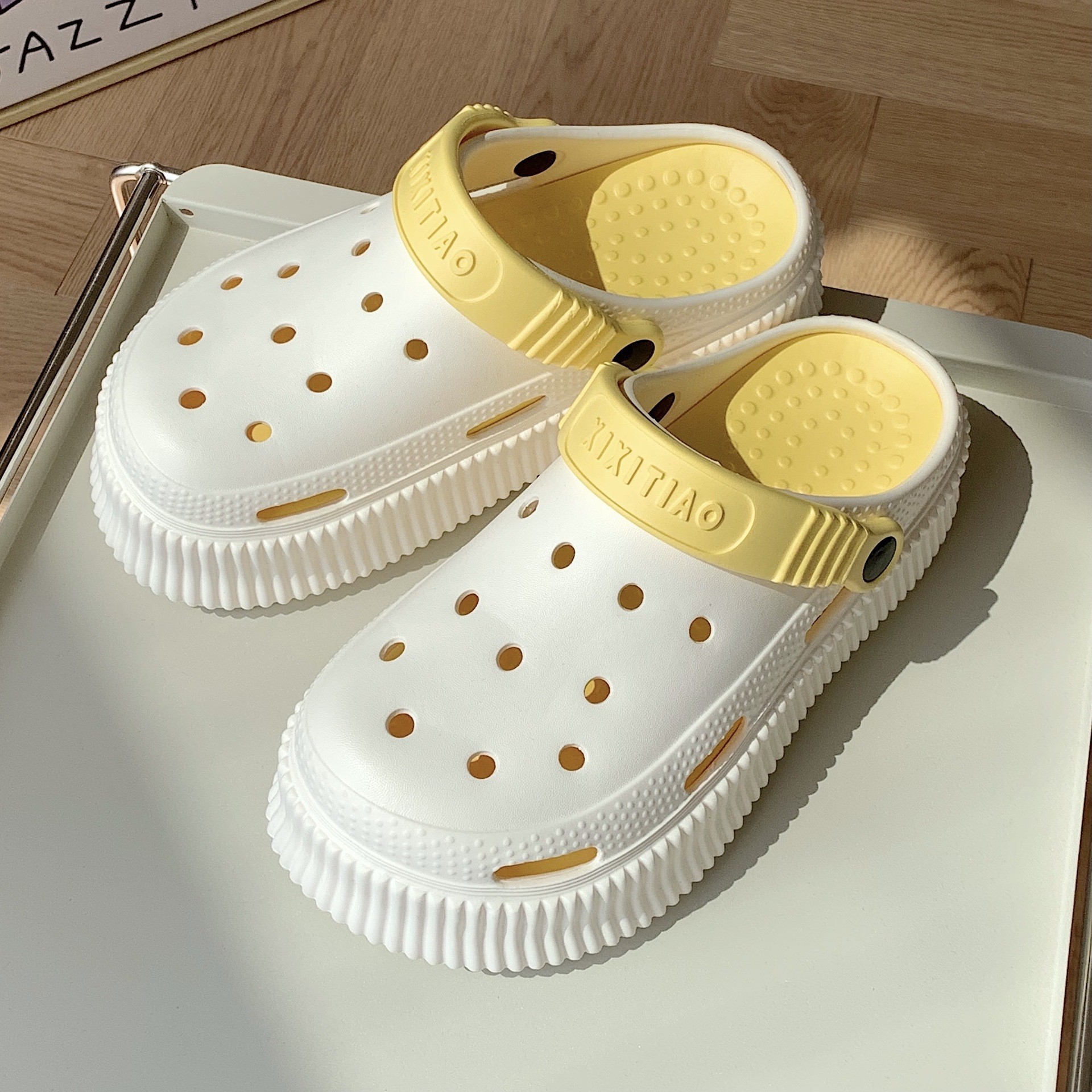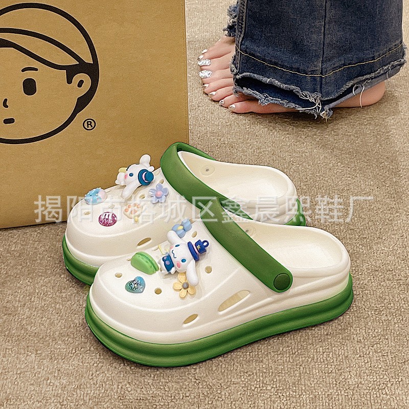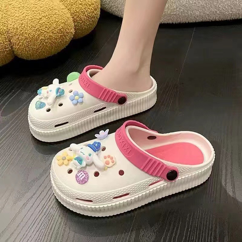 패션 3 차원 만화 부드러운 바닥 닫힌 발가락 구멍 신발 두꺼운 바닥 높이 증가 야외 여성 여름 해변 해변 샌들