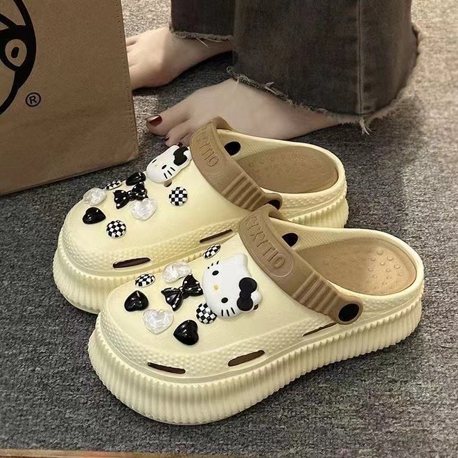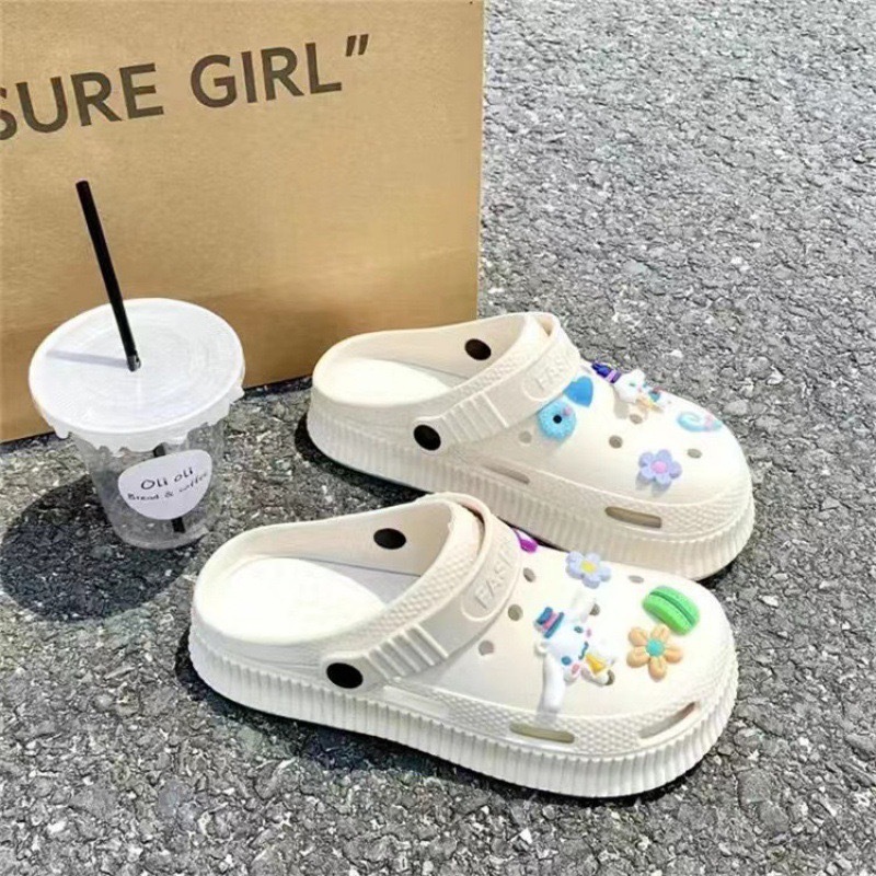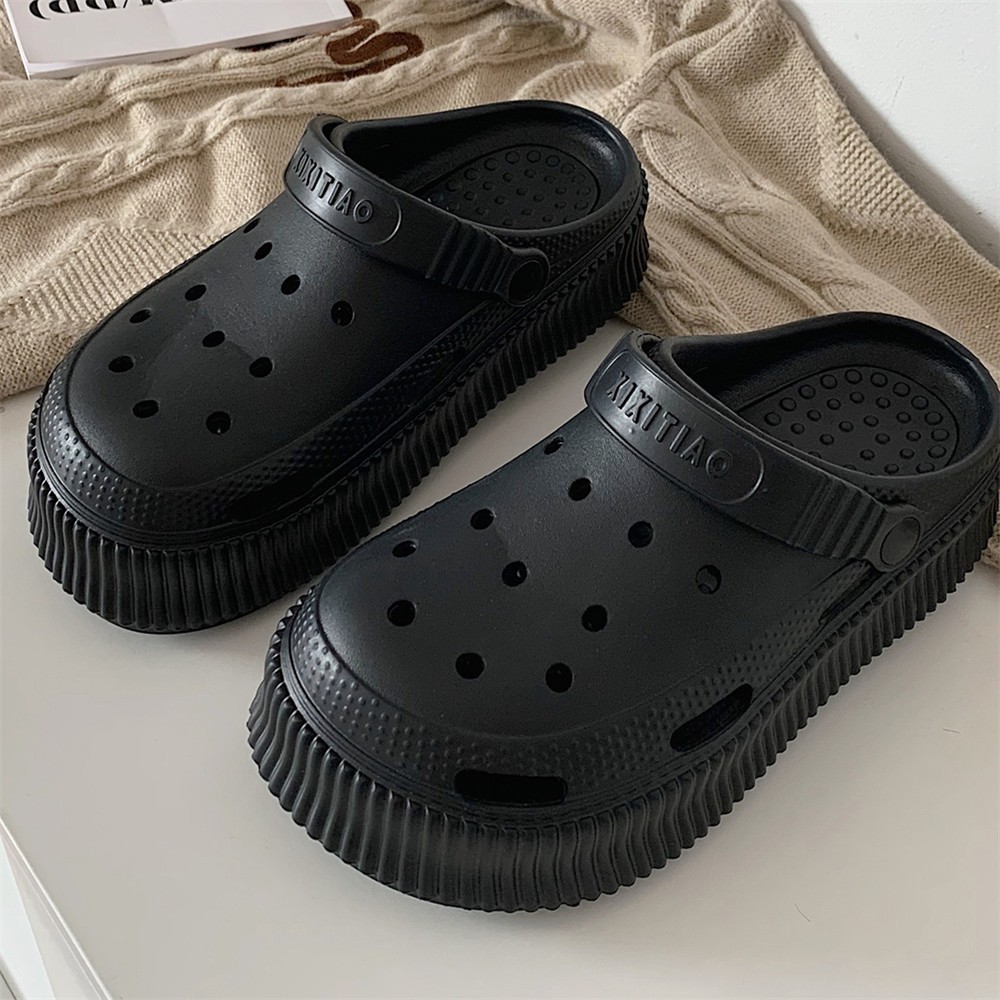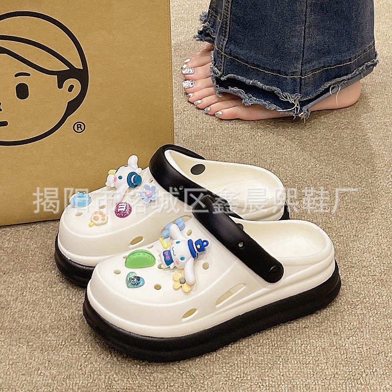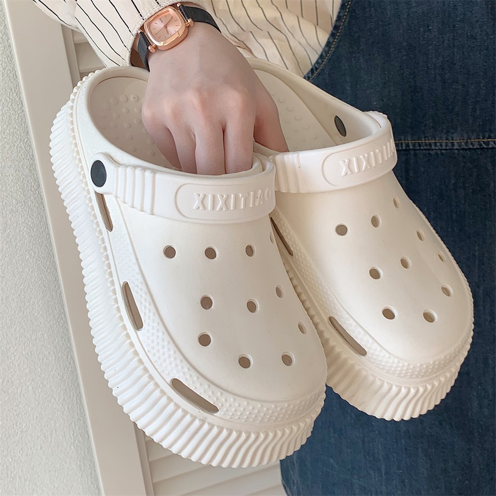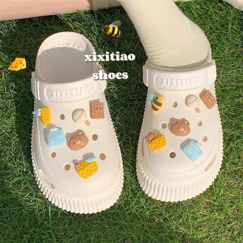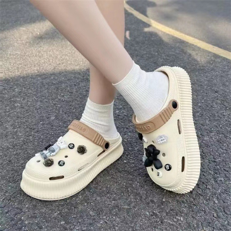 패션 3 차원 만화 부드러운 바닥 닫힌 발가락 구멍 신발 두꺼운 바닥 높이 증가 야외 여성 여름 해변 해변 샌들