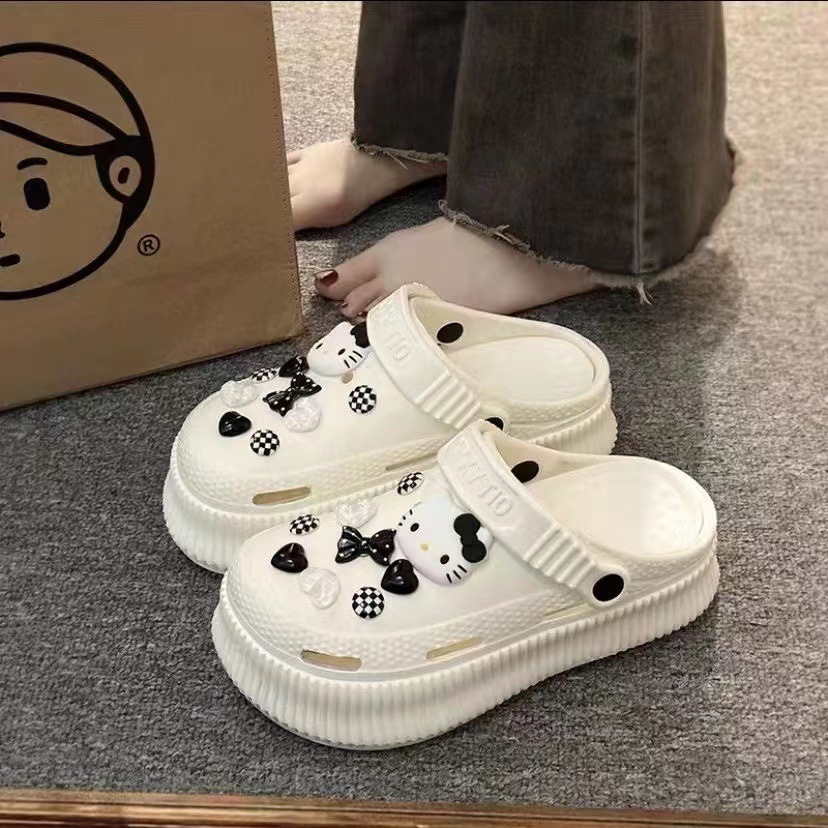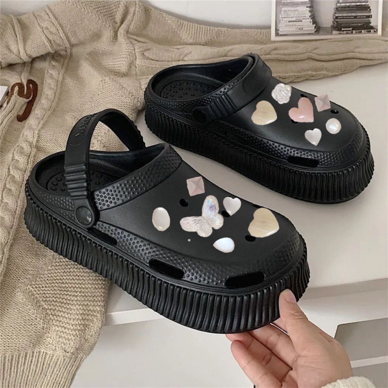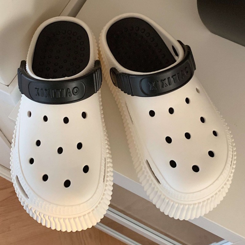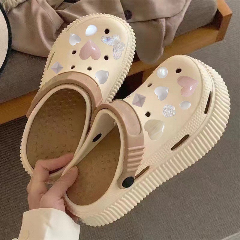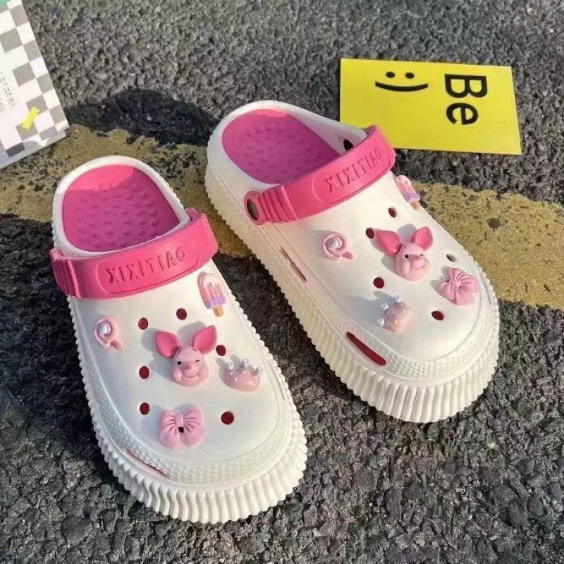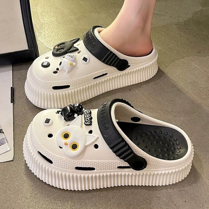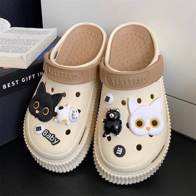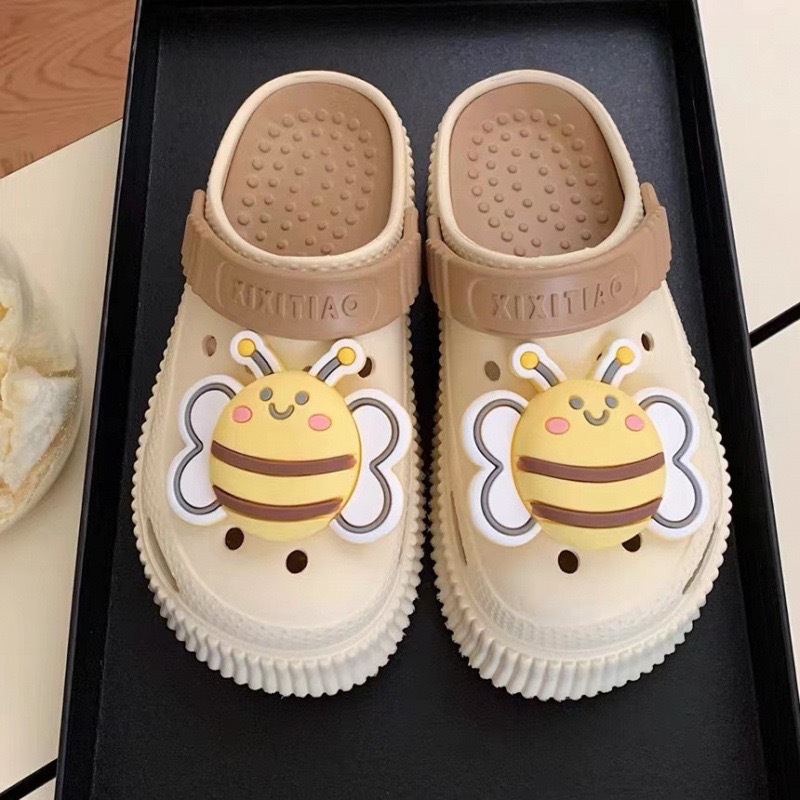 패션 3 차원 만화 부드러운 바닥 닫힌 발가락 구멍 신발 두꺼운 바닥 높이 증가 야외 여성 여름 해변 해변 샌들