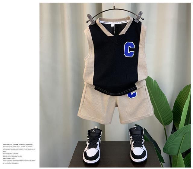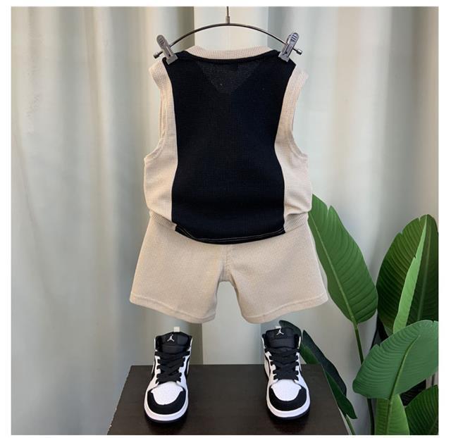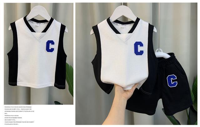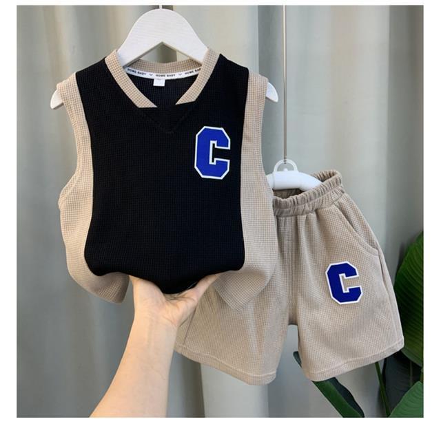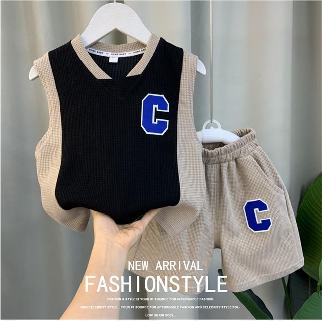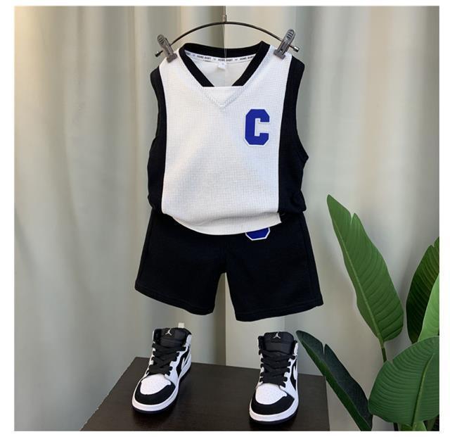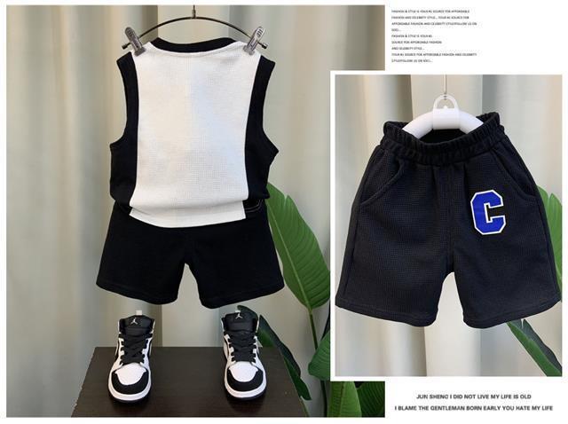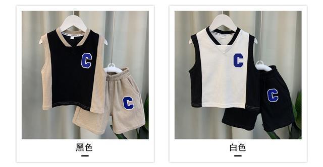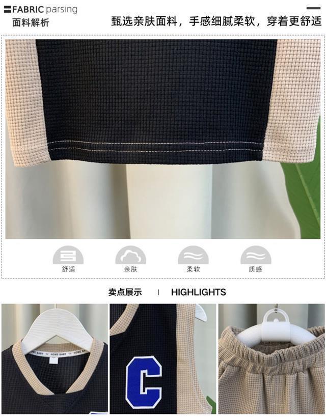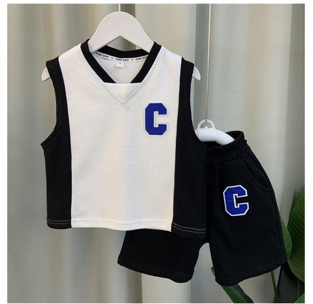 소년 조끼 세트 여름 2024 새로운 서양식 아기 그물 빨간 옷 소년 한국 스타일 시원한 잘 생긴 아동복 패션스토어 가기