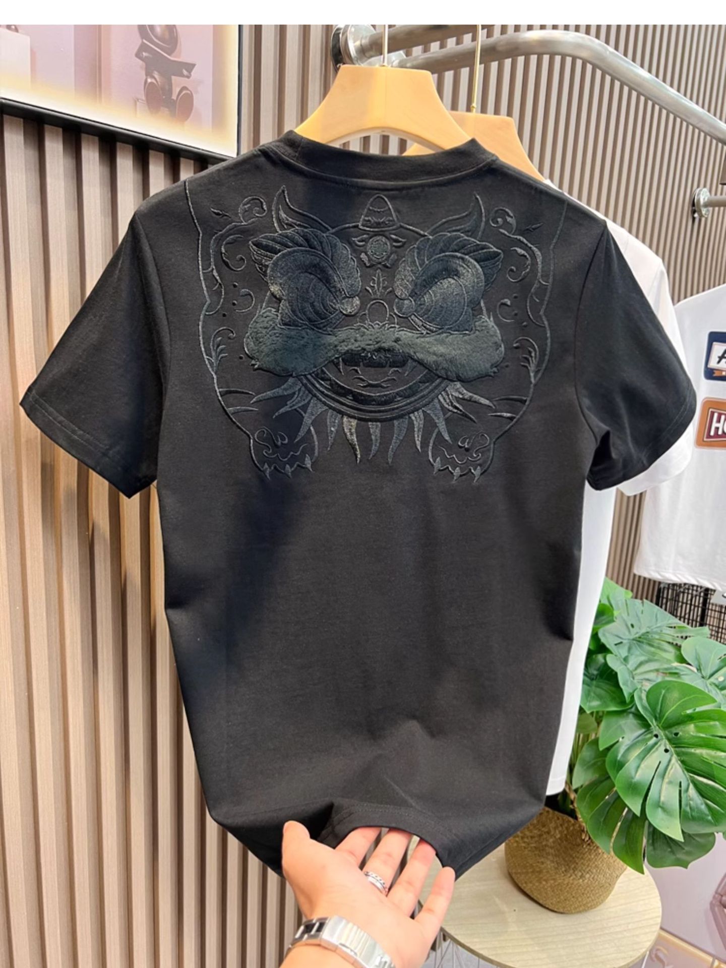 2024 중국 스타일 Xingshi 반팔 티셔츠 남성 2024 여름 새로운 캐주얼 반소매 티셔츠 청소년 바닥 셔츠스토어 가기