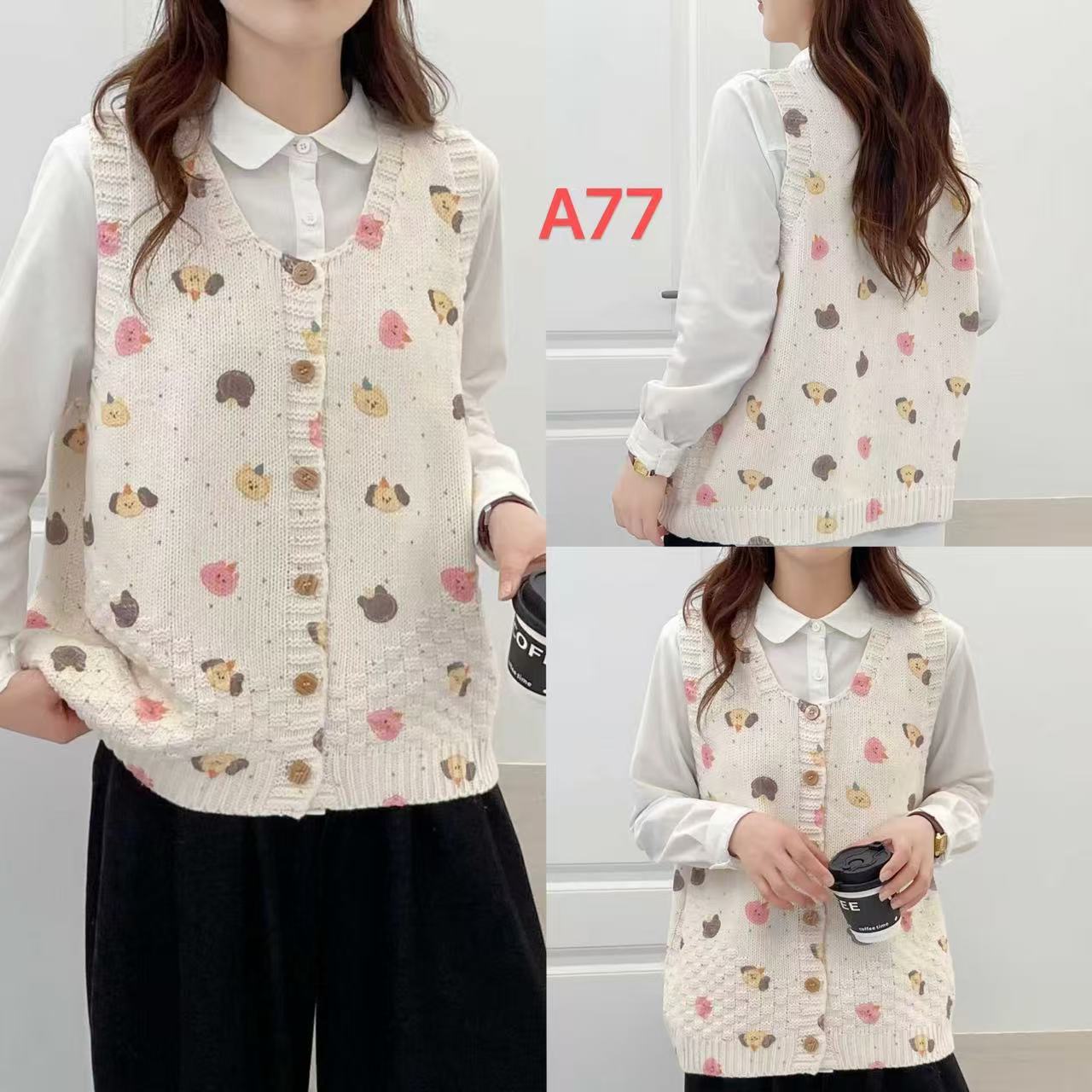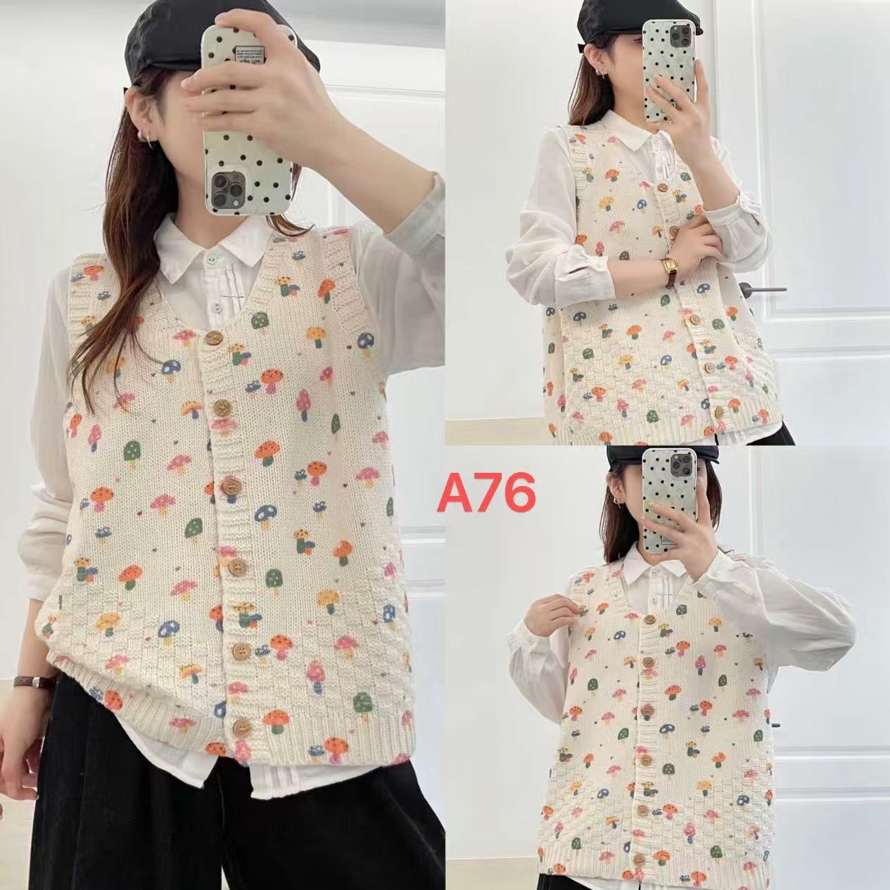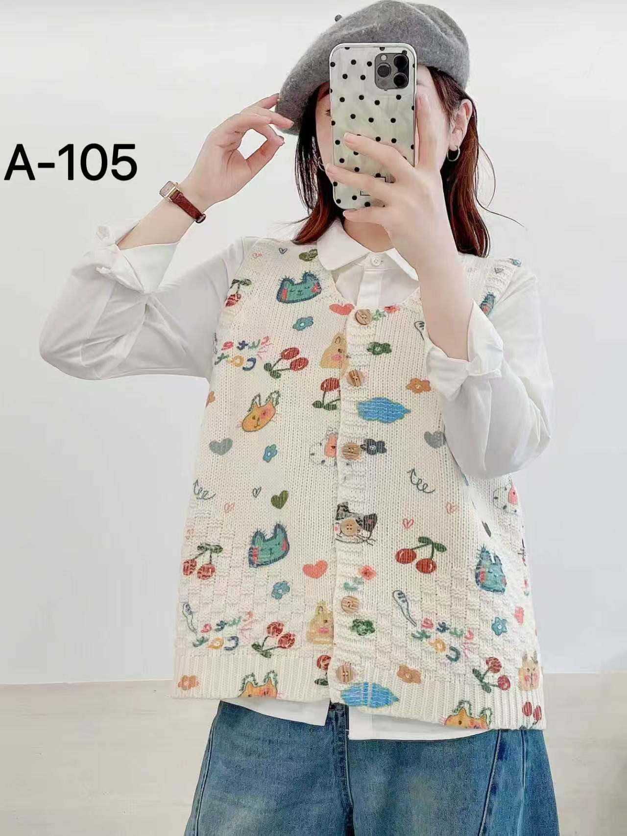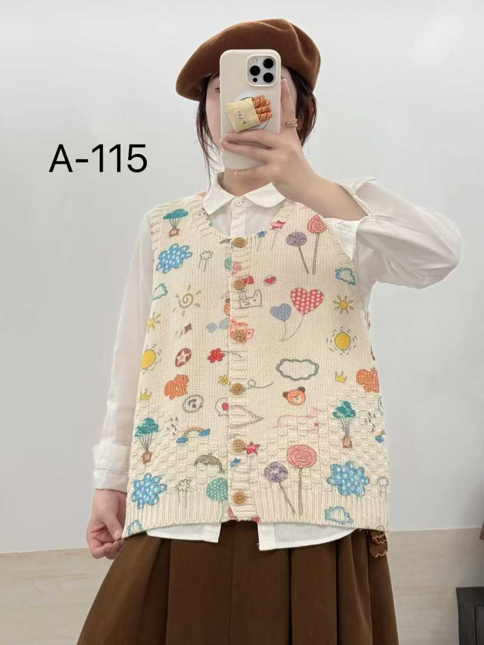 2026 봄 가을 신상 V넥 만화 프린트 면 니트 조끼 여성용 루즈핏 대형 민소매 가디건 조끼스토어 가기