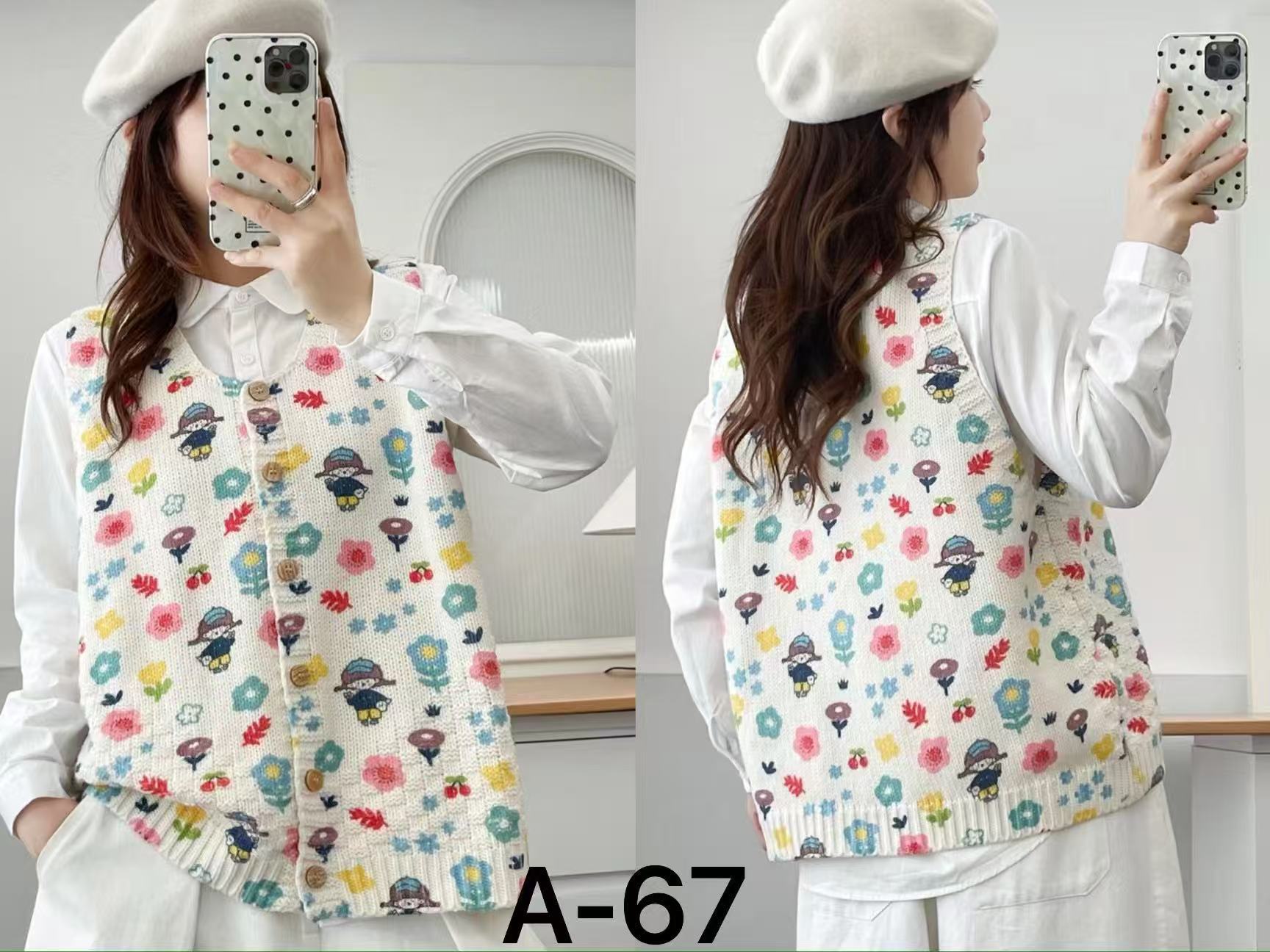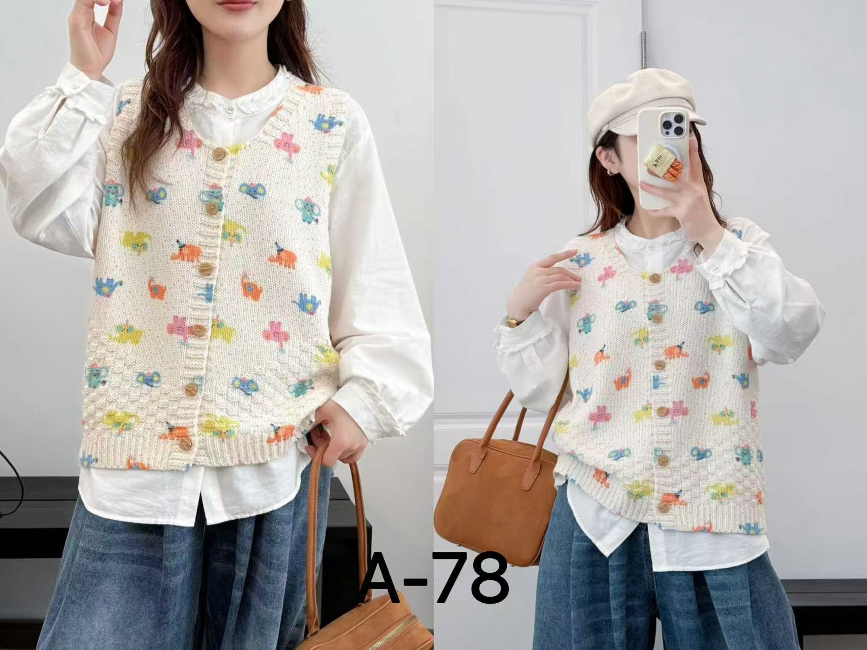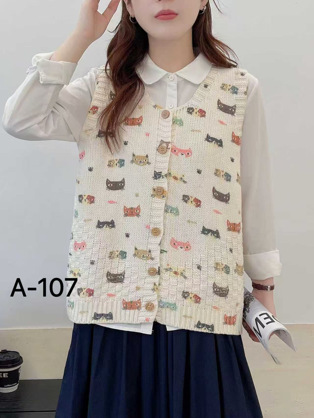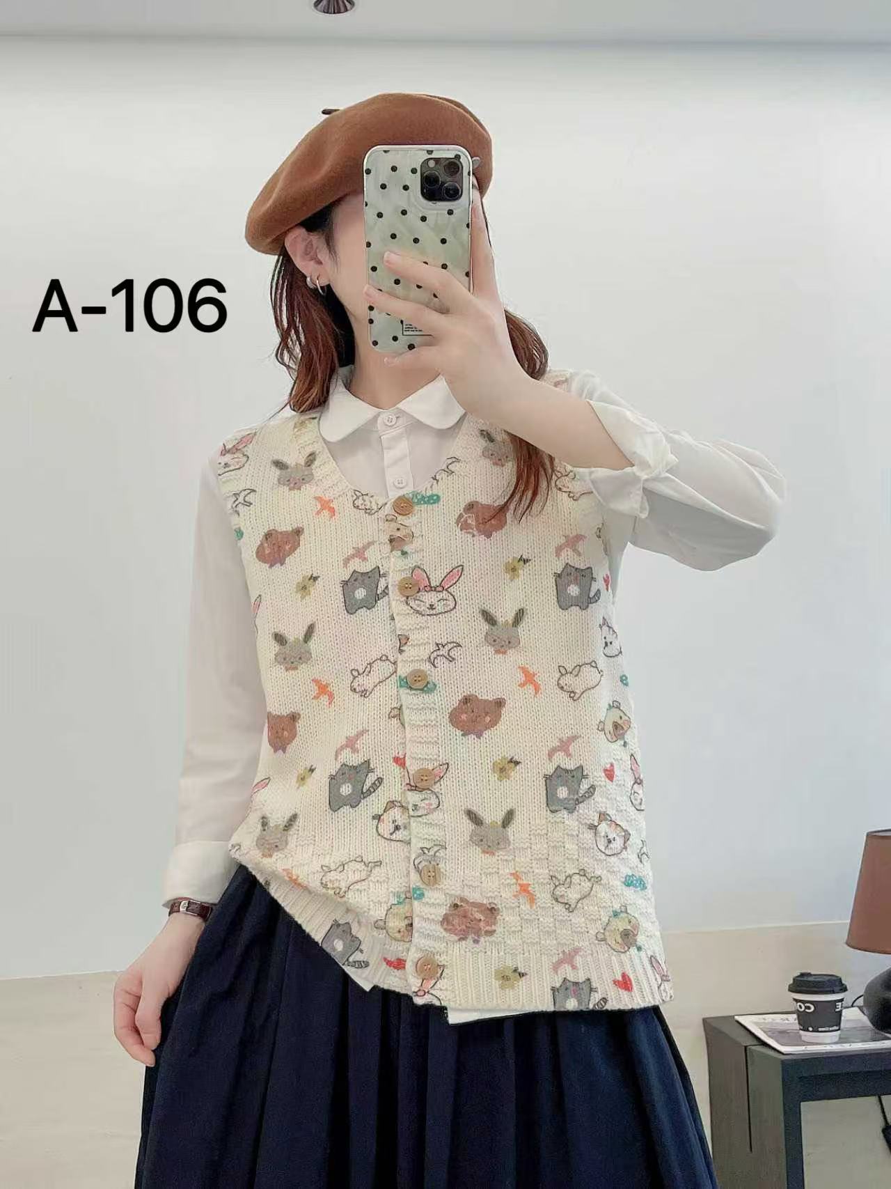2026 봄 가을 신상 V넥 만화 프린트 면 니트 조끼 여성용 루즈핏 대형 민소매 가디건 조끼스토어 가기