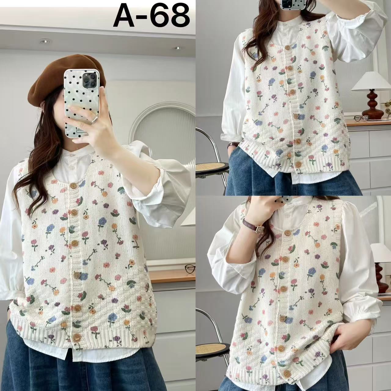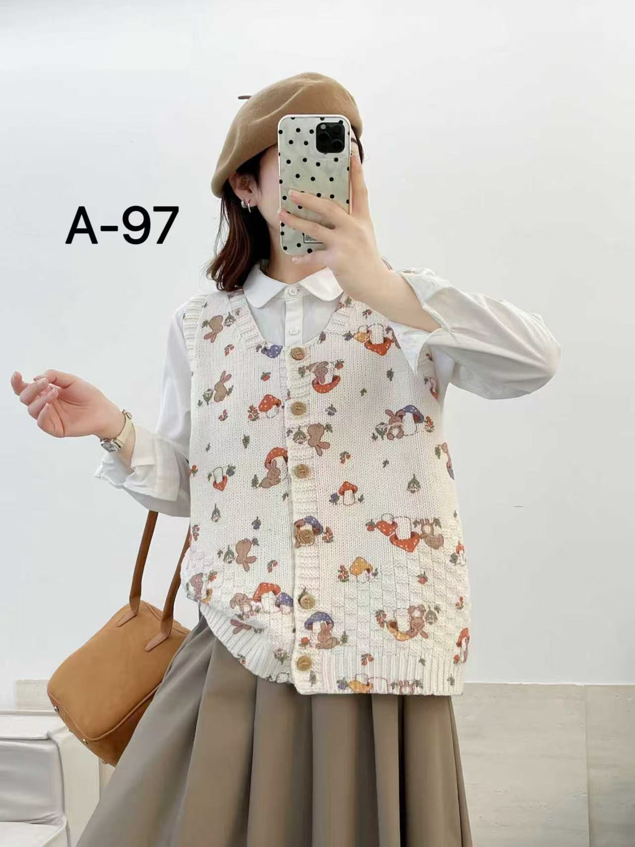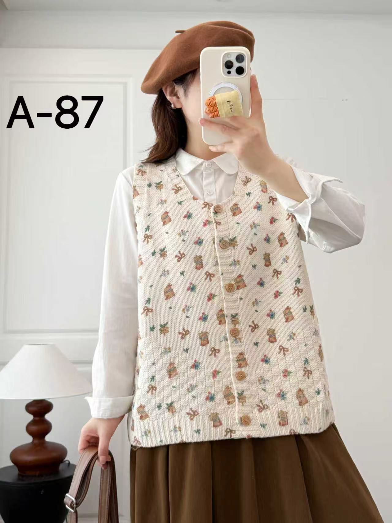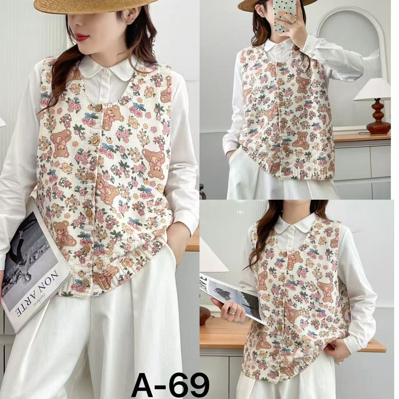 2026 봄 가을 신상 V넥 만화 프린트 면 니트 조끼 여성용 루즈핏 대형 민소매 가디건 조끼스토어 가기