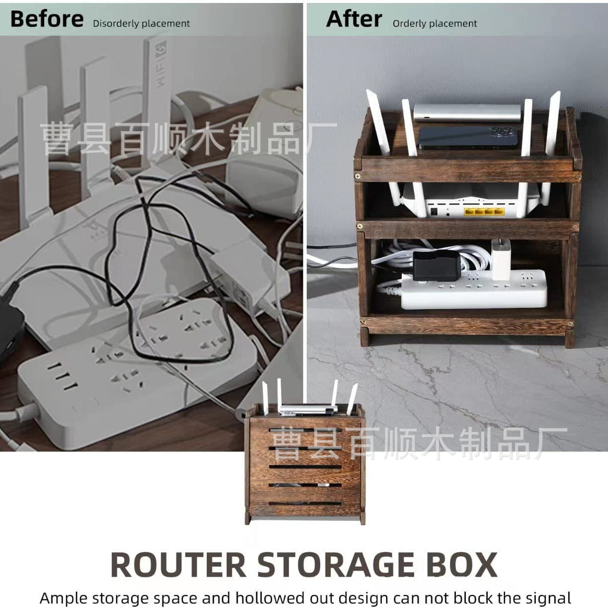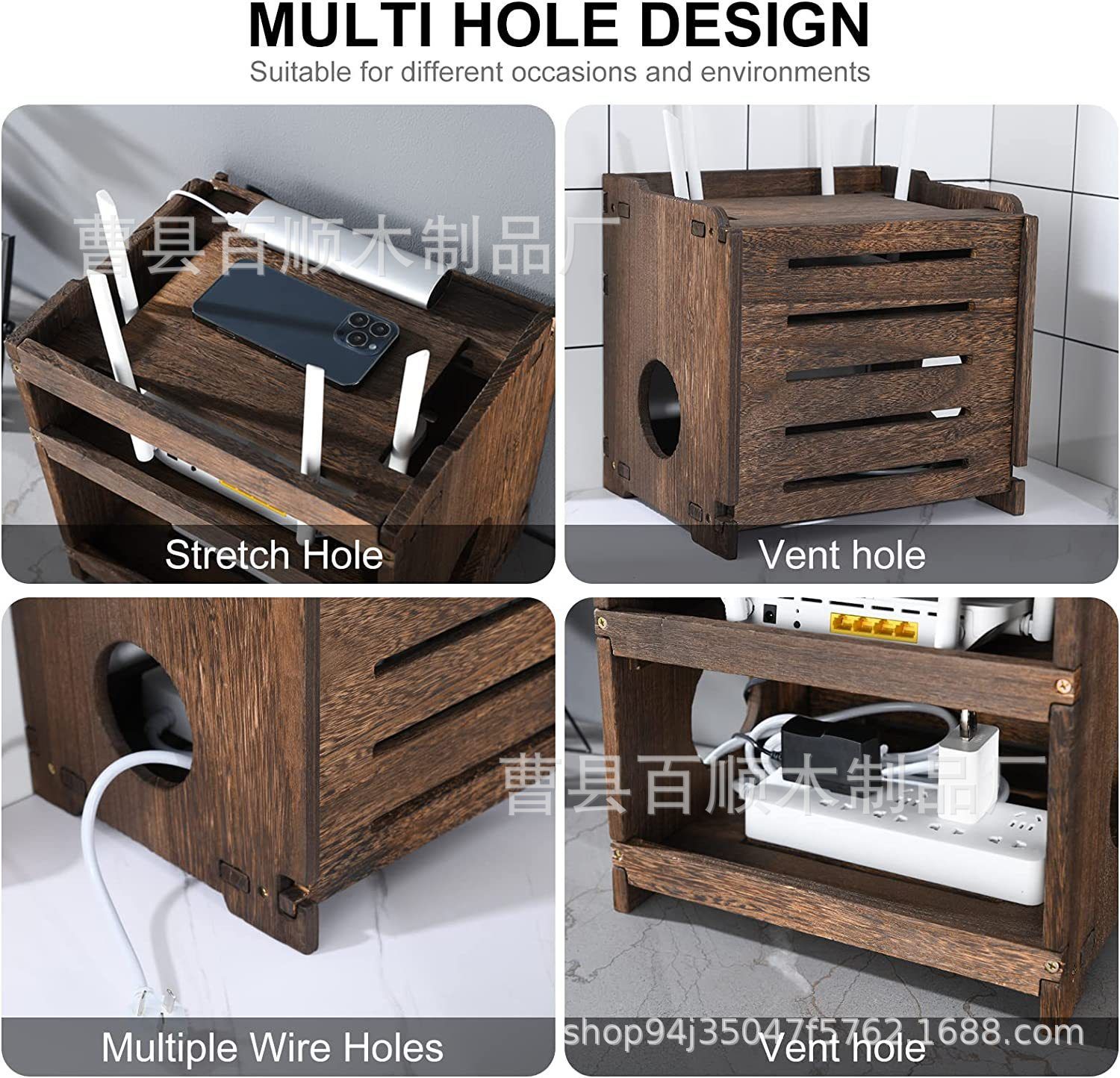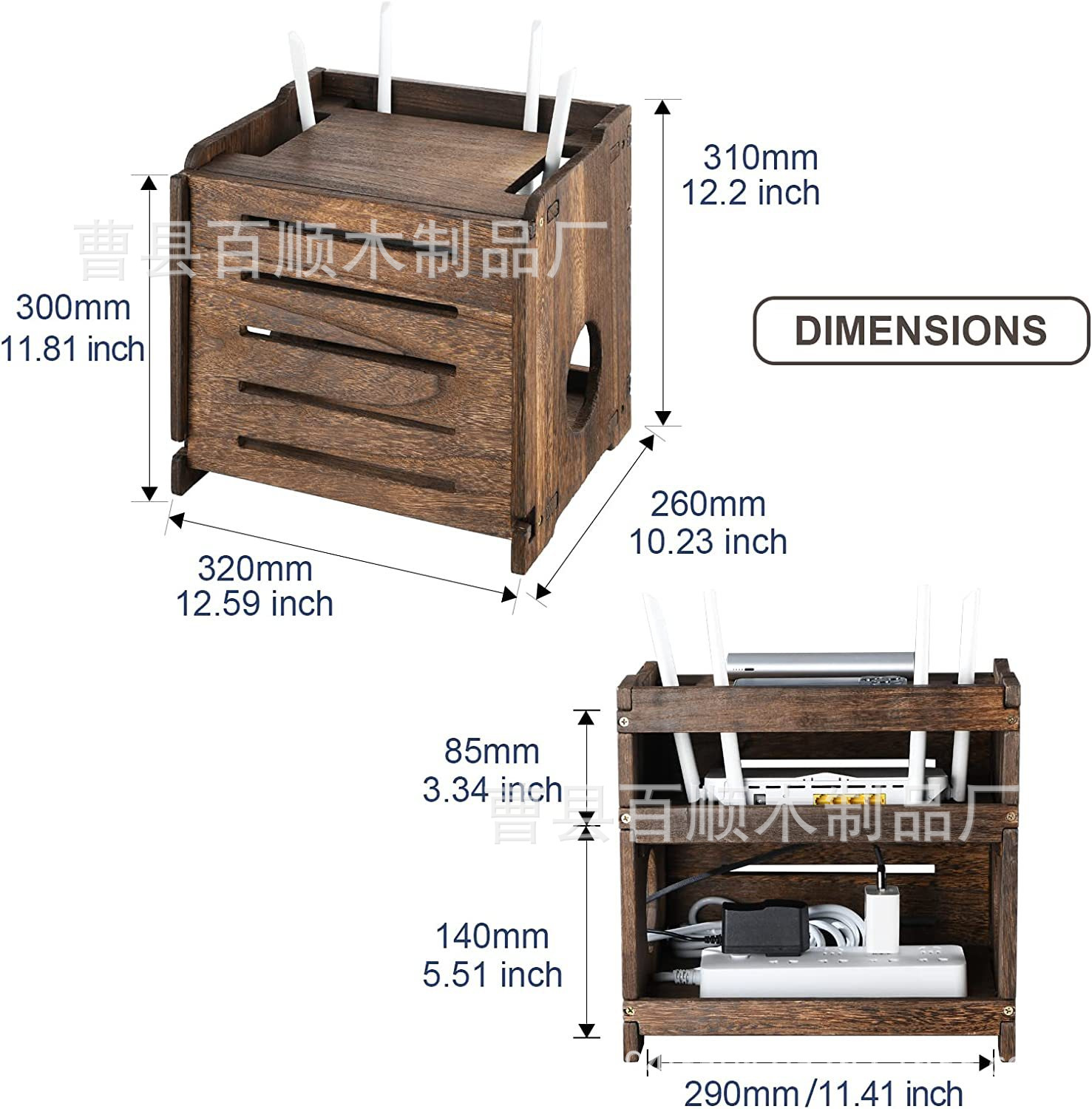 나무 무선 라우터 저장 상자 단단한 나무 라우터 커버 나무 랙 전원 보드 및 케이블 관리 숨겨진 상자
