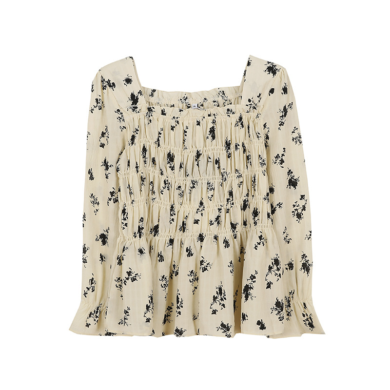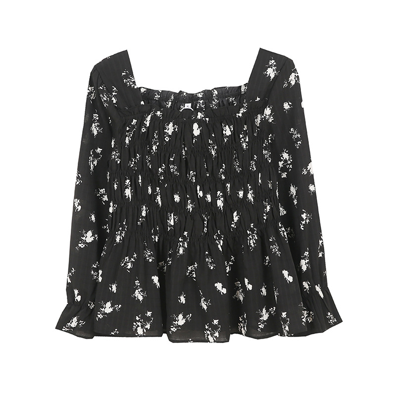 티 브레이크 달콤한 꽃무늬 쉬폰 셔츠 가을 신작 뚱녀 스퀘어 넥 슬리밍 탑 140184