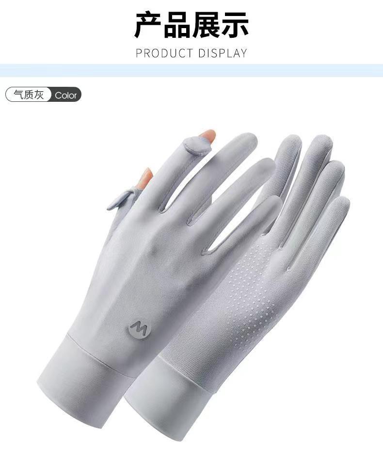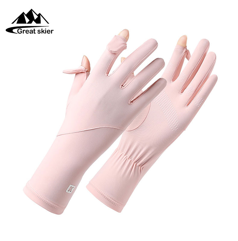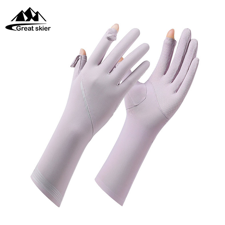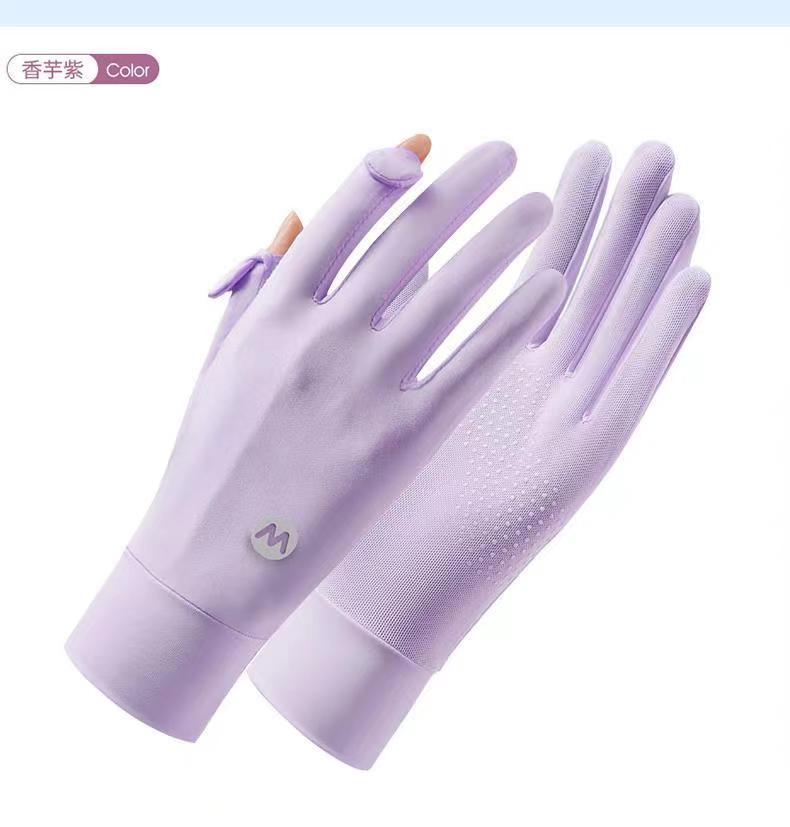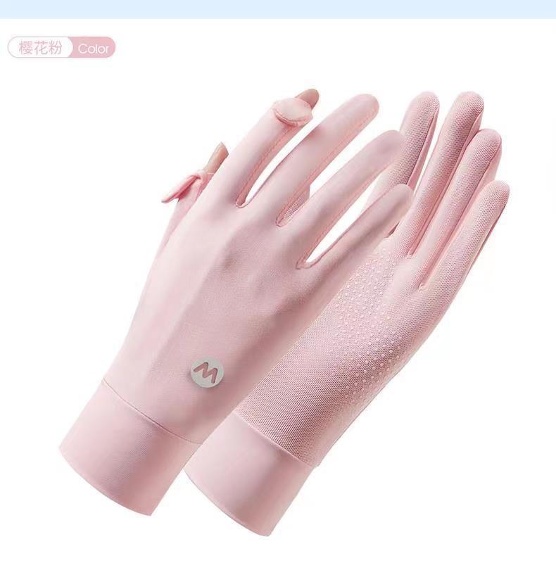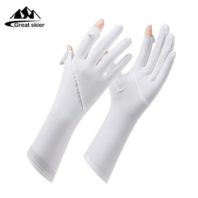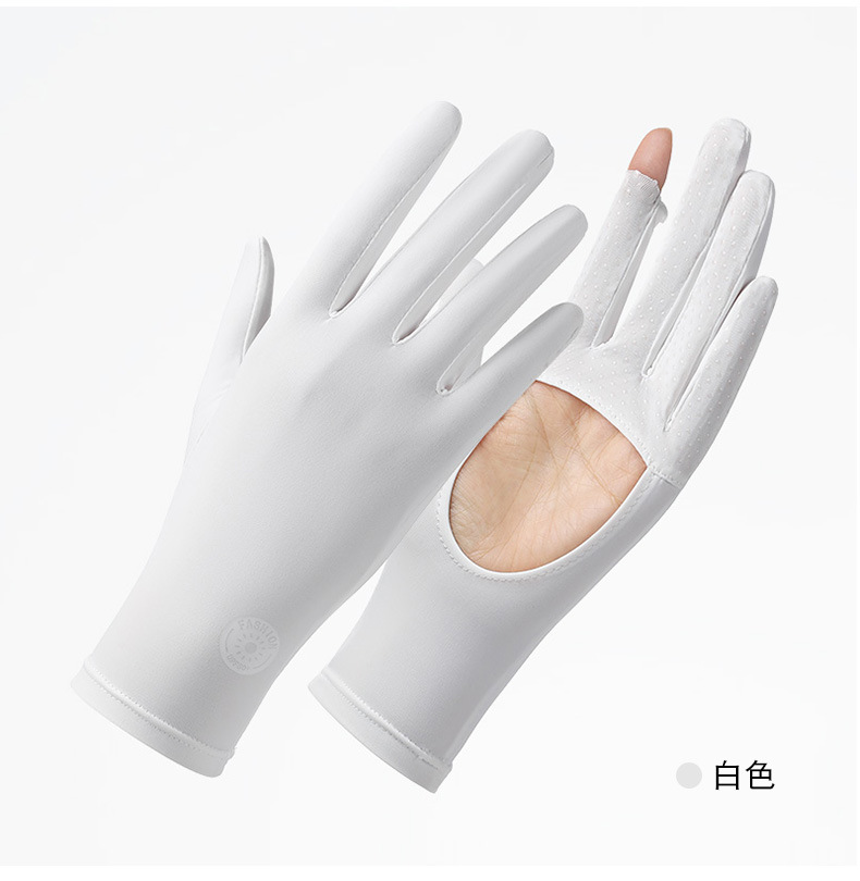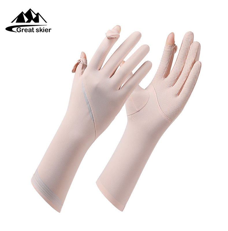 아이스 실크 태양 보호 장갑 여성 여름 야외 UV 보호 슬리브 전체 손가락 미끄럼 방지 터치 스크린 통기성 승마