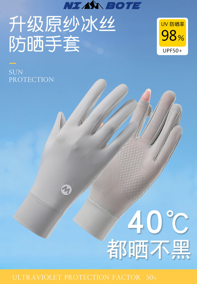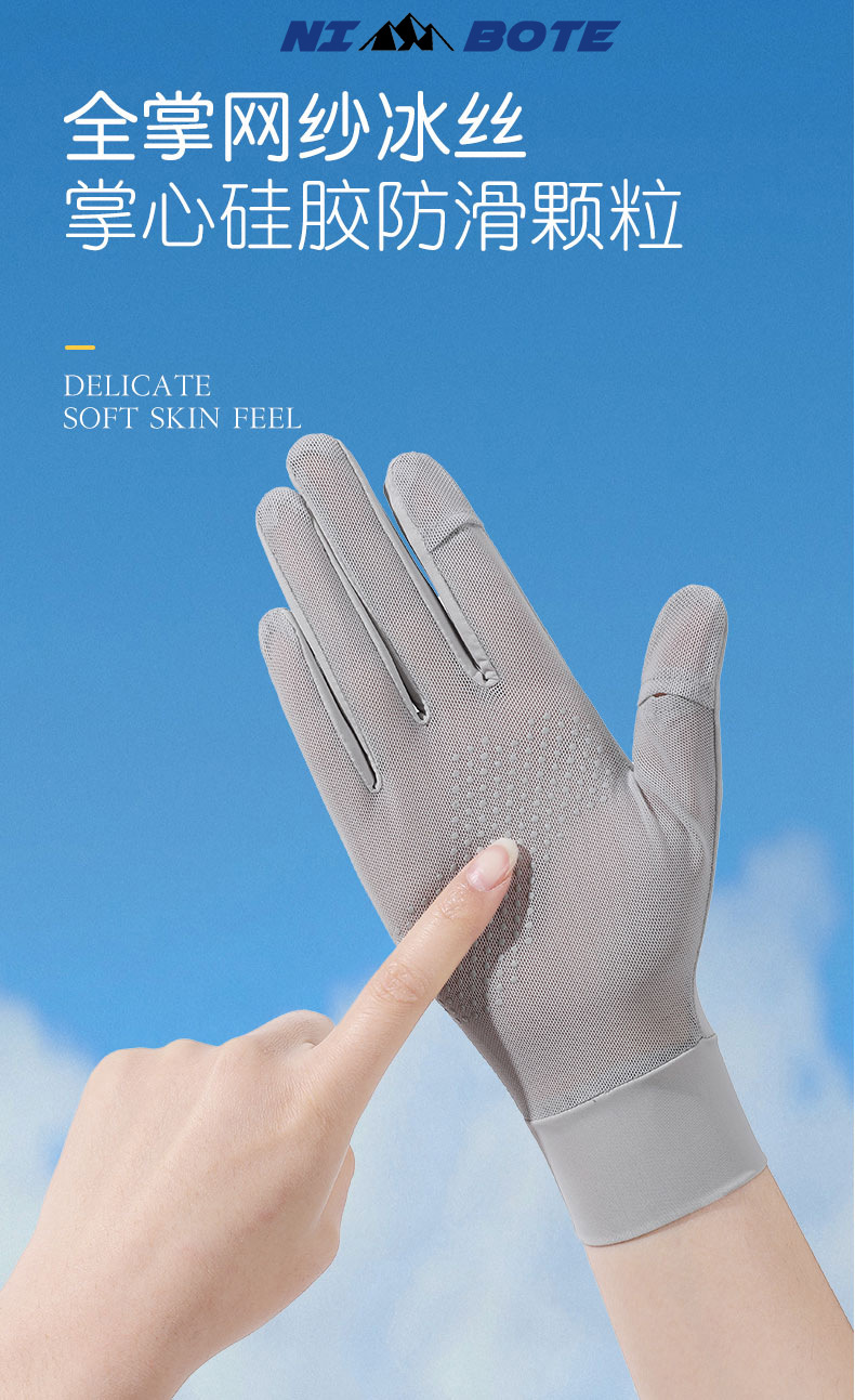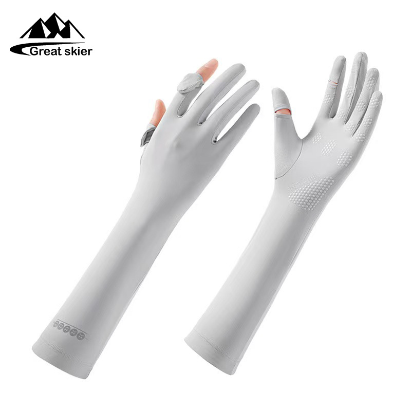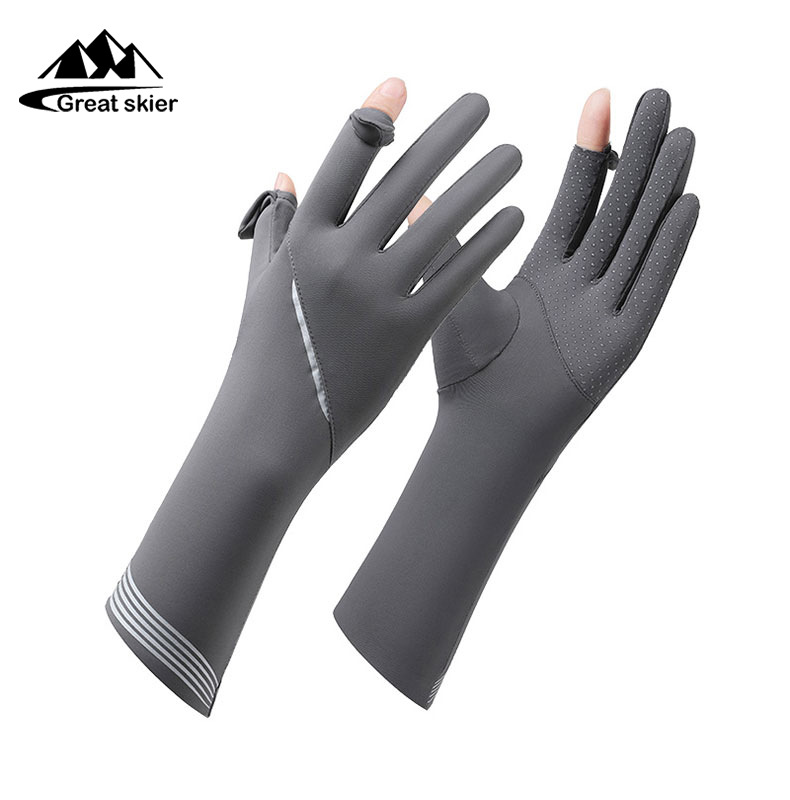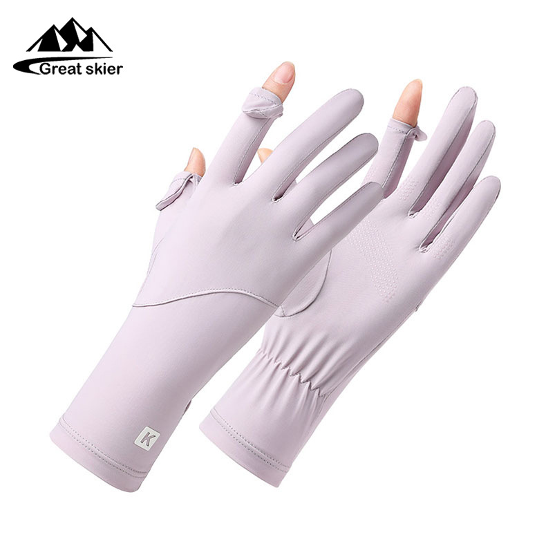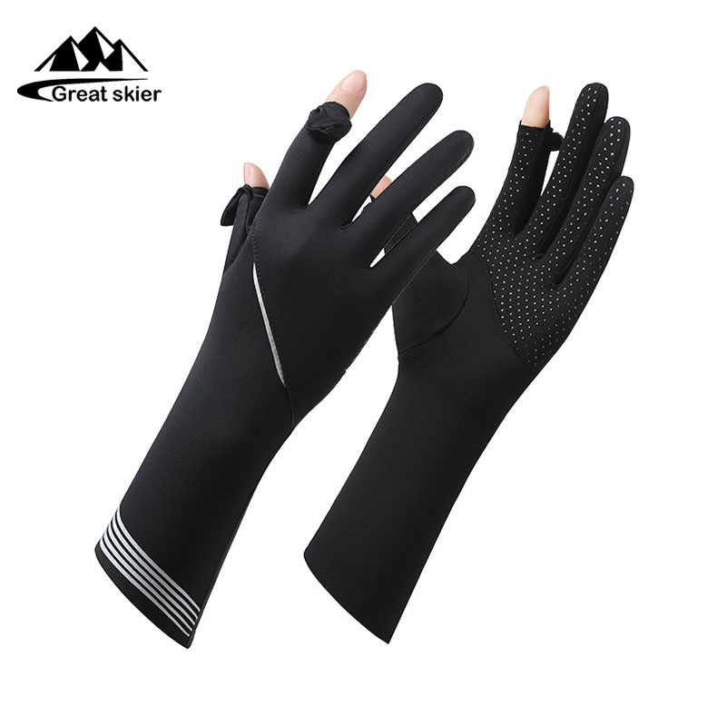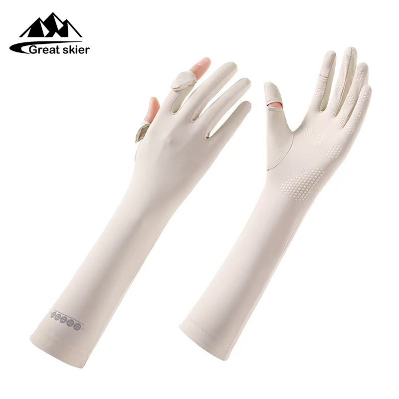 아이스 실크 태양 보호 장갑 여성 여름 야외 UV 보호 슬리브 전체 손가락 미끄럼 방지 터치 스크린 통기성 승마