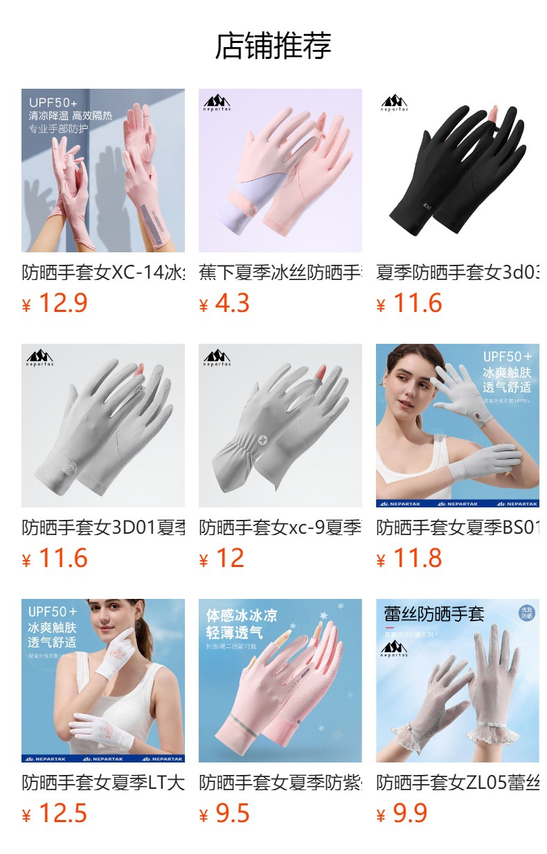 아이스 실크 태양 보호 장갑 여성 여름 야외 UV 보호 슬리브 전체 손가락 미끄럼 방지 터치 스크린 통기성 승마스토어 가기