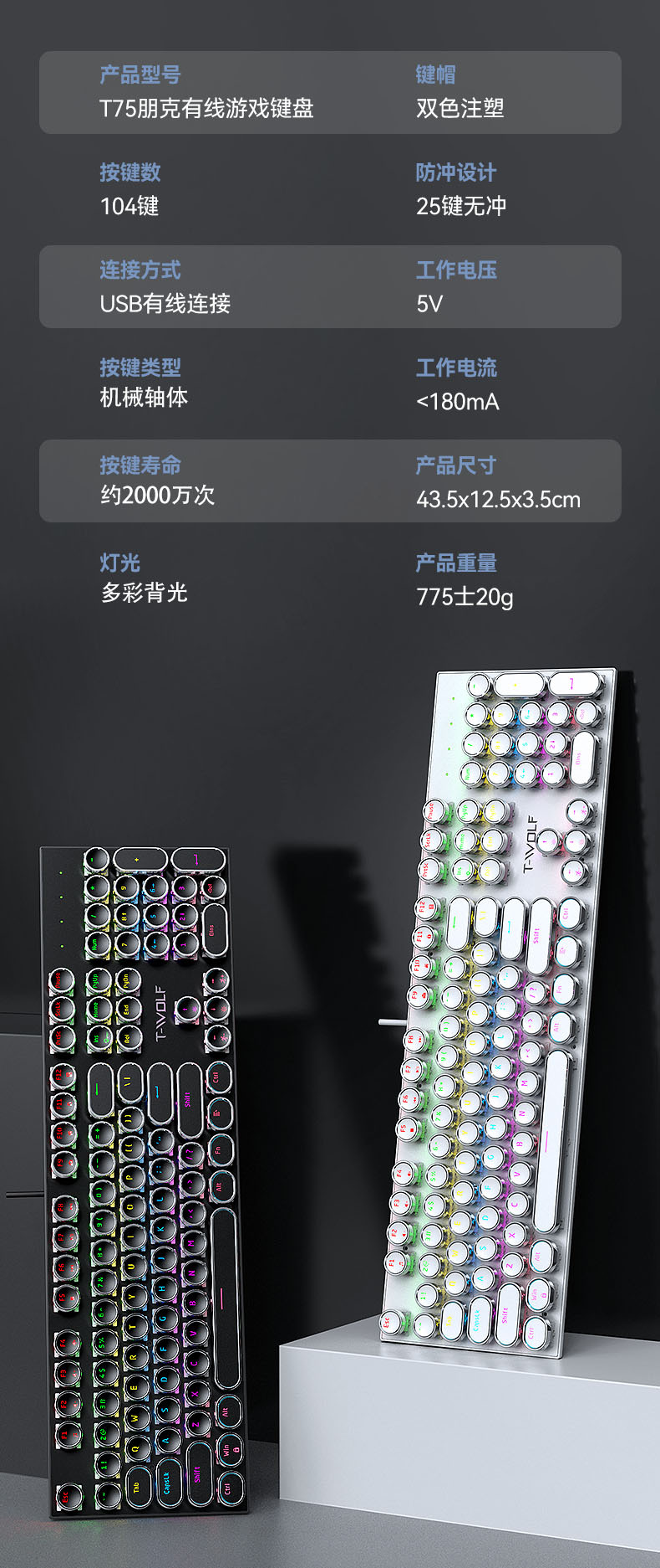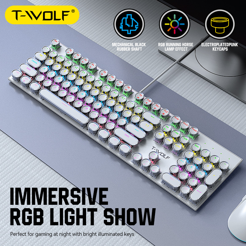 T-WOLF 천둥 울프 T75 기계 키보드 E-스포츠 게임 금속 패널 펑크 레트로 라운드 키보드 러시아어 한국어스토어 가기