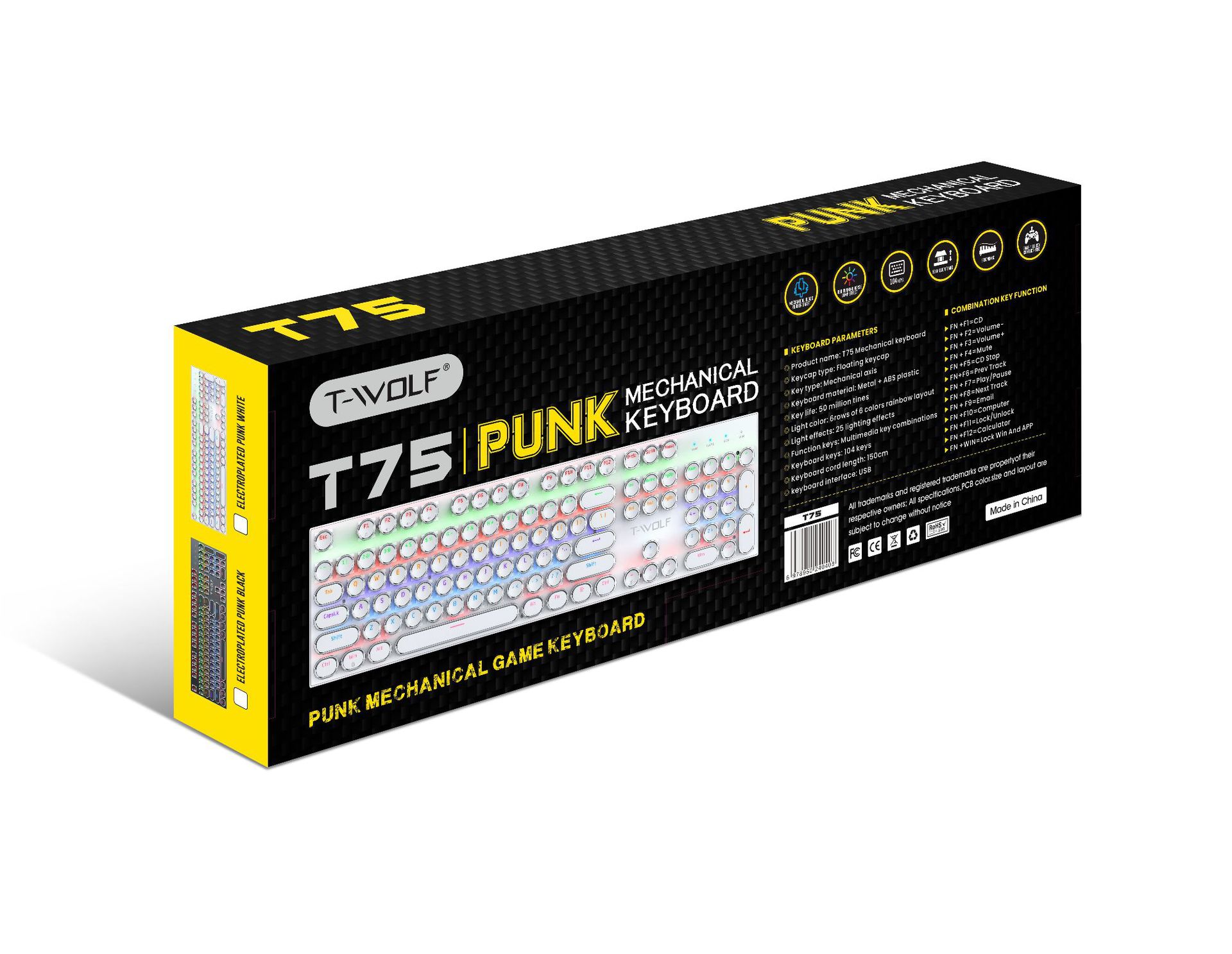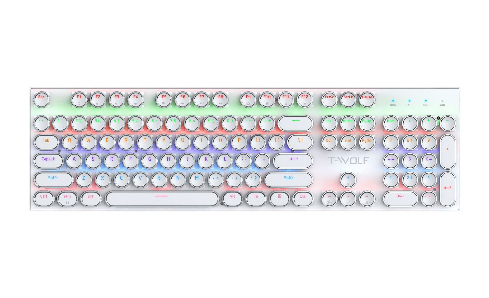 T-WOLF 천둥 울프 T75 기계 키보드 E-스포츠 게임 금속 패널 펑크 레트로 라운드 키보드 러시아어 한국어