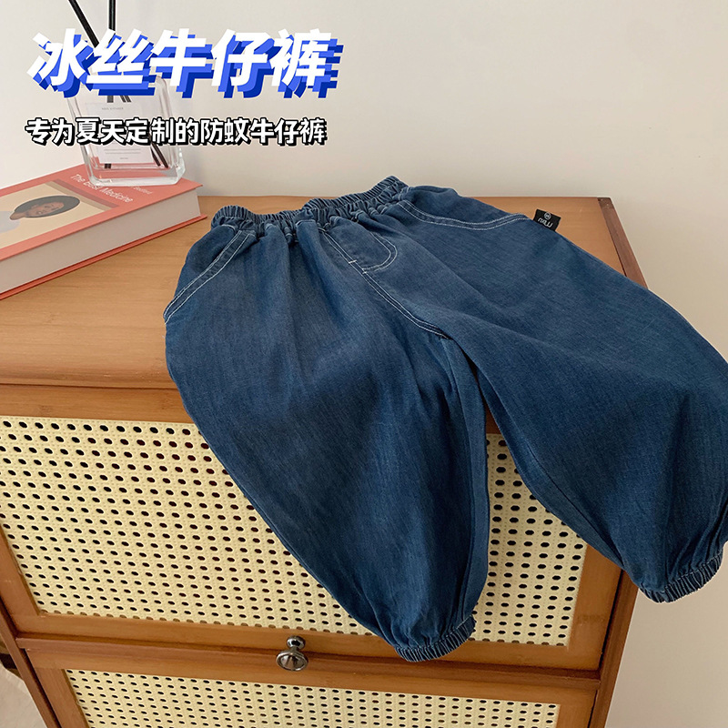 Tong Chenchen 엄마 소년 청바지 모기 방지 바지 여름 아이스 실크 긴 바지 어린이 얇은 Tencel 통기성 느슨한스토어 가기