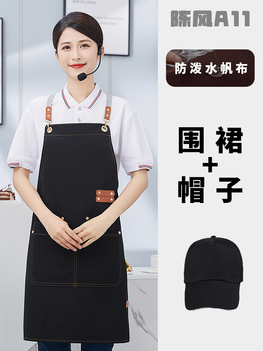 • Chen Feng A11 # 블랙 # 크로스 어깨 끈 앞치마 + 광고 캡