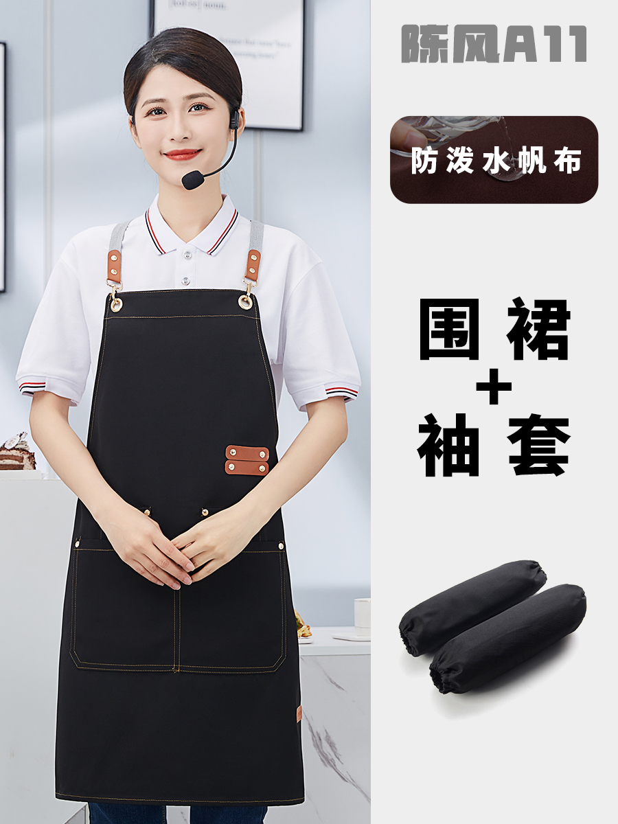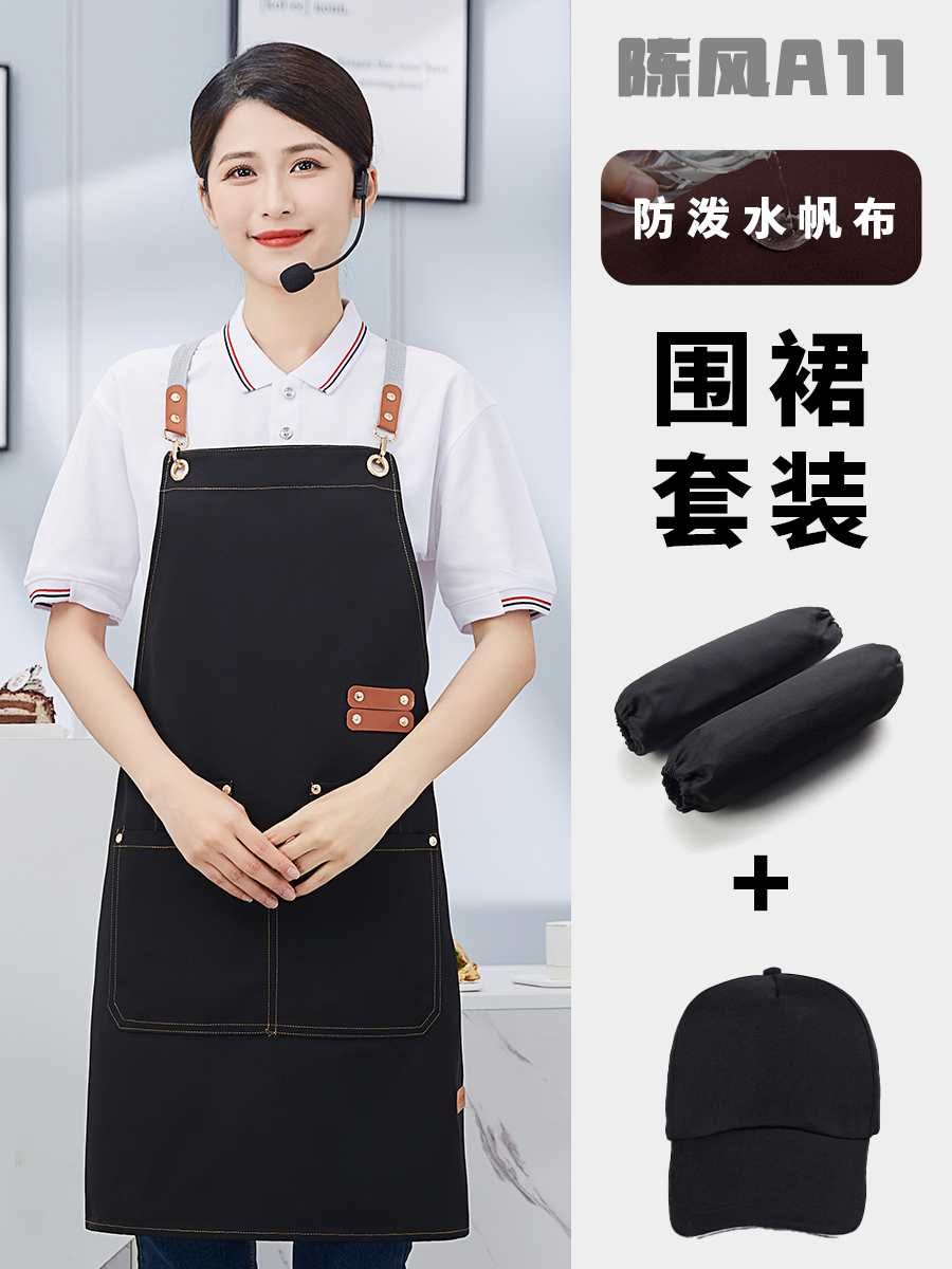 • Chen Feng A11 # 블랙 # 크로스 숄더 스트랩 앞치마 광고 캡 + 오버 슬리브