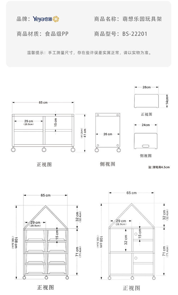 Yeya 펀치없는 유치원 그림책 책 보관함 미니 책장 어린이 방 다층 지상 보관 책장