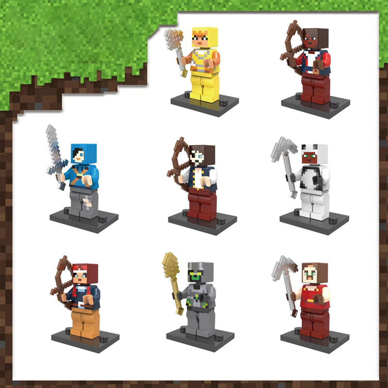 국경을 넘는 8종의 영웅 닌자 픽셀 월드 빌딩 블록 피규어 교육용 조립 장난감, 외국 무역 전용