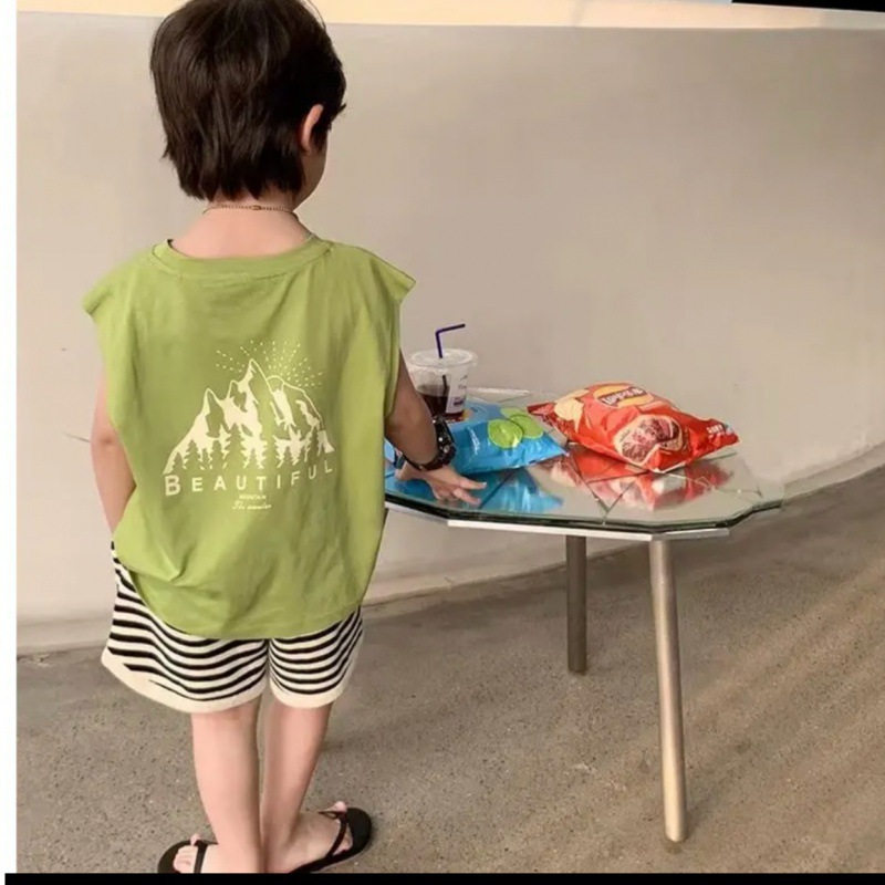 어린이 조끼 최고 소년 2024 여름 새 편지 산 느슨한 조끼 아기 성격 민소매 패션 T스토어 가기