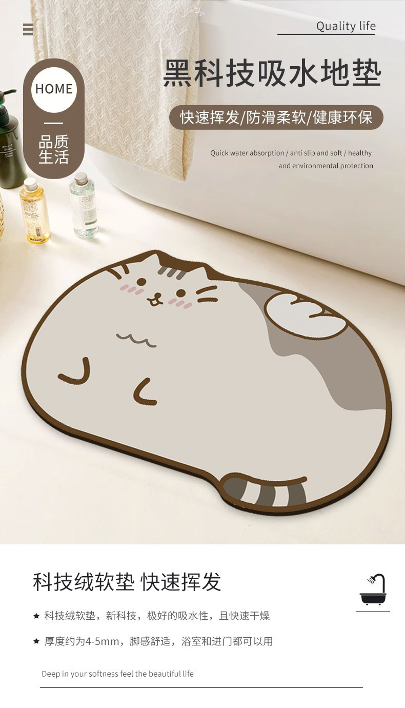 만화풍 가정용 규조토 흡수 매트 욕실 화장실 출입구 미끄럼 방지 속건 발매트 흡수 미끄럼 방지스토어 가기