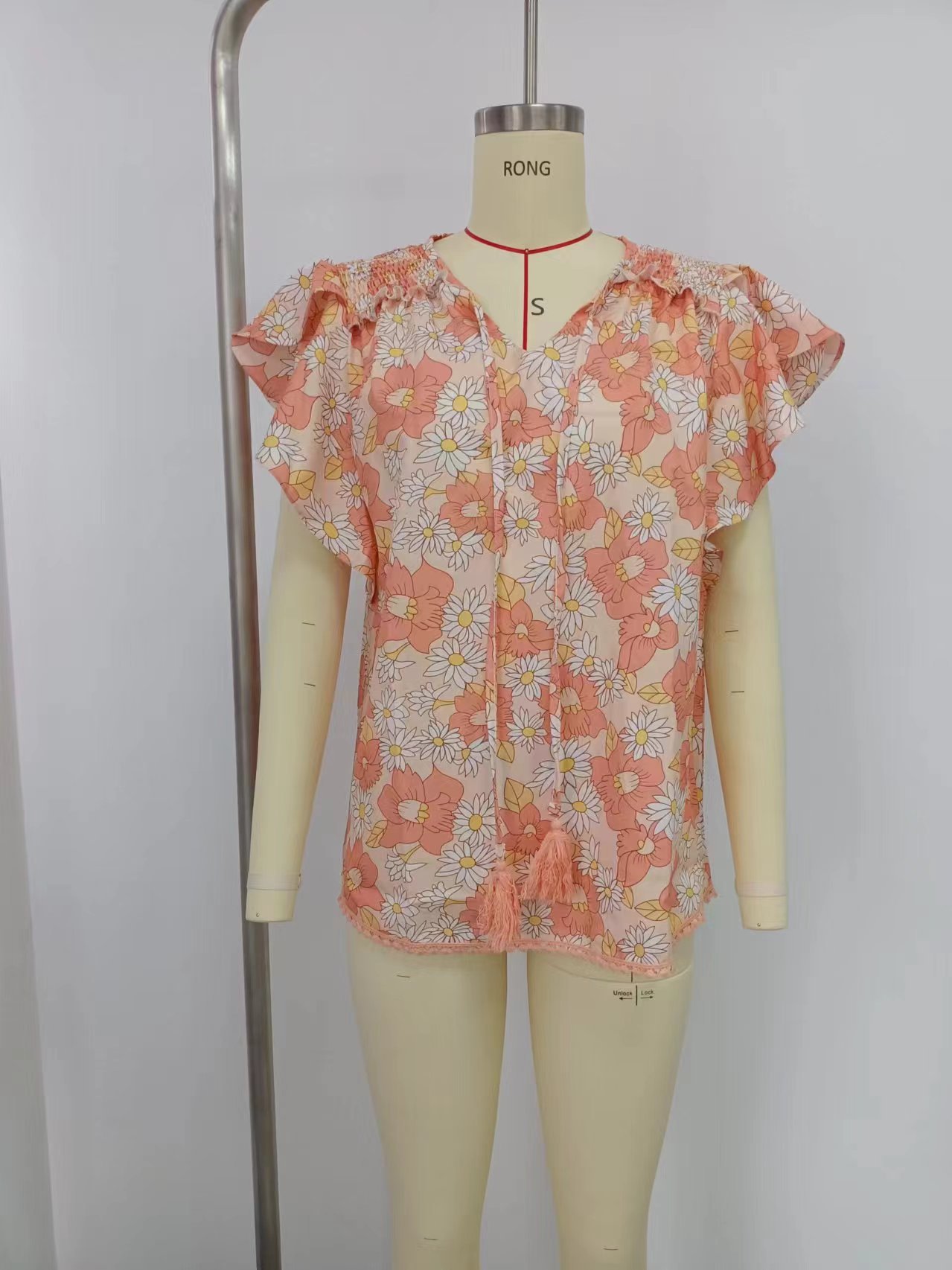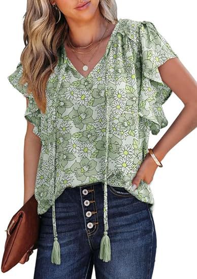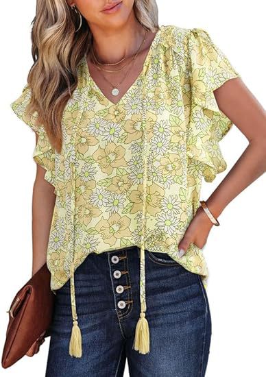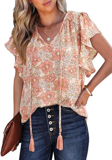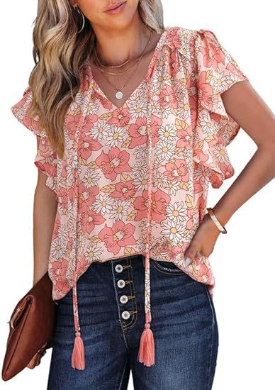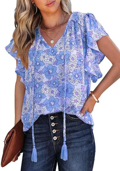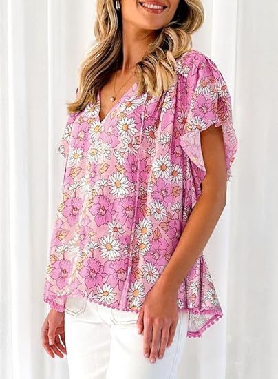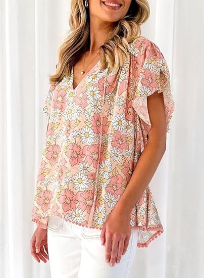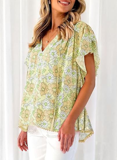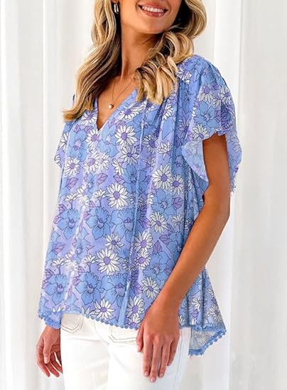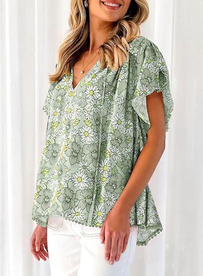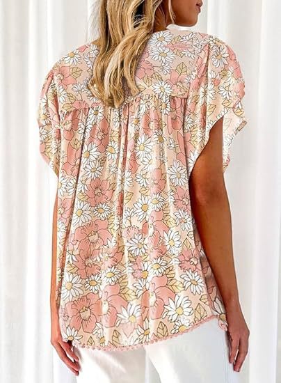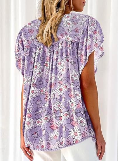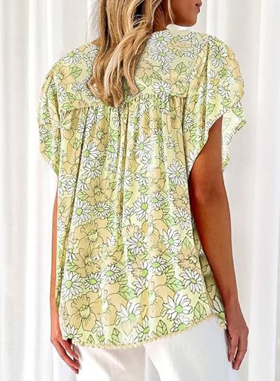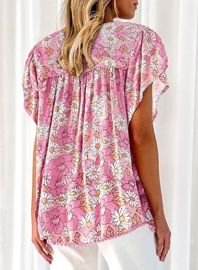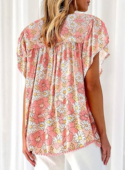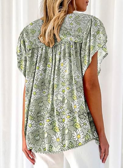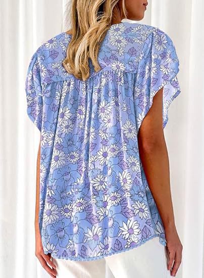 아마존 국경 간 대외 무역 2024 여성 여름 최고 꽃 반팔 V-neck 여성용 캐주얼 느슨한 셔츠스토어 가기