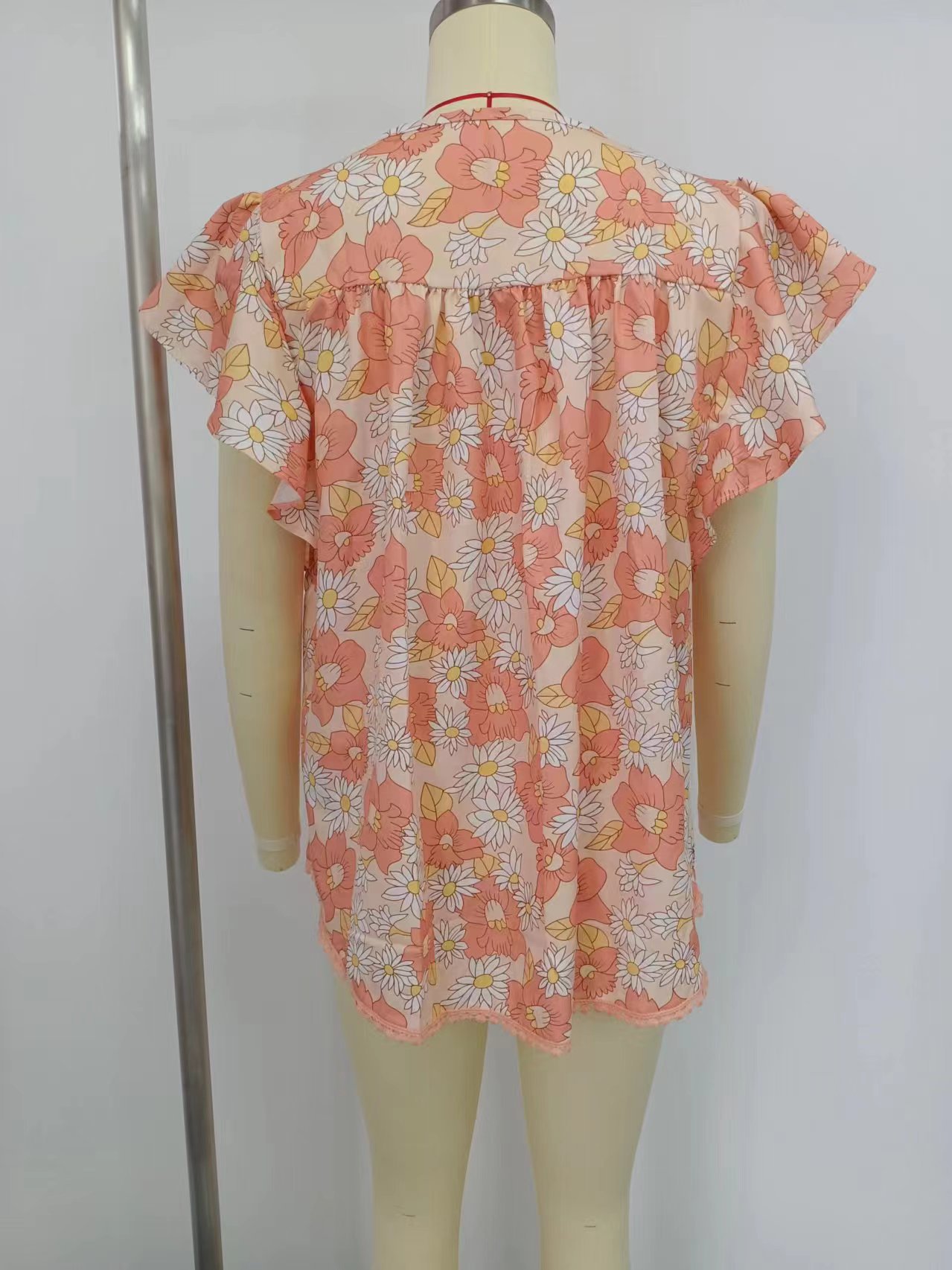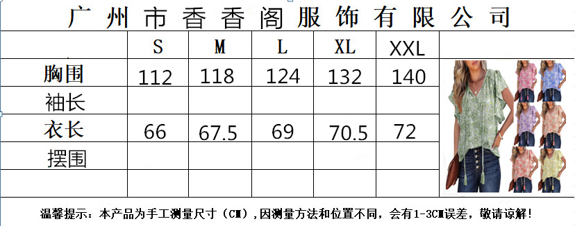 아마존 국경 간 대외 무역 2024 여성 여름 최고 꽃 반팔 V-neck 여성용 캐주얼 느슨한 셔츠