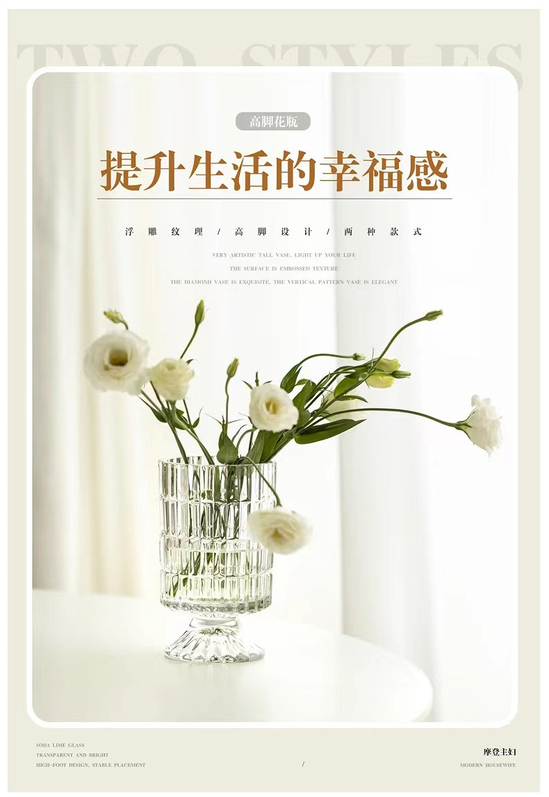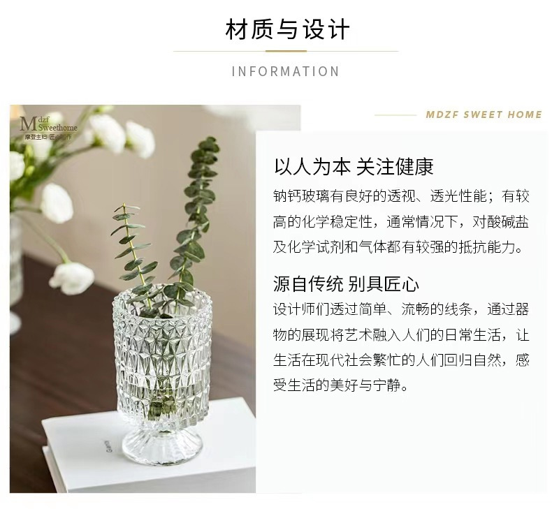 무료 배송 프랑스 구호 질감 유리 꽃병 꽃 재배 가정용 유리 투명 고급 장식 장식품 도매스토어 가기