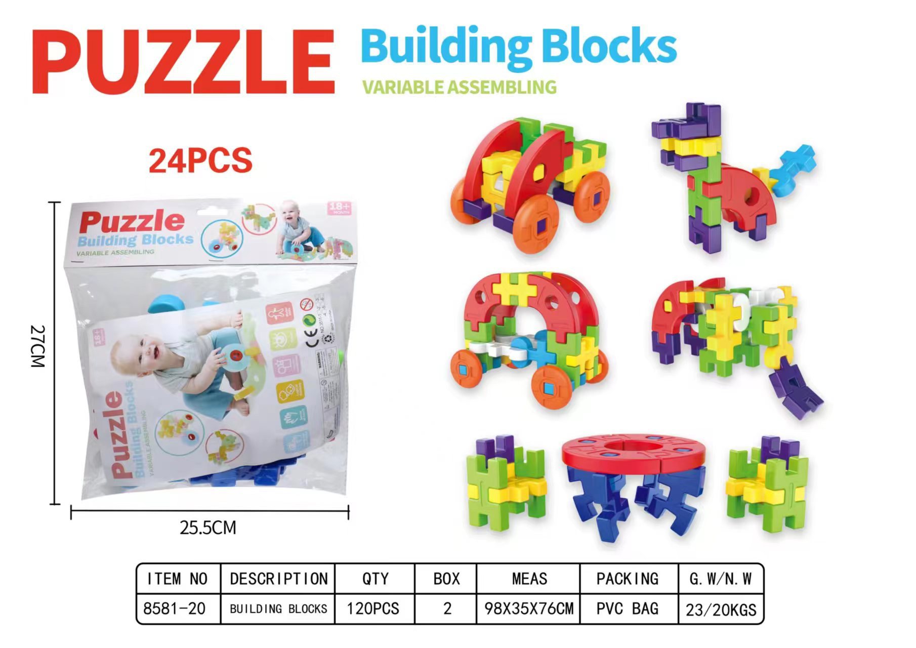 • 퍼즐 블로우 몰딩 빌딩 블록 24PCS