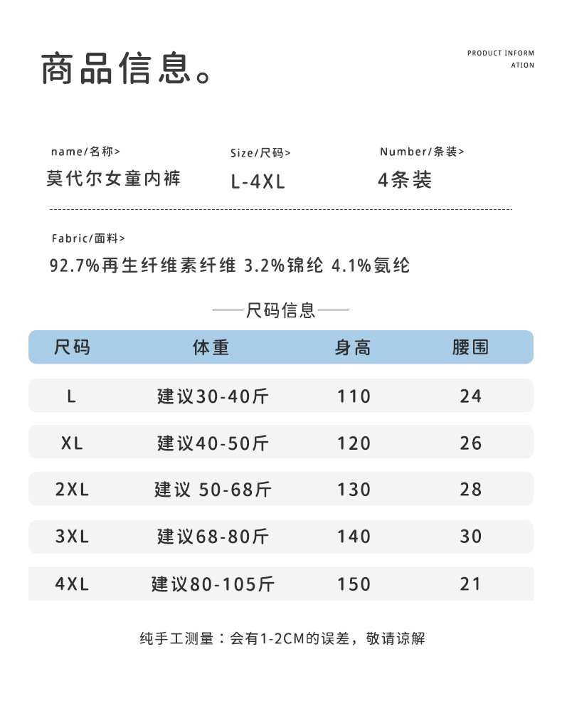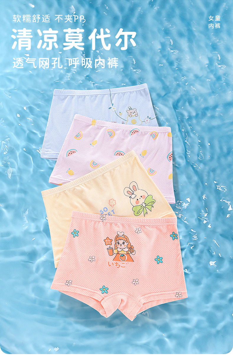 여아 속옷 모달 아이스 실크 순면 사각 팬티 어린이 소녀 베이비 사각형 작은, 중간 및 큰 어린이 가볍고 얇은스토어 가기