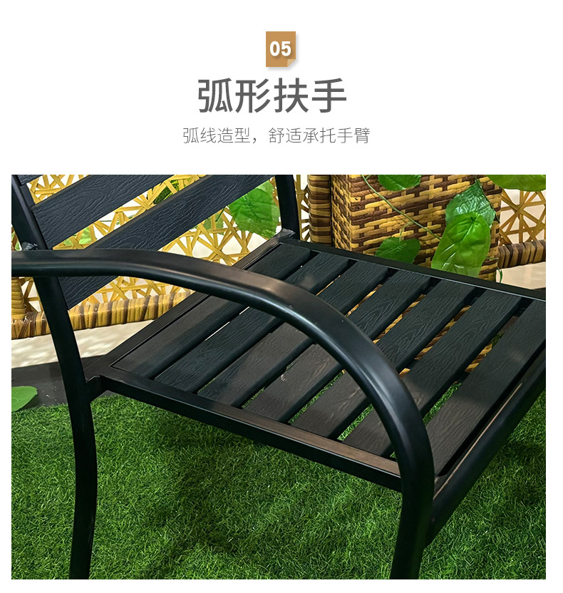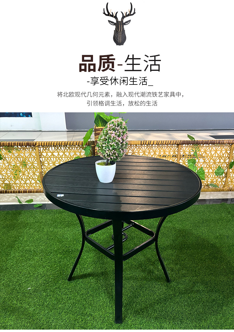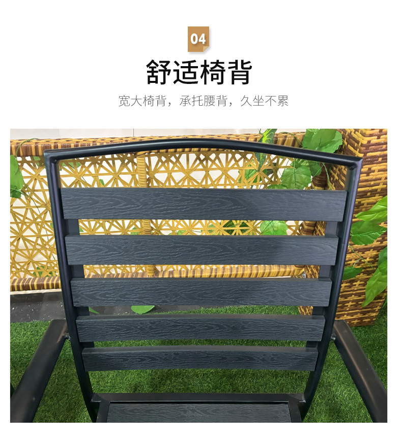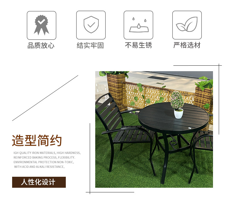 야외 플라스틱 목재 식탁과 의자 조합 카페 야외 야외 발코니 정원 테라스 안뜰 레저 테이블과 의자 부식 방지