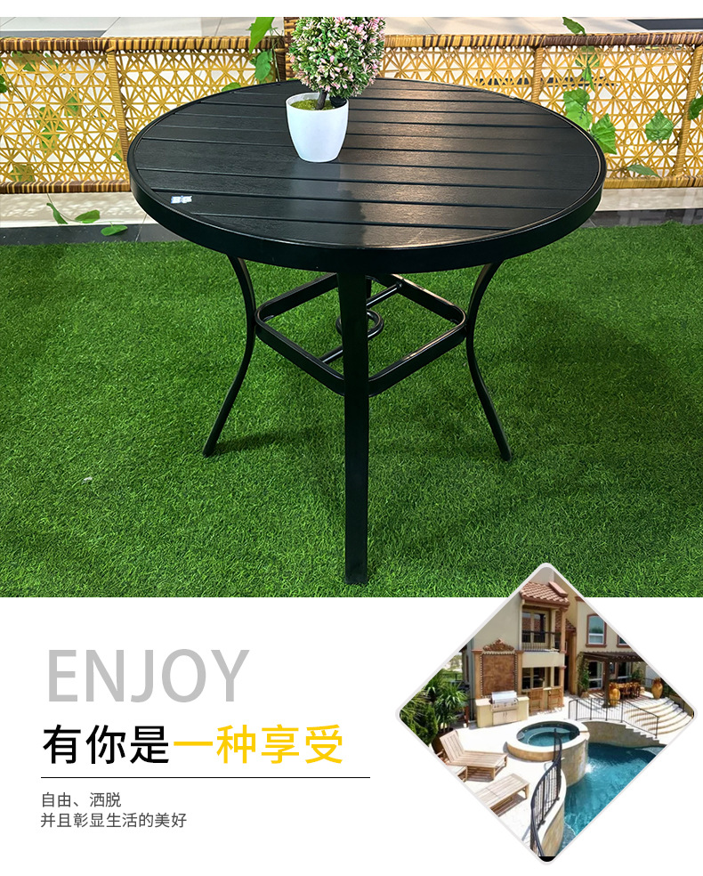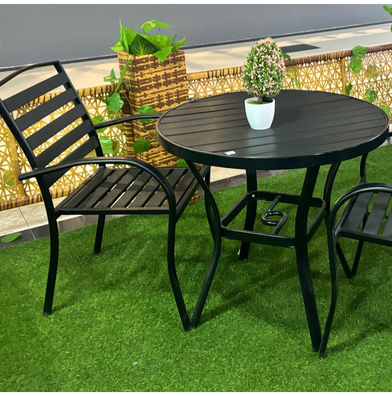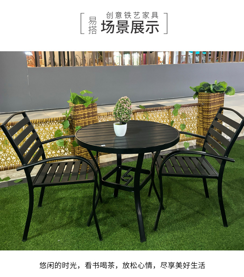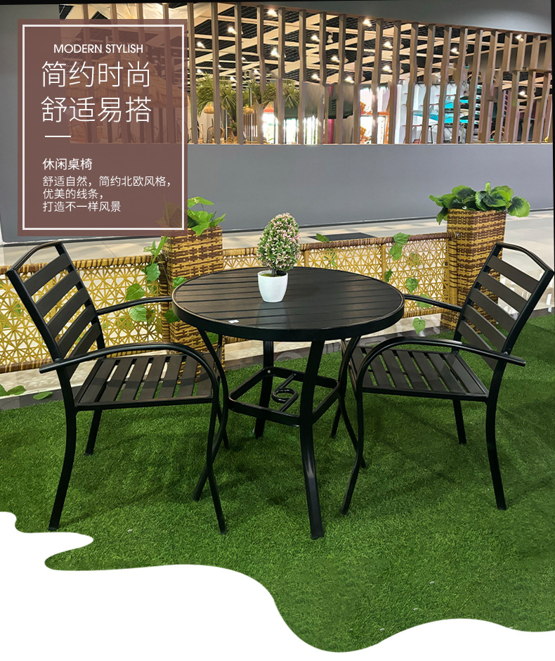 야외 플라스틱 목재 식탁과 의자 조합 카페 야외 야외 발코니 정원 테라스 안뜰 레저 테이블과 의자 부식 방지스토어 가기